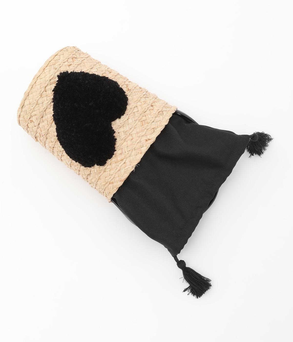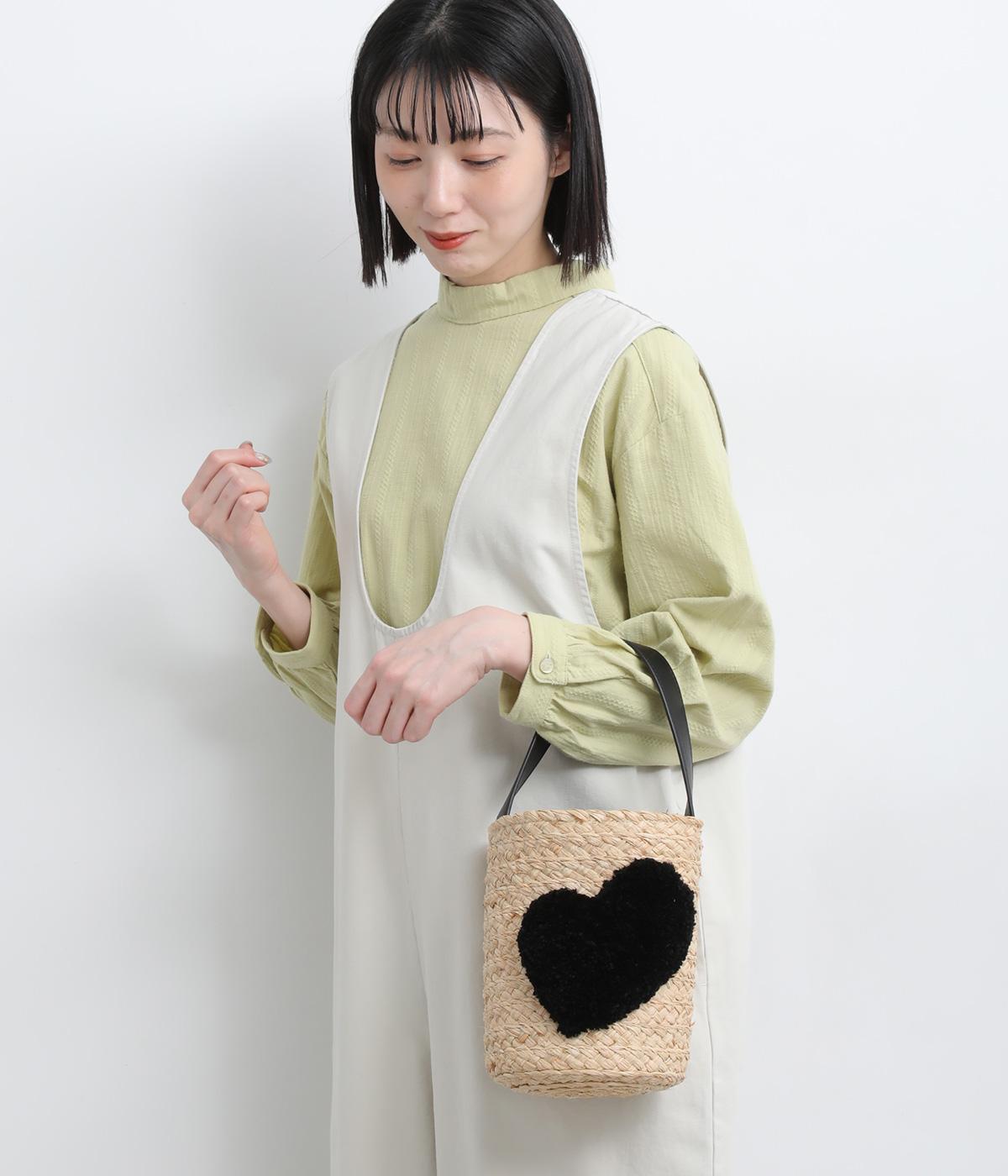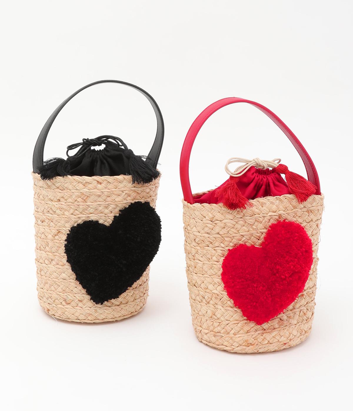 立体的なハートモチーフがインパクト抜群なバケットトート。カゴバッグのナチュラルさを活かしながらも、シティスタイルのアクセントにもなります。可愛らしくなりすぎないよう、ハンドルは合成皮革でスタイリッシュに。