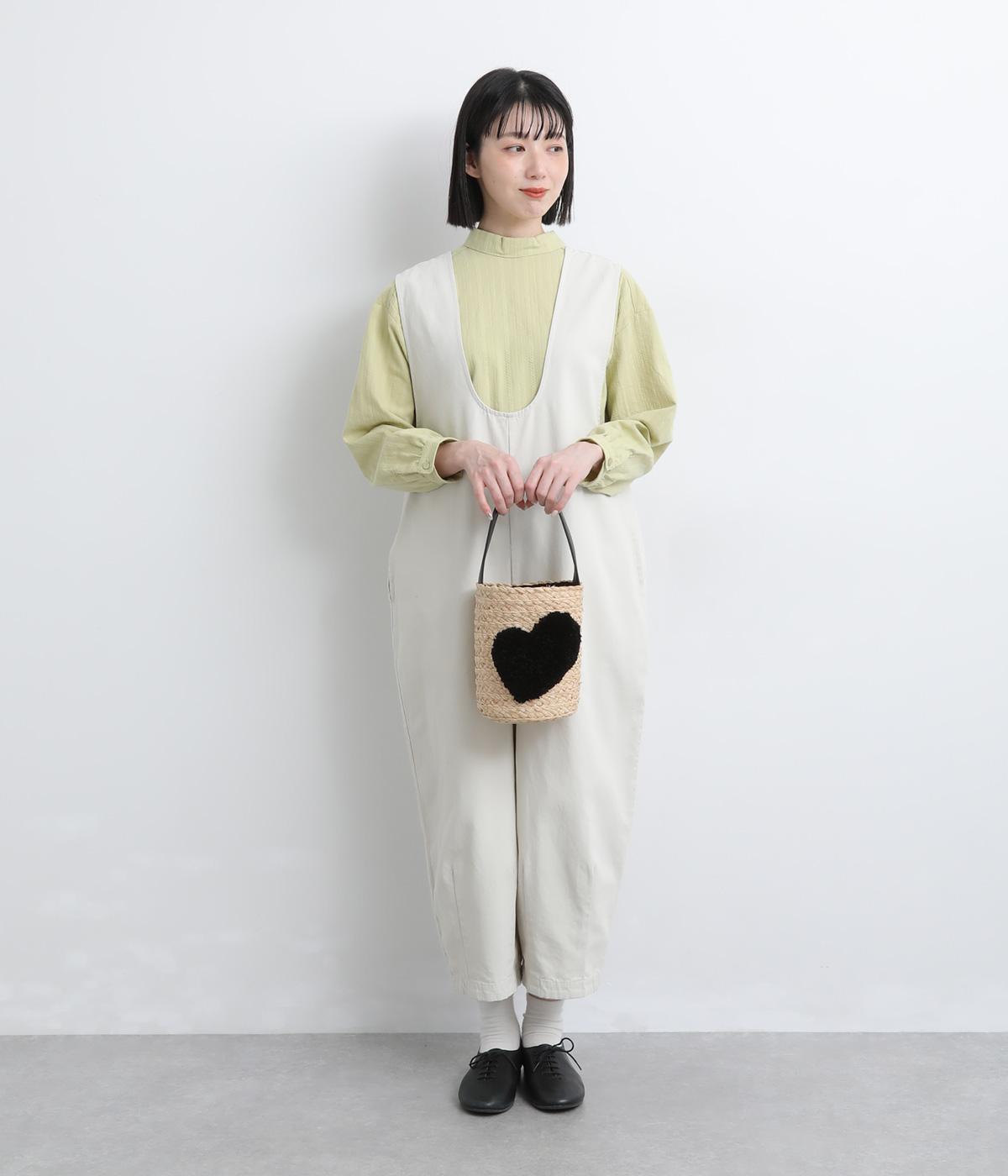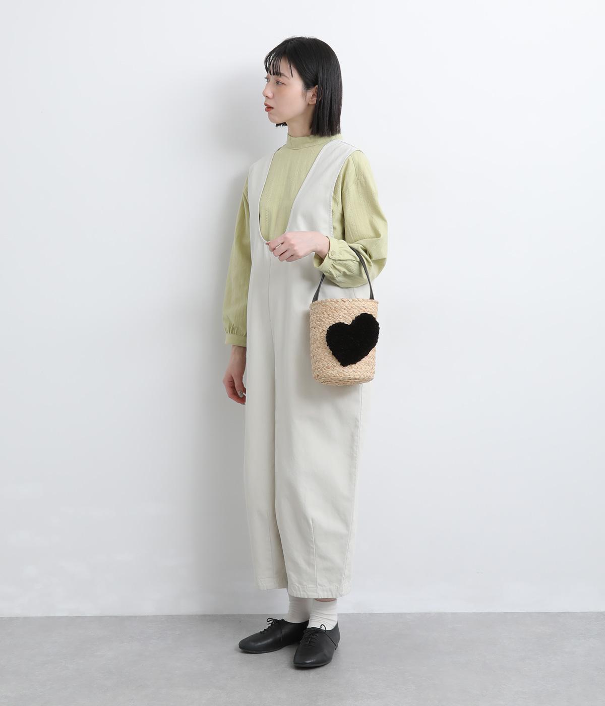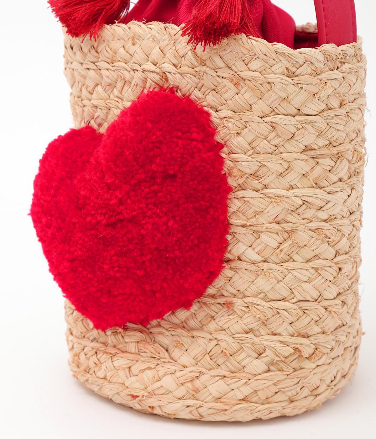 立体的なハートモチーフがインパクト抜群なバケットトート。カゴバッグのナチュラルさを活かしながらも、シティスタイルのアクセントにもなります。可愛らしくなりすぎないよう、ハンドルは合成皮革でスタイリッシュに。