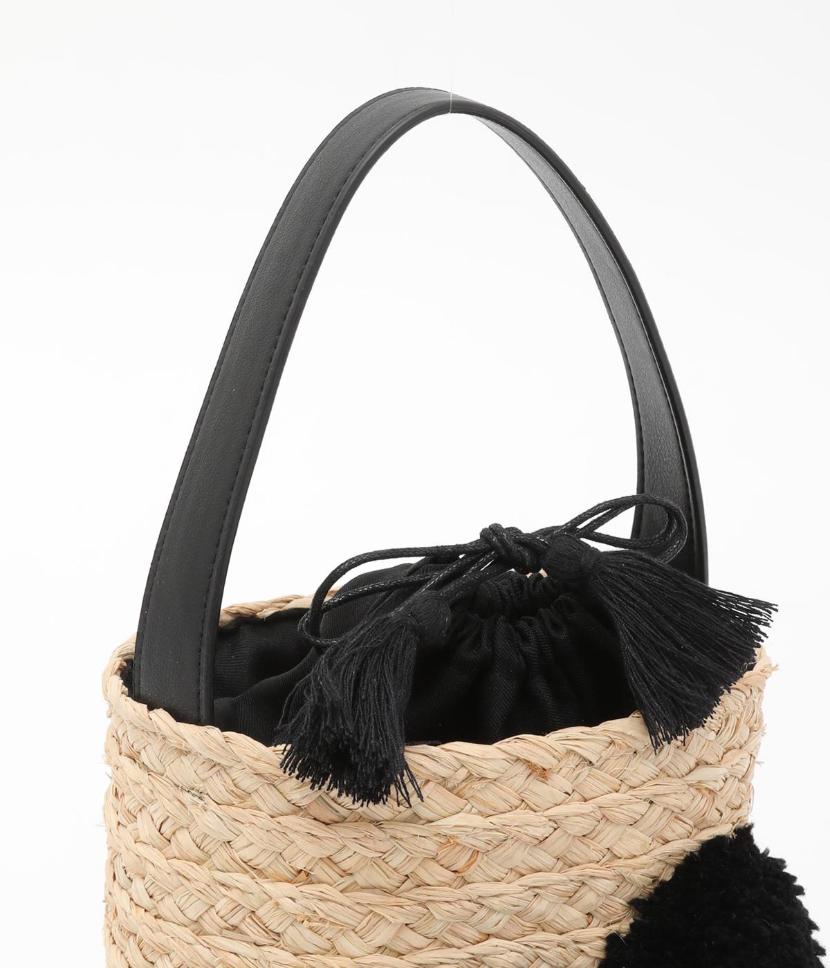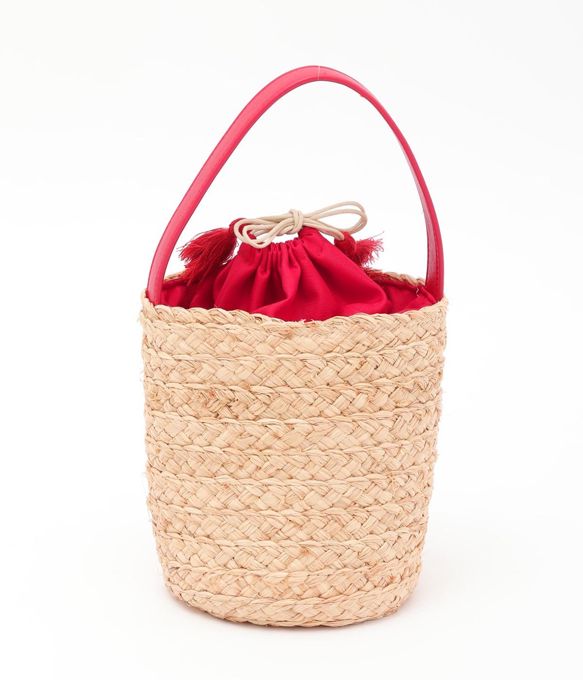 天然素材ならではの風合いが魅力のラフィアに異素材を組み合わせて個性豊かに仕上げました。内袋つきで強度と使い勝手の良さを高めています。