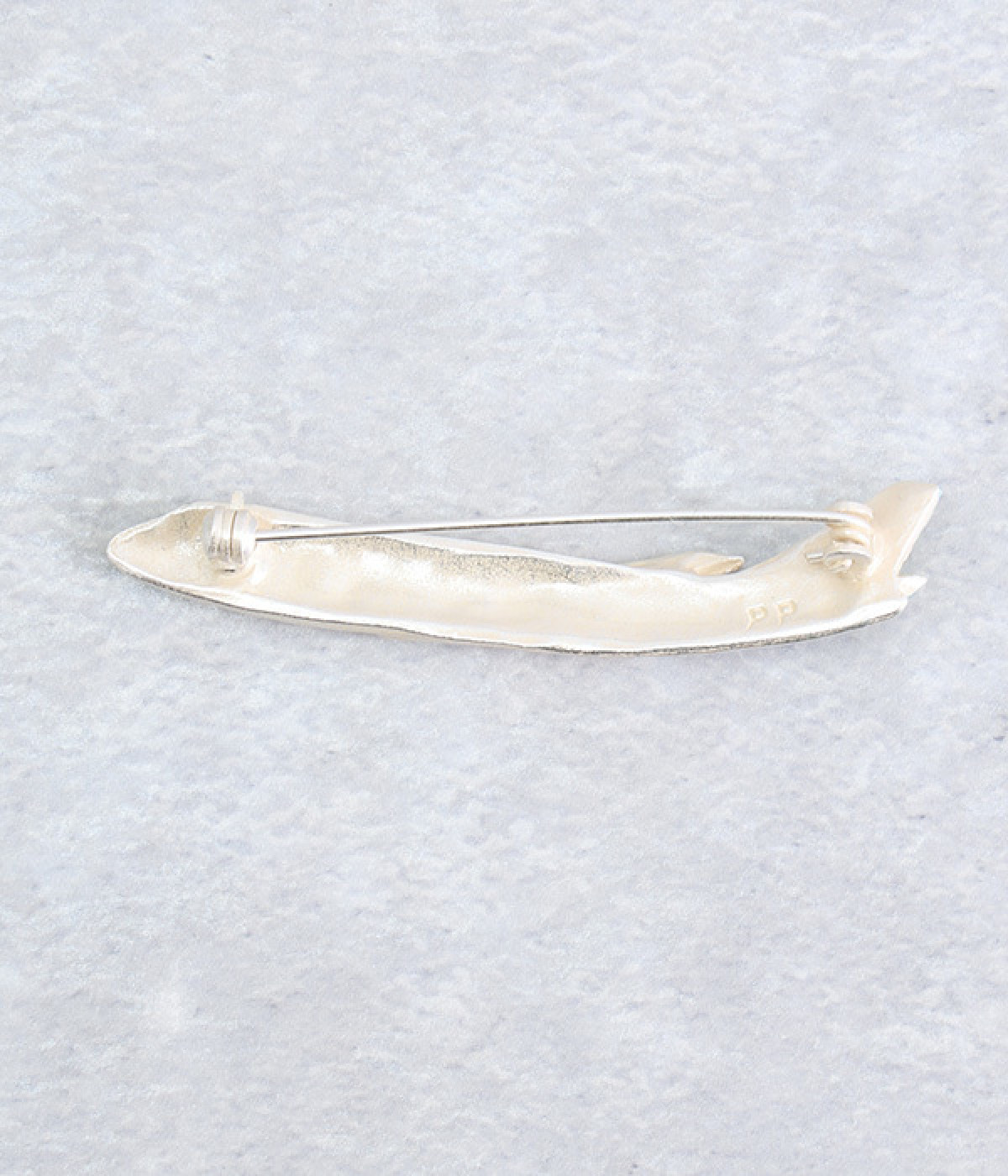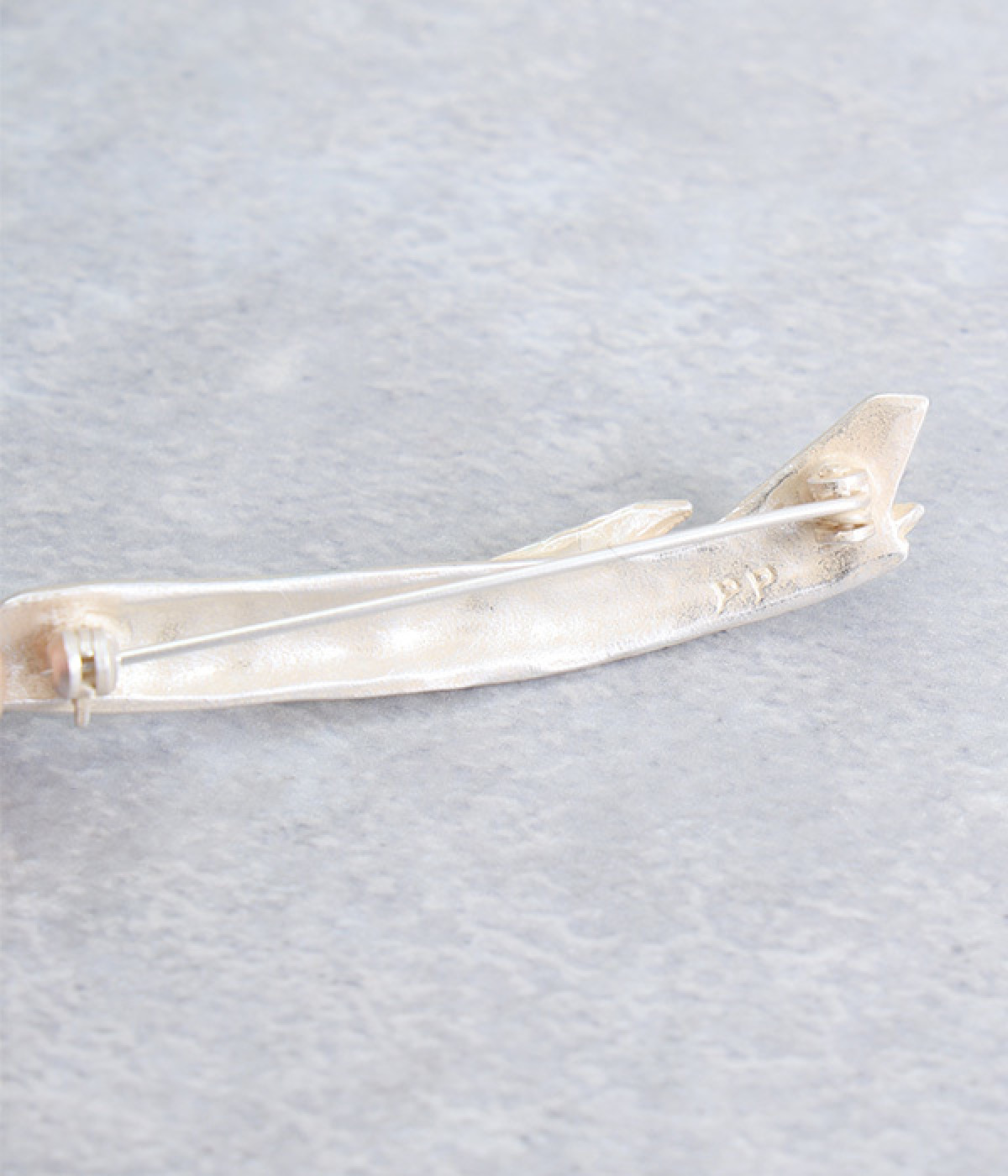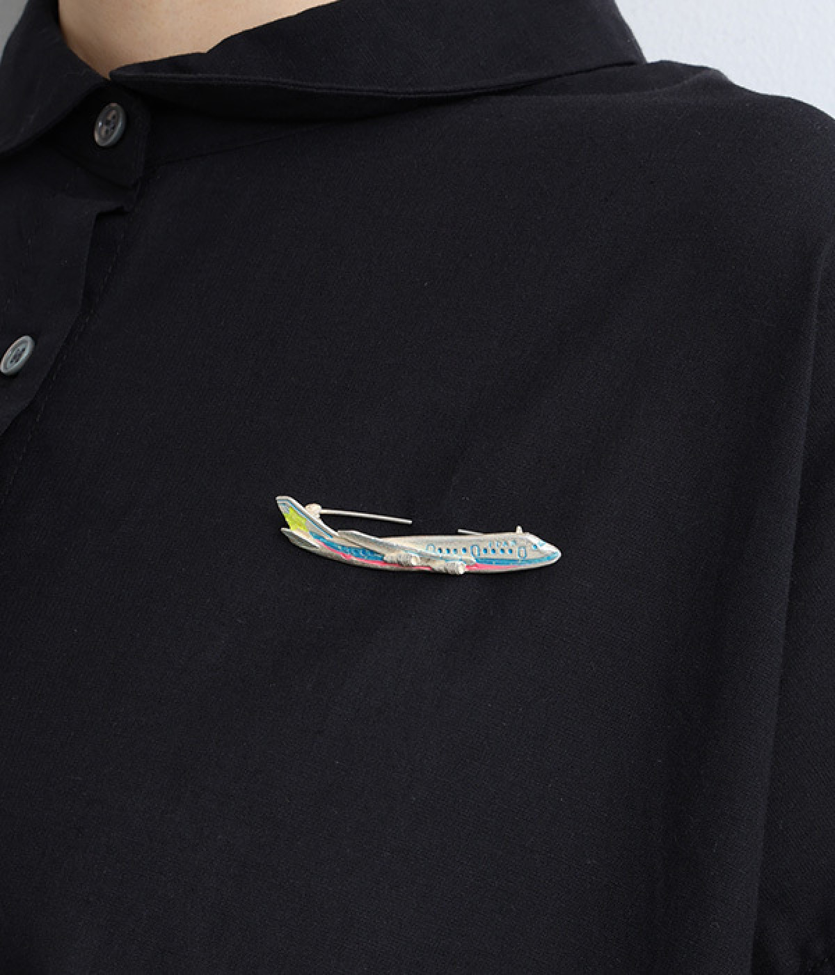 飛行機がパリに向けて飛行中の様子をイメージしたブローチです。機体は空の色をイメージしたラメ入りのカラーとピンクを組み合わせた、爽やかな配色に仕上げています。尾翼には星マークを入れてワンポイントに。立体的な造形には存在感があり、お洋服の胸元にはもちろん、バッグやストールのアクセントとしてつけるのもおすすめです。