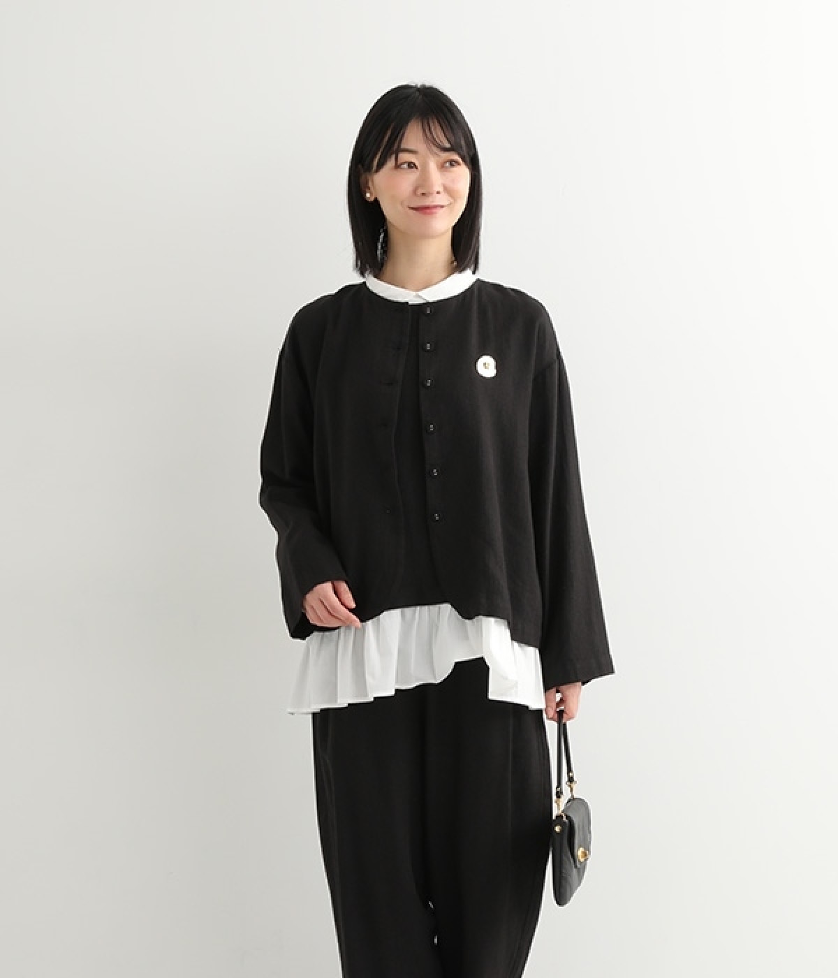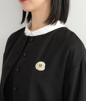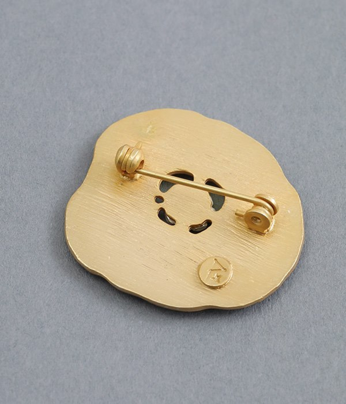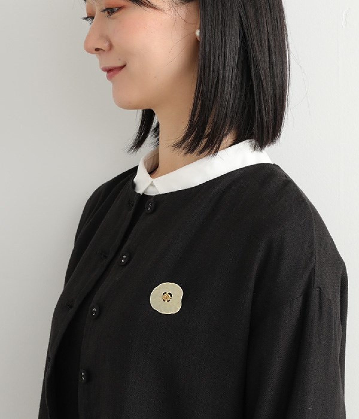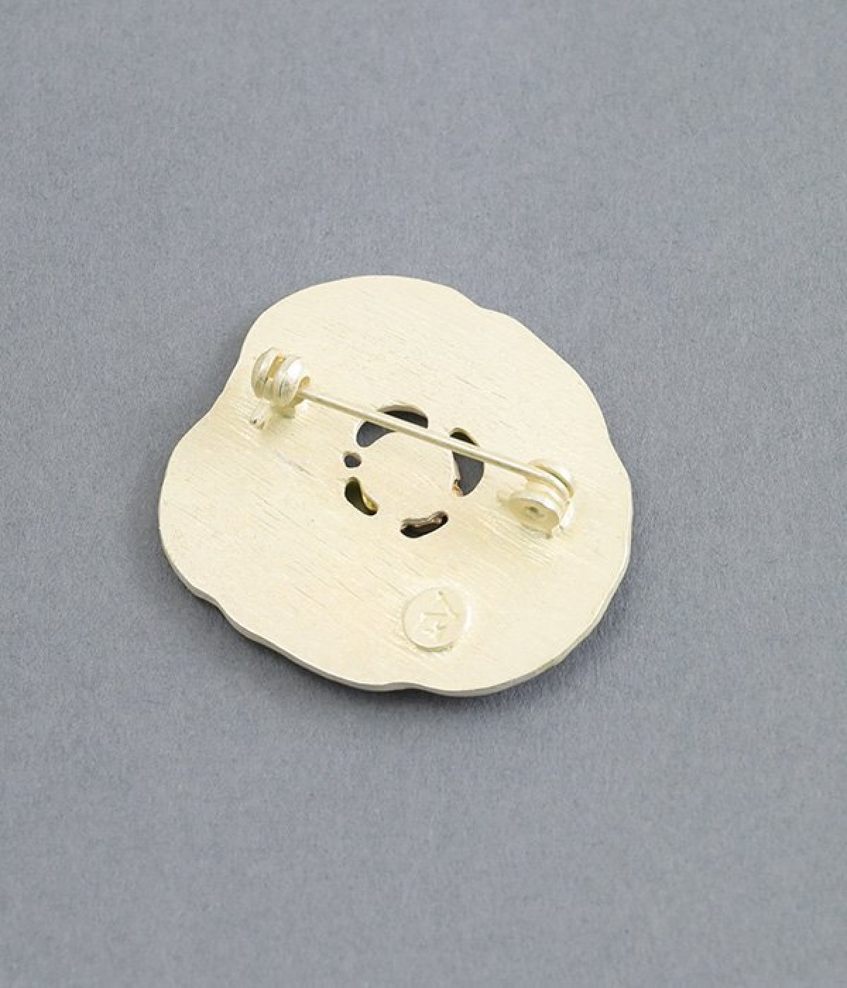 花が開いたようなシルエットと、花芯をイメージしたメタルの粒を集めたようなパーツを組み合わせた、フラワーモチーフをイメージしたブローチです。花のプレートには緩やかな槌目のテクスチャーを施し、ニュアンスたっぷりに仕上げました。中心のパーツとメタルの配色コンビが魅力で、カジュアルにもきれいめな装いにも、上品な彩りを添えてくれます。