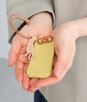 上質な国産姫路レザーの牛革を使用したお守り型ケースです。型押し加工によって革の表情に豊かな風合いが生まれ、使うほどにやわらかく手になじみます。紐や結び目も本革で仕立てられ、耐久性と素材感の良さを両立しています。