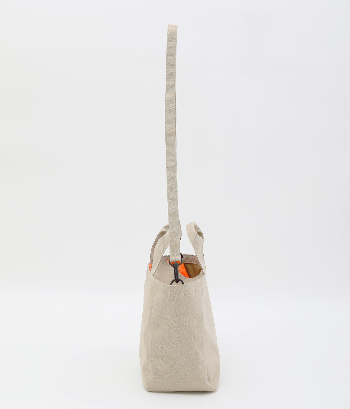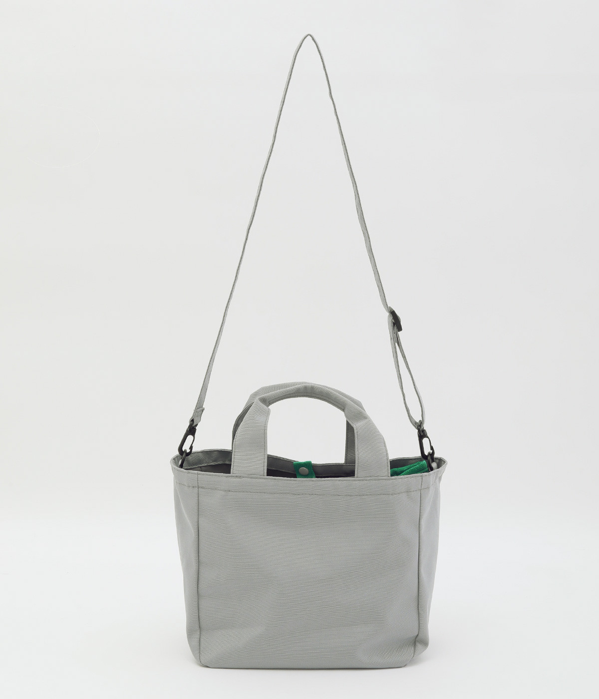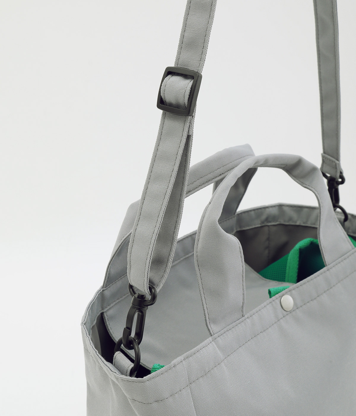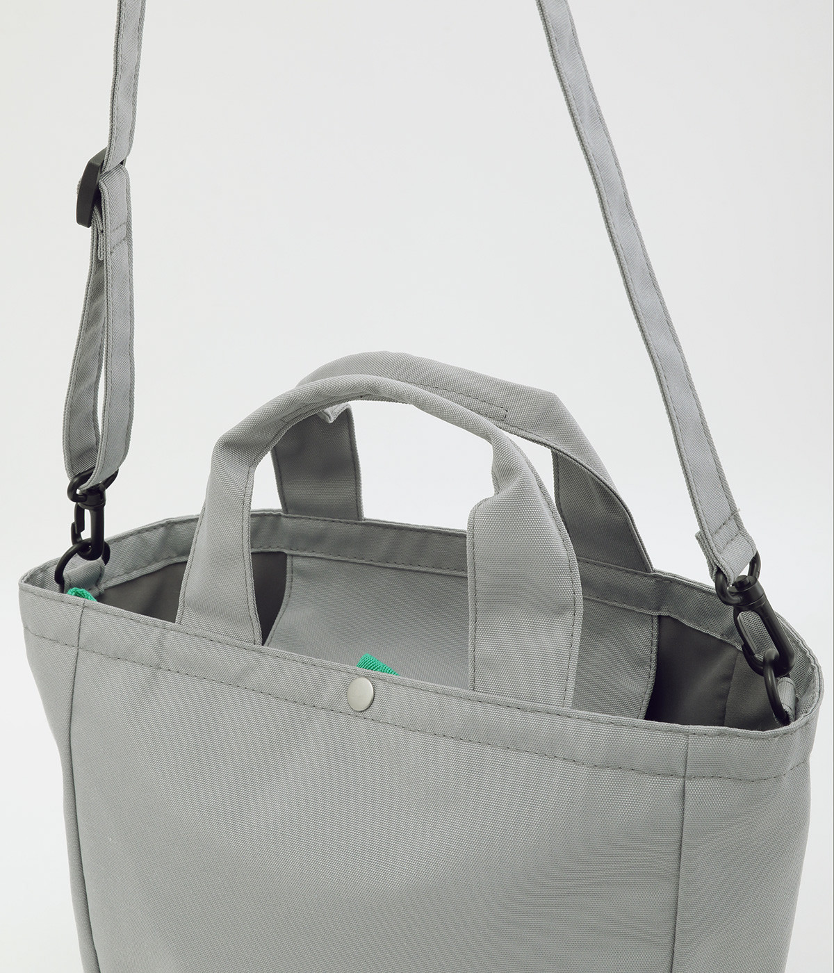 取り外し可能なメッシュのインナーバッグがついたセットアイテム。インナーバッグはペットボトルや折り畳み傘も収納でき、手持ちの他のバッグと組み合わせても便利。本体は中を隠せるフラップつきで、ショルダーにも手提げにもなる2way仕様。