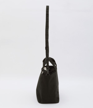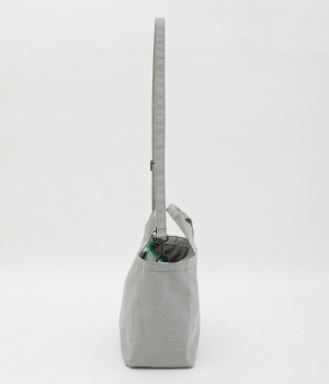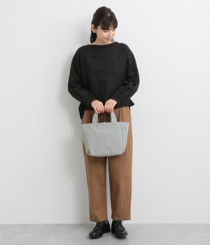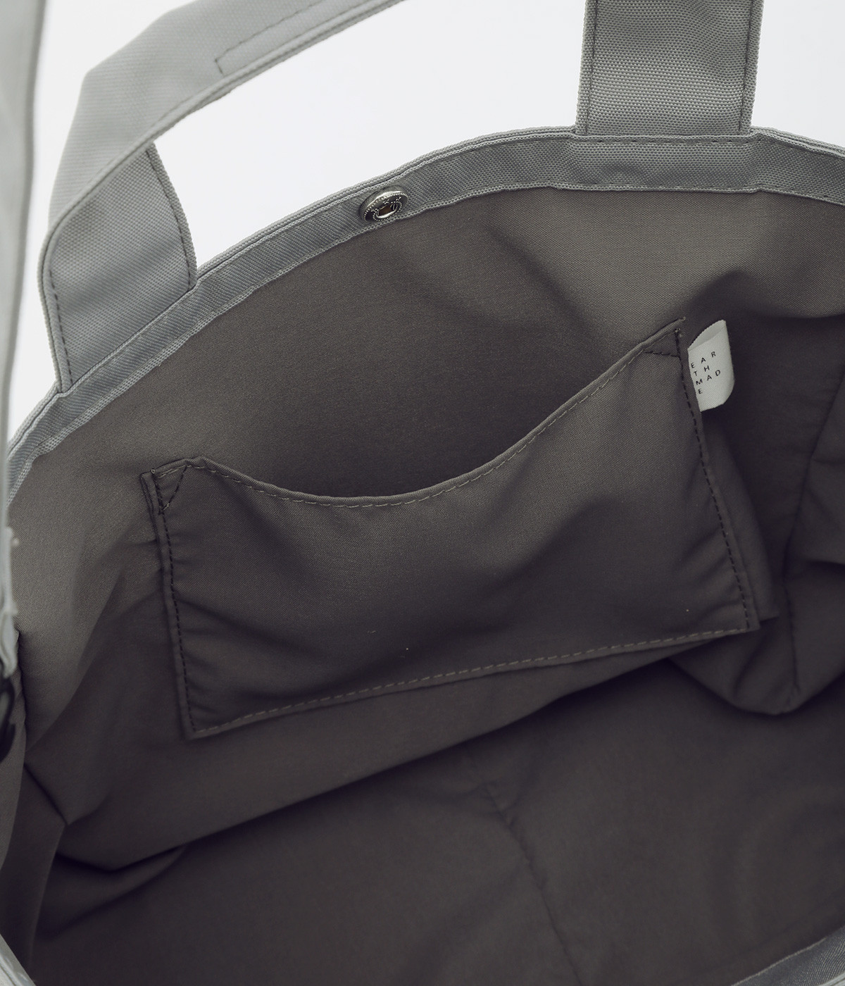 本体には環境にも配慮したペットボトルの再生生地を使用。やわらかな光沢感ときれいな発色が魅力。インナーバッグを合わせても持ち歩きやすい軽量仕上げです。