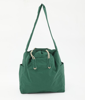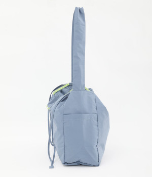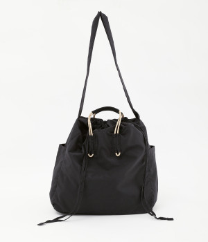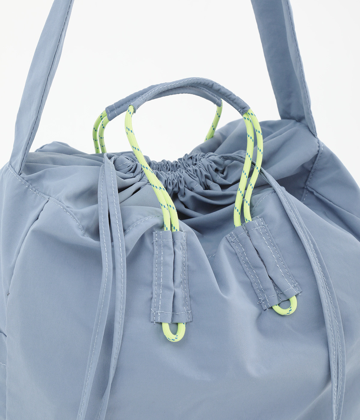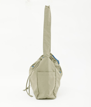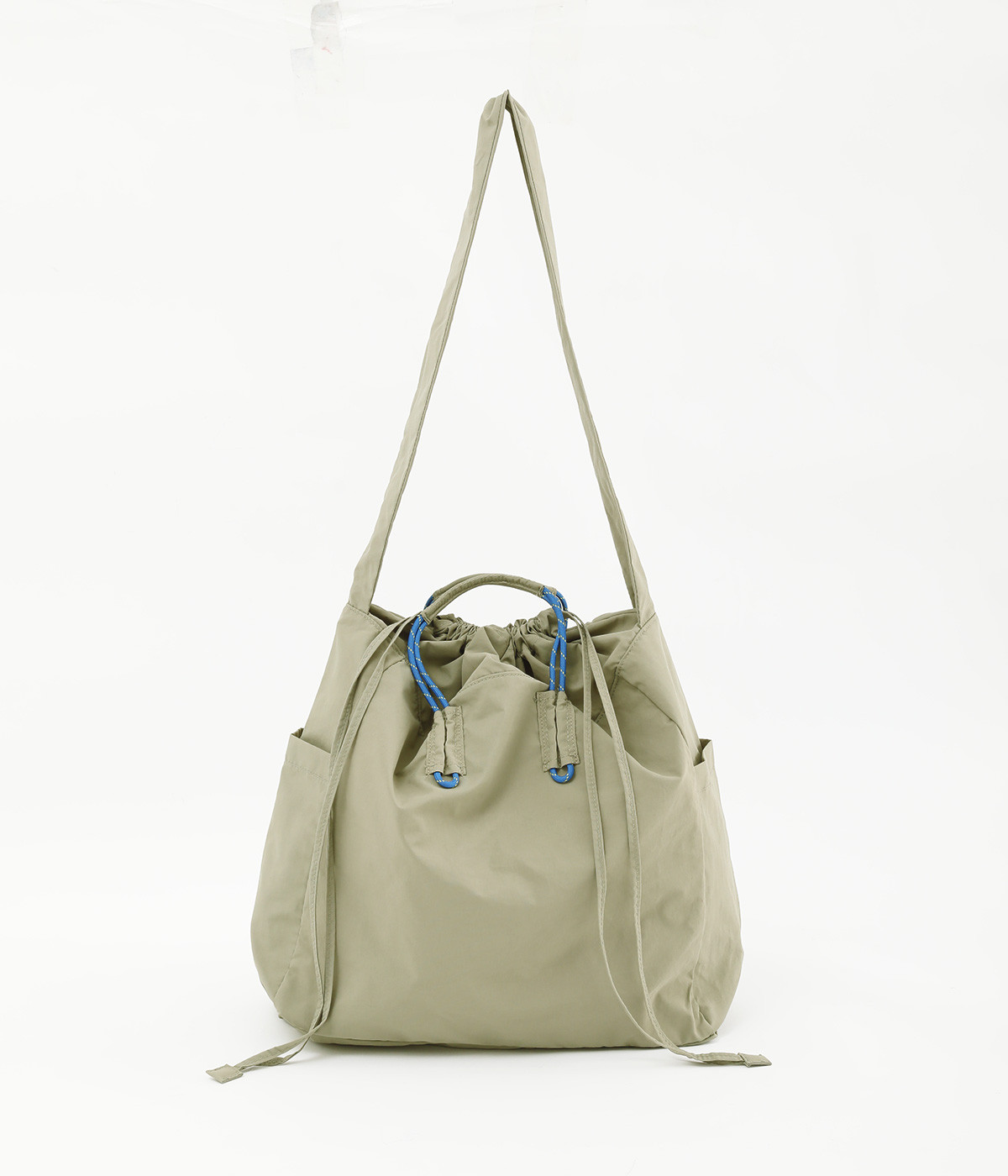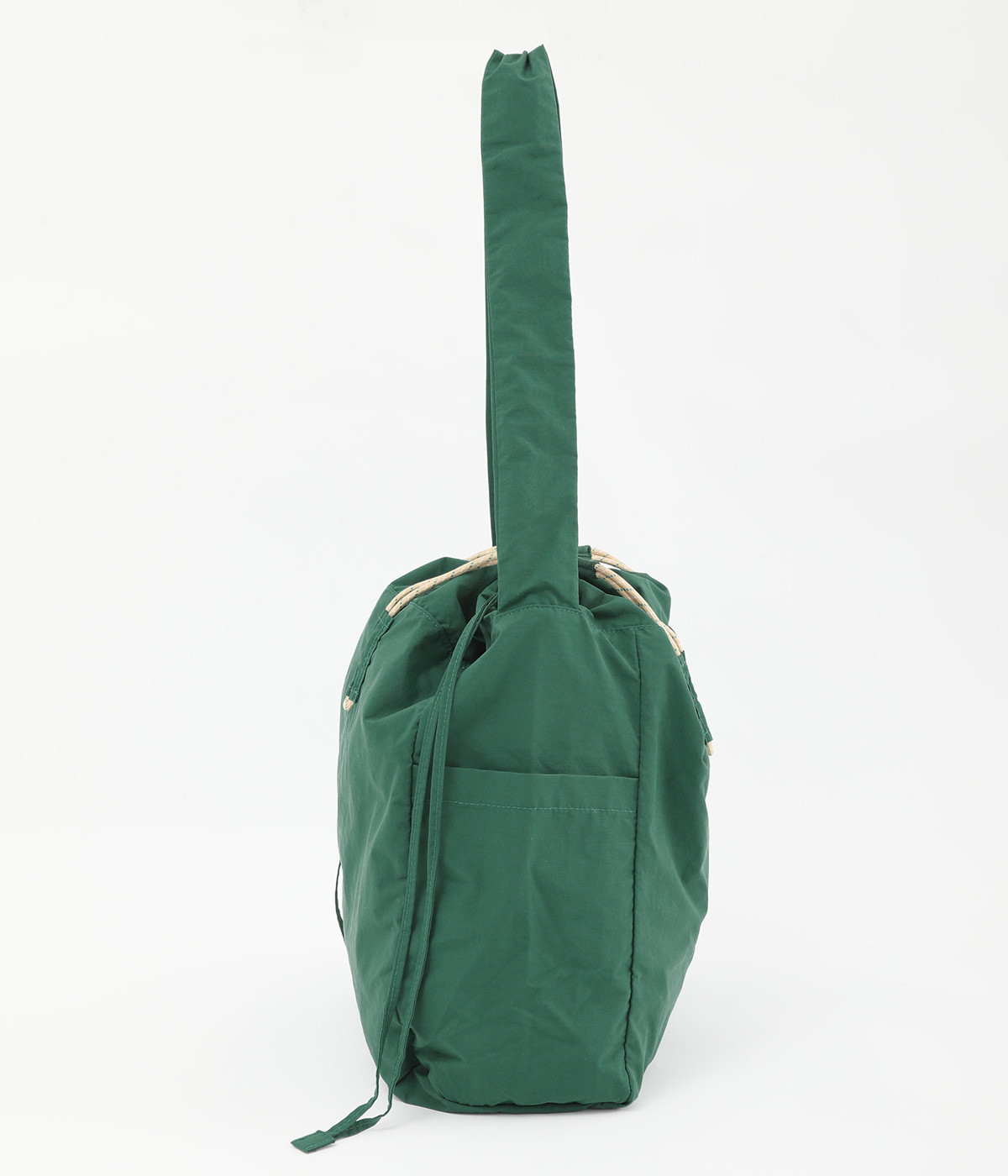 ポケットに本体を収納できるパッカブル仕様のショルダーバッグです。手さげとしても使えて、カラフルな持ち手のコードがアクセントに。きゅっと絞れる巾着タイプで、中の荷物が見えないのもポイント。ポケット付きで機能性にも優れています。