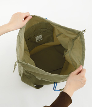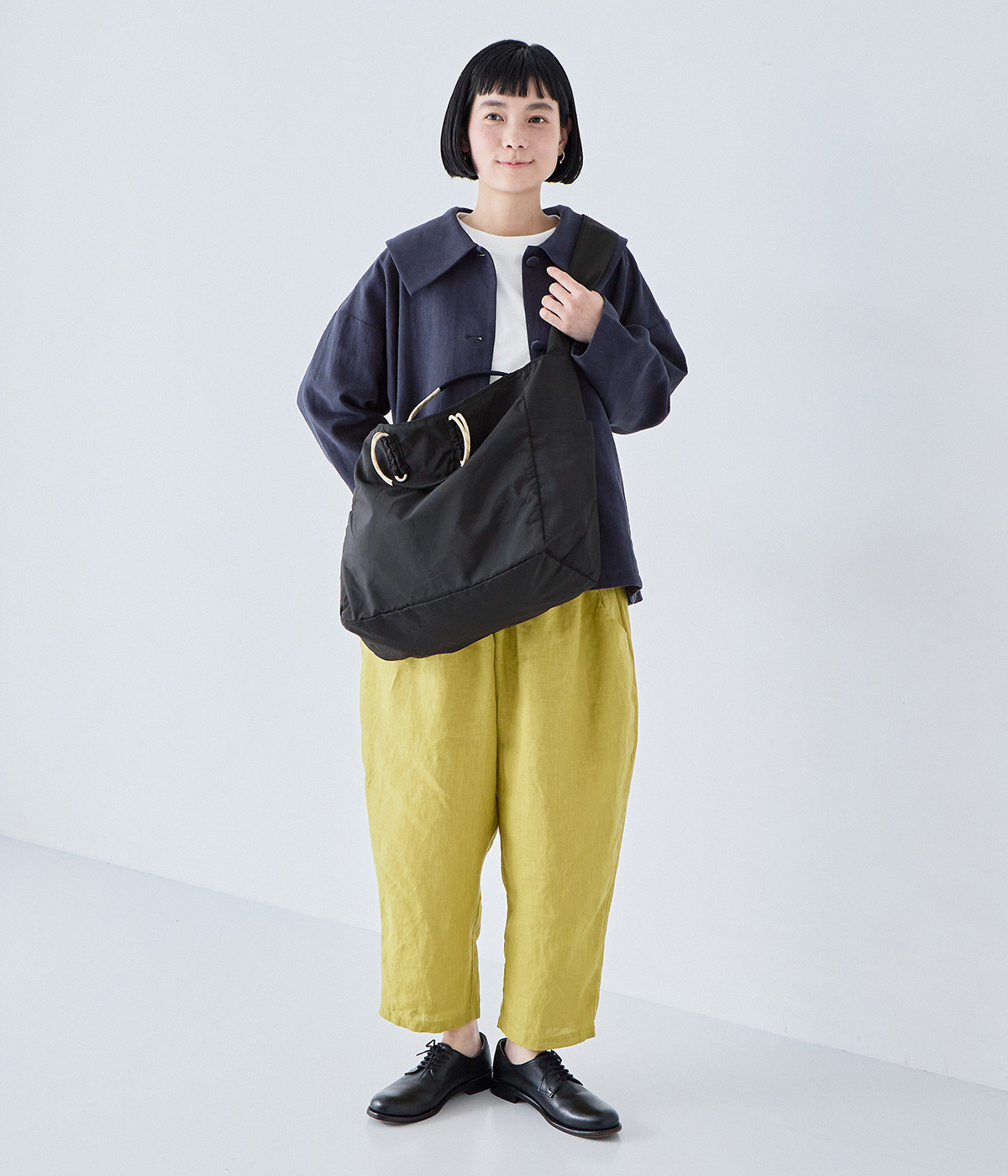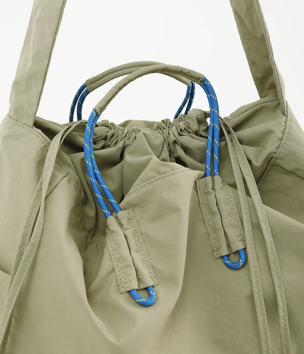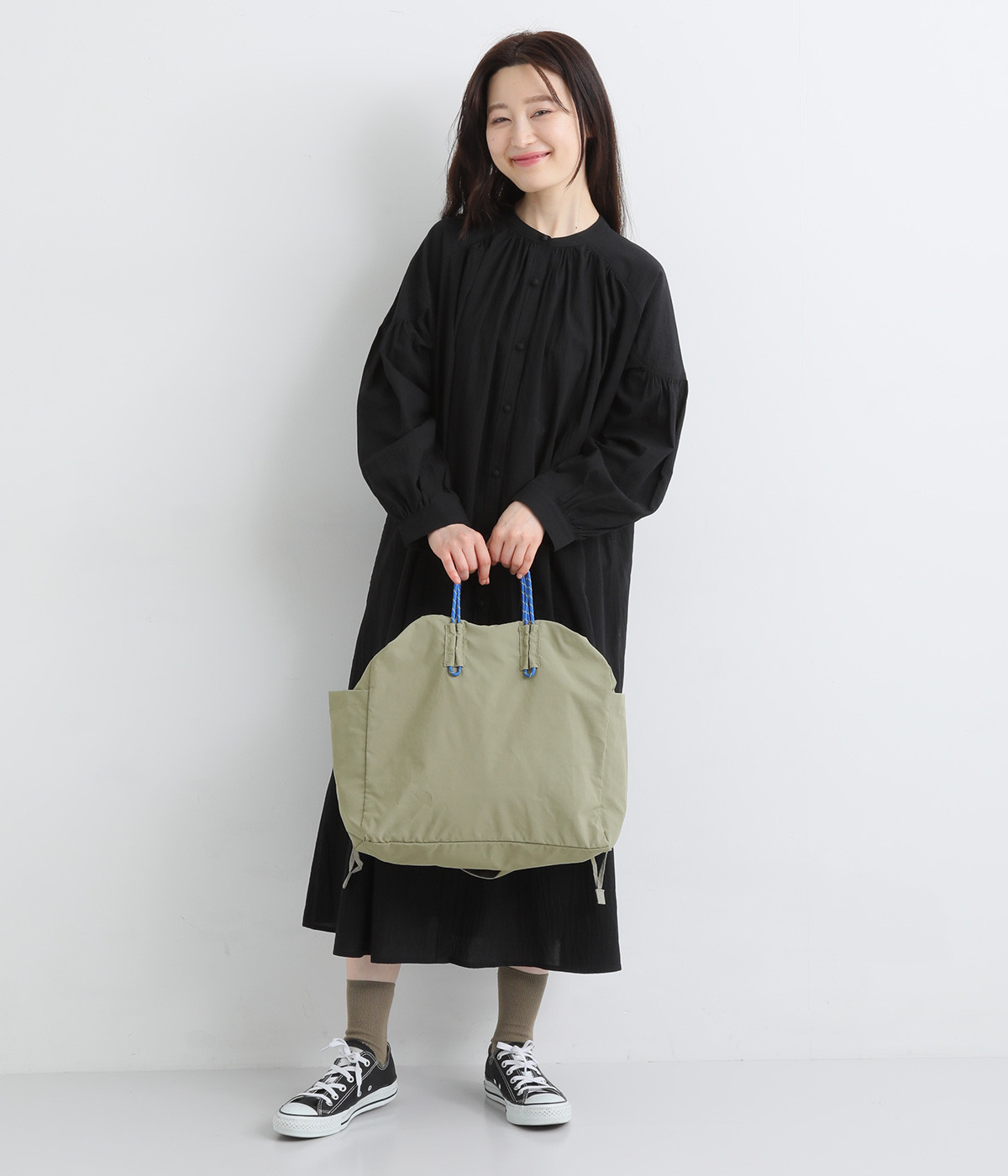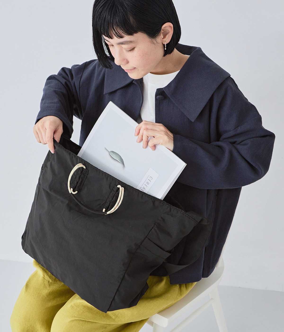 軽くて丈夫なナイロン生地は、持ち運びにも重宝。ナイロン特有のさらさらとした風合いとツヤ感が、大人カジュアルな装いにマッチします。