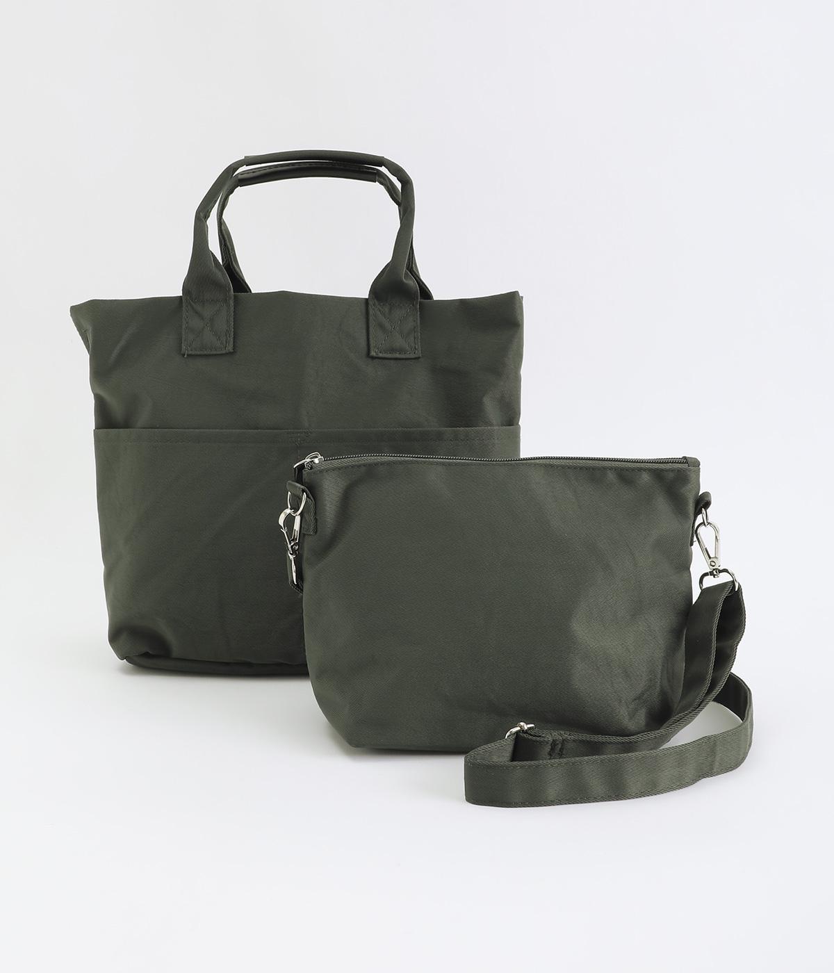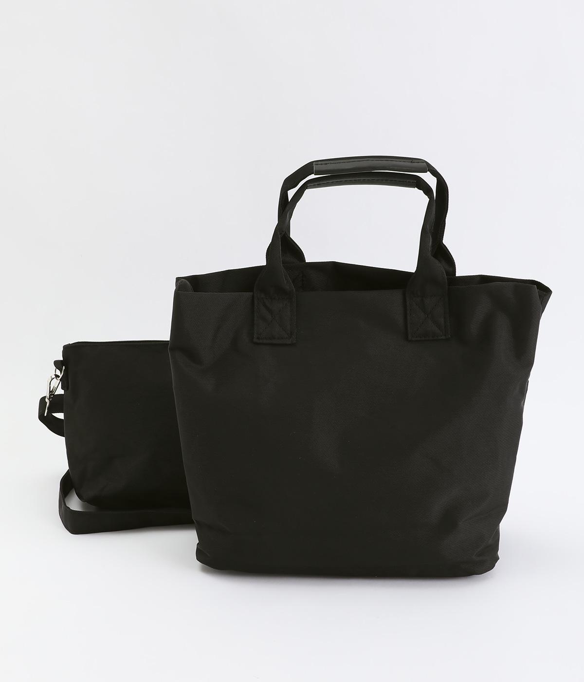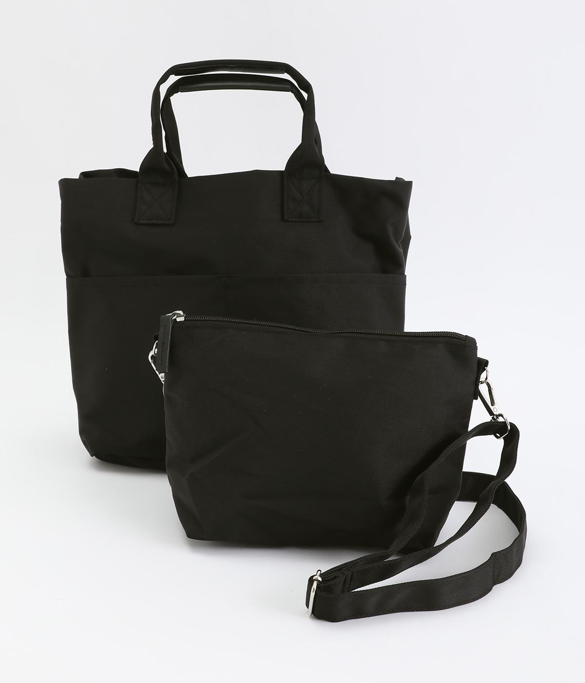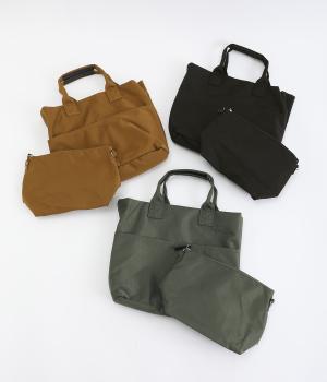 トートバッグ、ポーチ、ショルダーストラップの3点セット。ストラップは長さを調整でき、トートバッグにもポーチにも取りつけできるので使い勝手は抜群。トートバッグには合計8つのポケットがあり、収納面も優秀。ポーチはバッグインして使うこともできます。