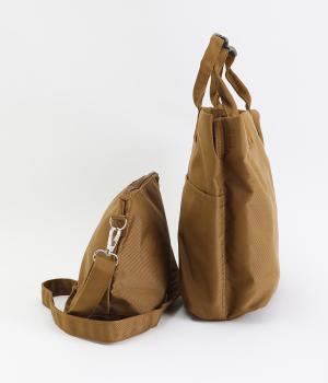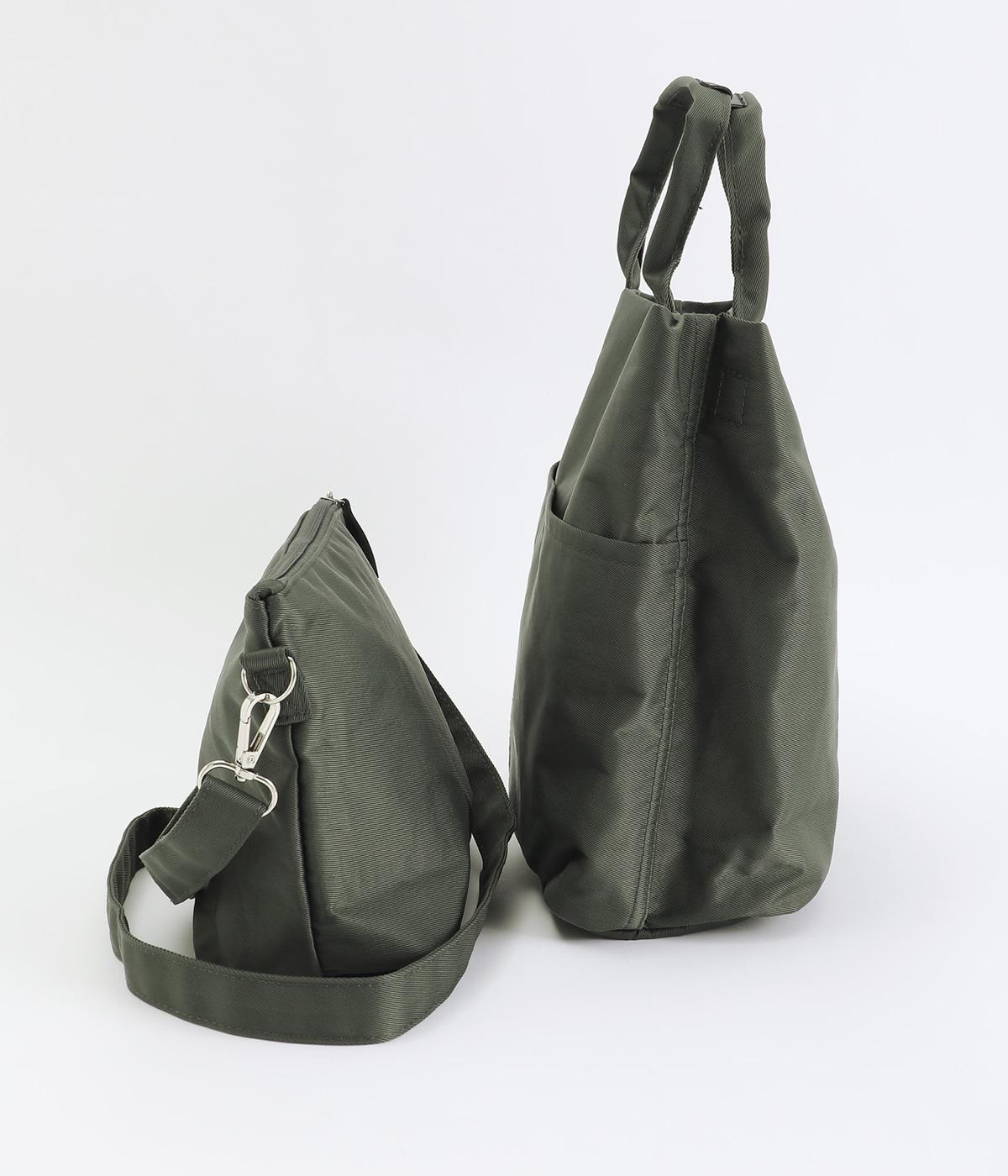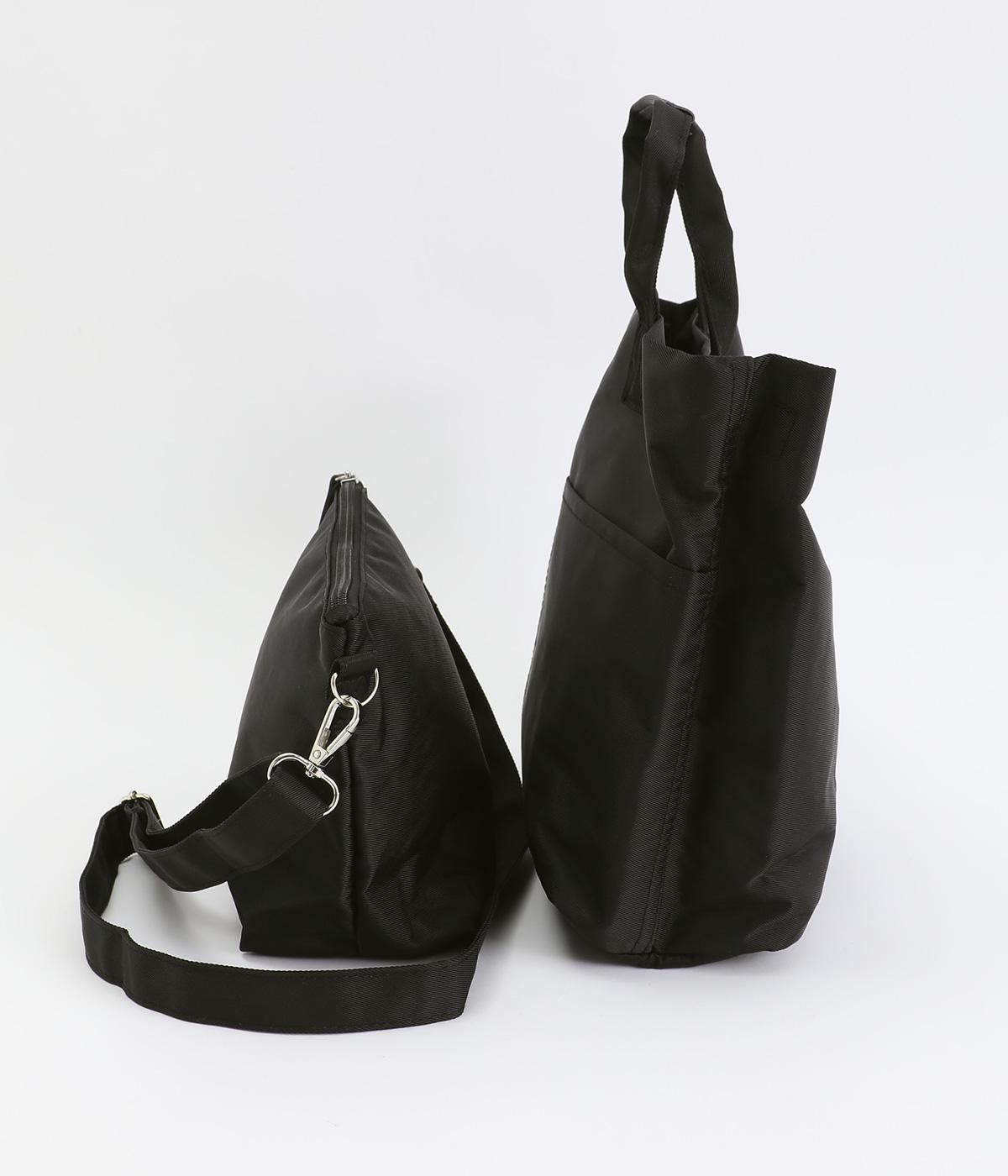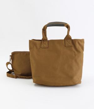 トートバッグ、ポーチ、ショルダーストラップの3点セット。ストラップは長さを調整でき、トートバッグにもポーチにも取りつけできるので使い勝手は抜群。トートバッグには合計8つのポケットがあり、収納面も優秀。ポーチはバッグインして使うこともできます。