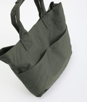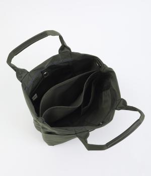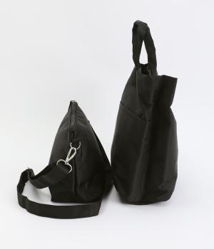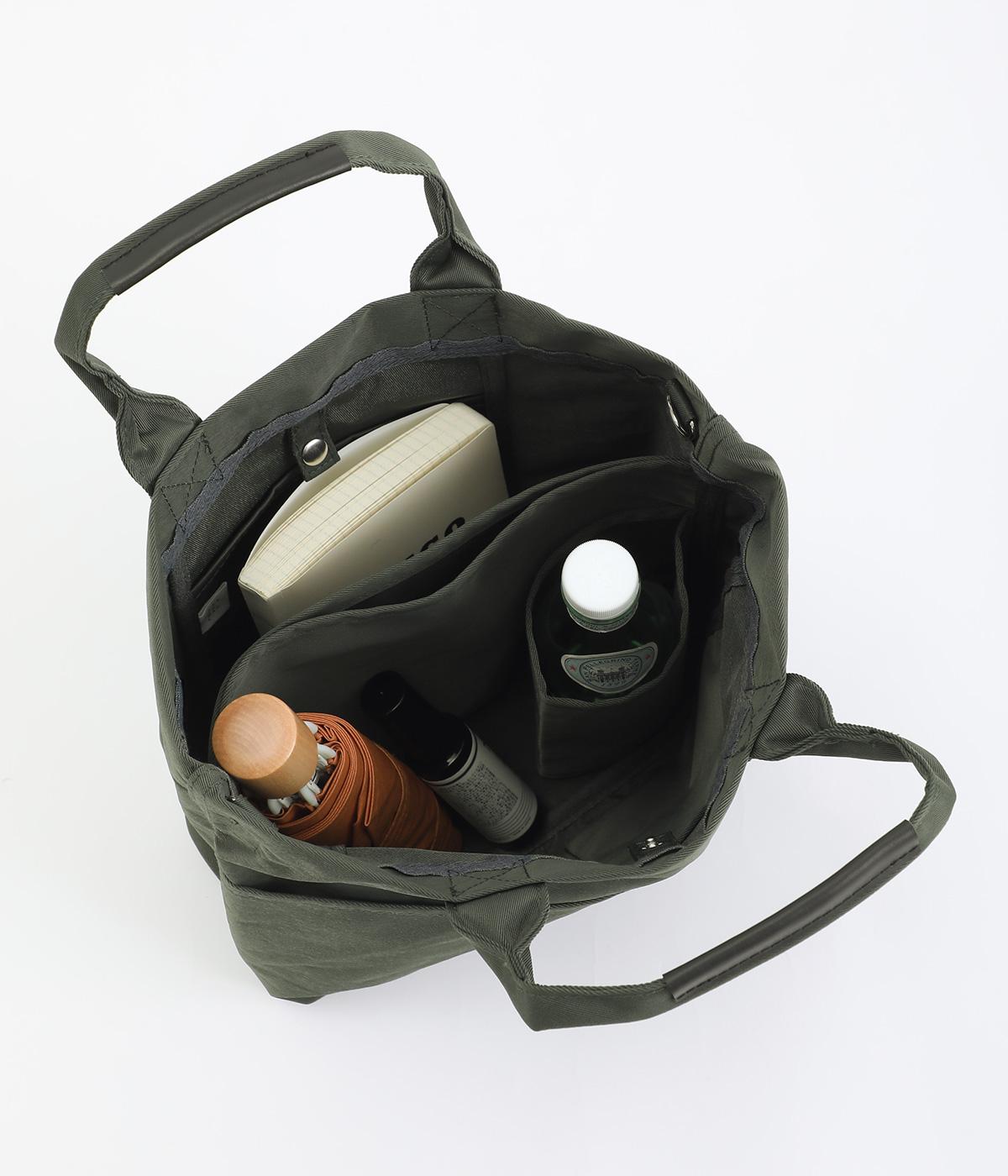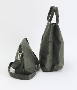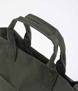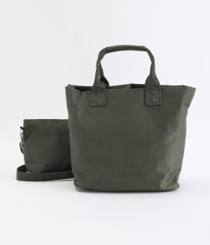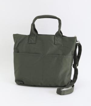 やや光沢のある、カジュアルになりすぎない見た目が魅力。シンプルな無地のバッグは服を選ばず、コーディネートの幅を広げてくれます。軽い素材なので、トートバッグは肩がけしても手持ちしても◎。