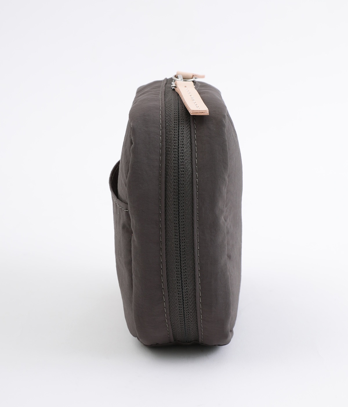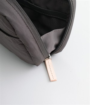 【素材】少しシワ感のあるナイロン素材は適度なやわらかさがあり、持った時の感触のよさがポイント。ロゴのみを取り入れたシンプルなルックスなので幅広い方におすすめです。【デザイン】しっかりとマチがあり、見た目よりも収納力に優れたスクエアフォルム。シンプルなロゴプリントがアクセントになっています。多彩なポケットを兼ね備えているので使い勝手良好。持ち運びにちょうどいいサイズ感に仕上げました。