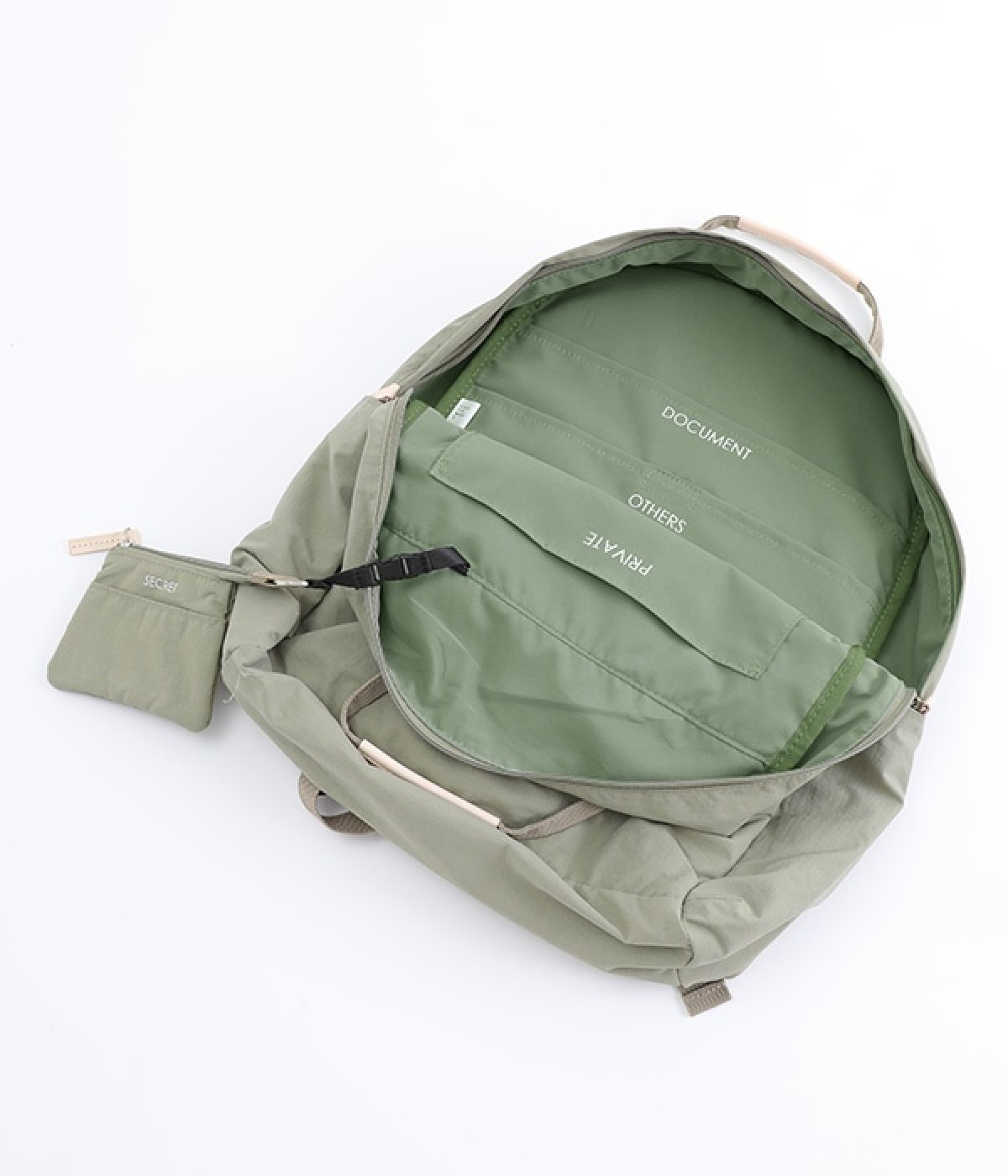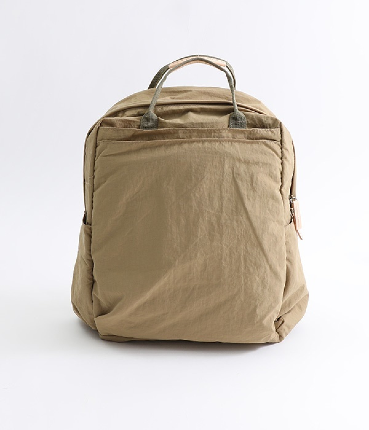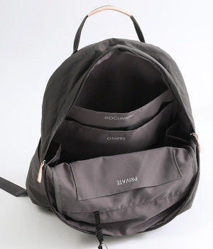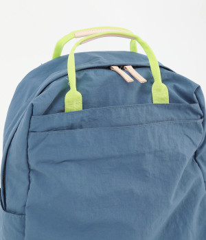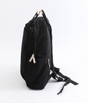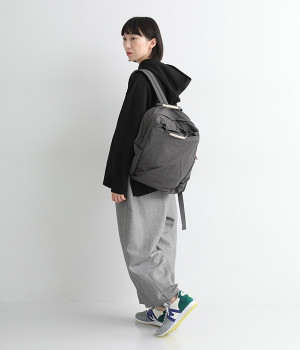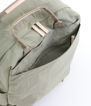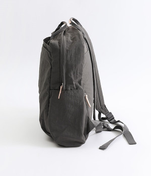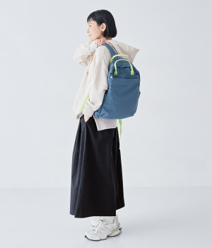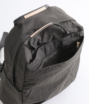 さらっとマットな質感のナイロン生地で軽さとやわらかさがあり、長時間背負っても疲れにくいのがうれしいリュックです。カジュアルスタイルになじみ毎日使えるシンプルなデザイン。荷物の仕分けが細かくできる多数のポケットを搭載していて、書類やタブレット、お財布などの貴重品をそれぞれの使いやすい定位置に収納できます。迷子になりがちな小物類は取り外し式のミニポーチへ入れても◎。レザーパーツ付きのハンドルで手持ちも可能です。