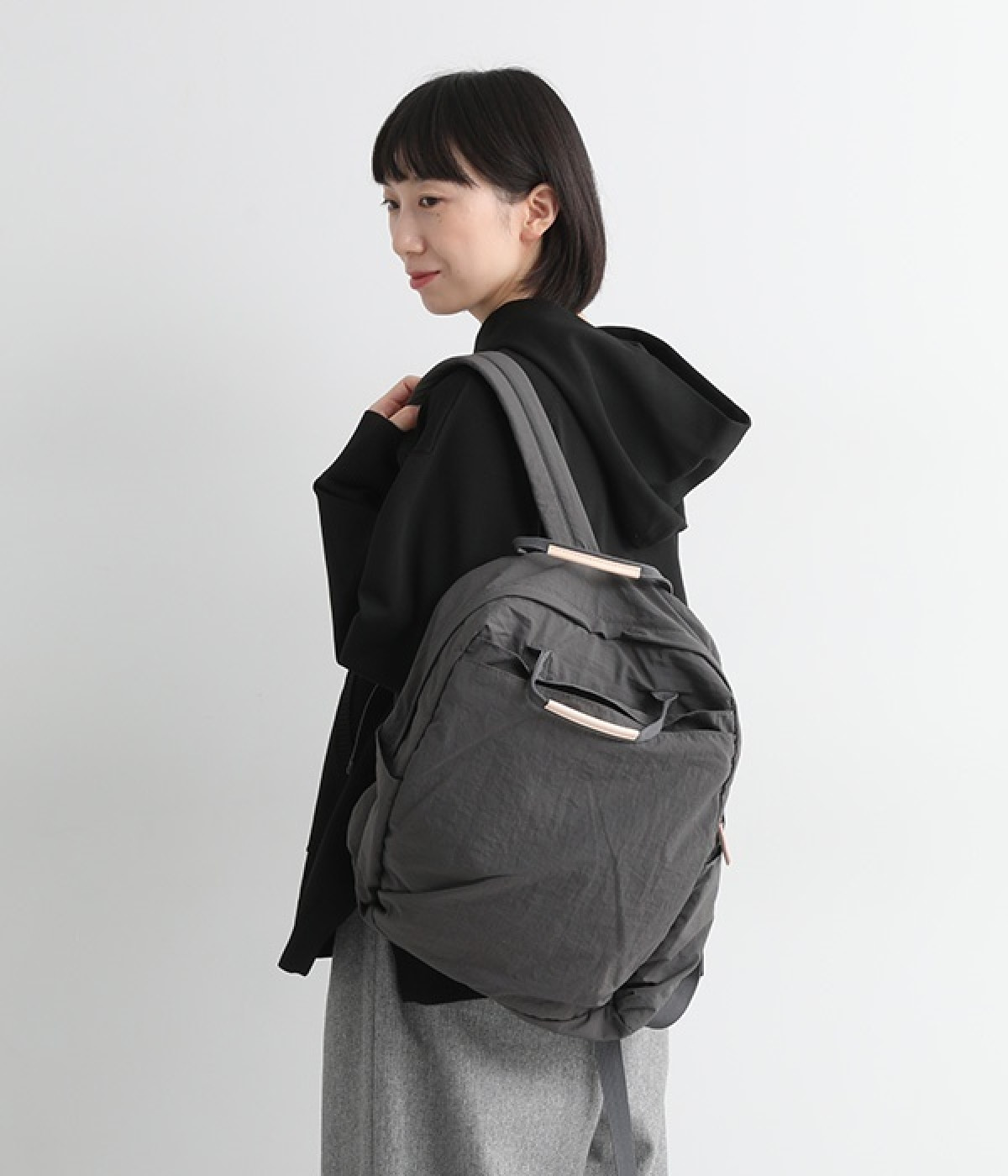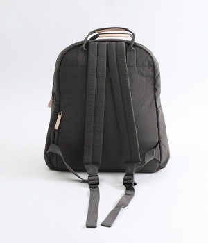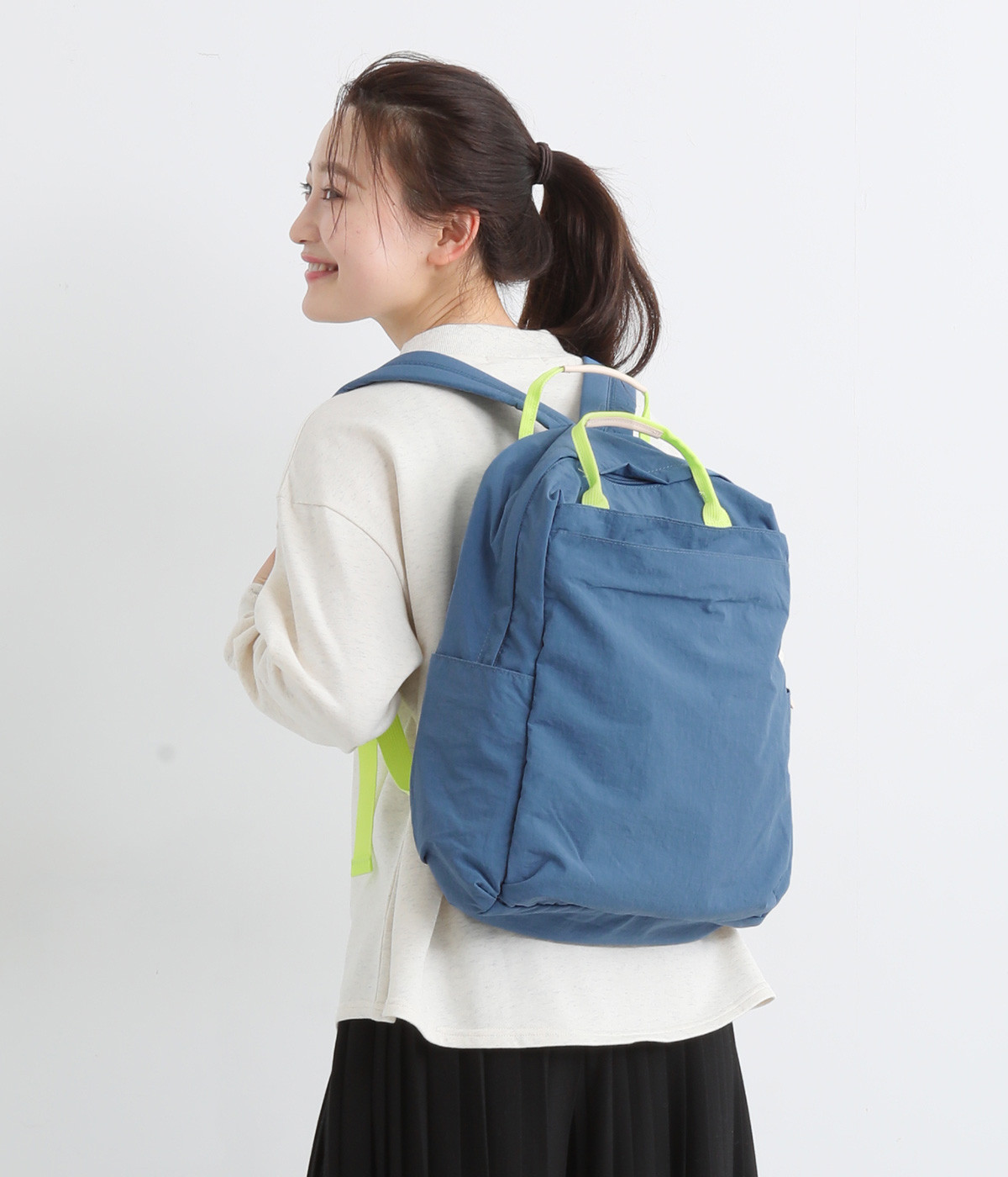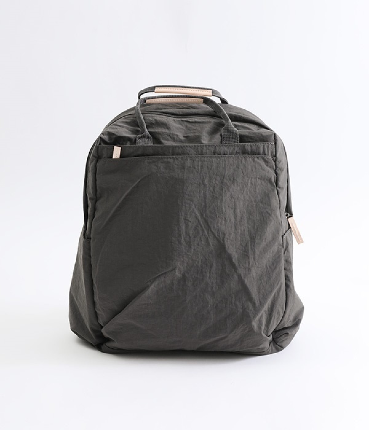 さらっとマットな質感のナイロン生地で軽さとやわらかさがあり、長時間背負っても疲れにくいのがうれしいリュックです。カジュアルスタイルになじみ毎日使えるシンプルなデザイン。荷物の仕分けが細かくできる多数のポケットを搭載していて、書類やタブレット、お財布などの貴重品をそれぞれの使いやすい定位置に収納できます。迷子になりがちな小物類は取り外し式のミニポーチへ入れても◎。レザーパーツ付きのハンドルで手持ちも可能です。