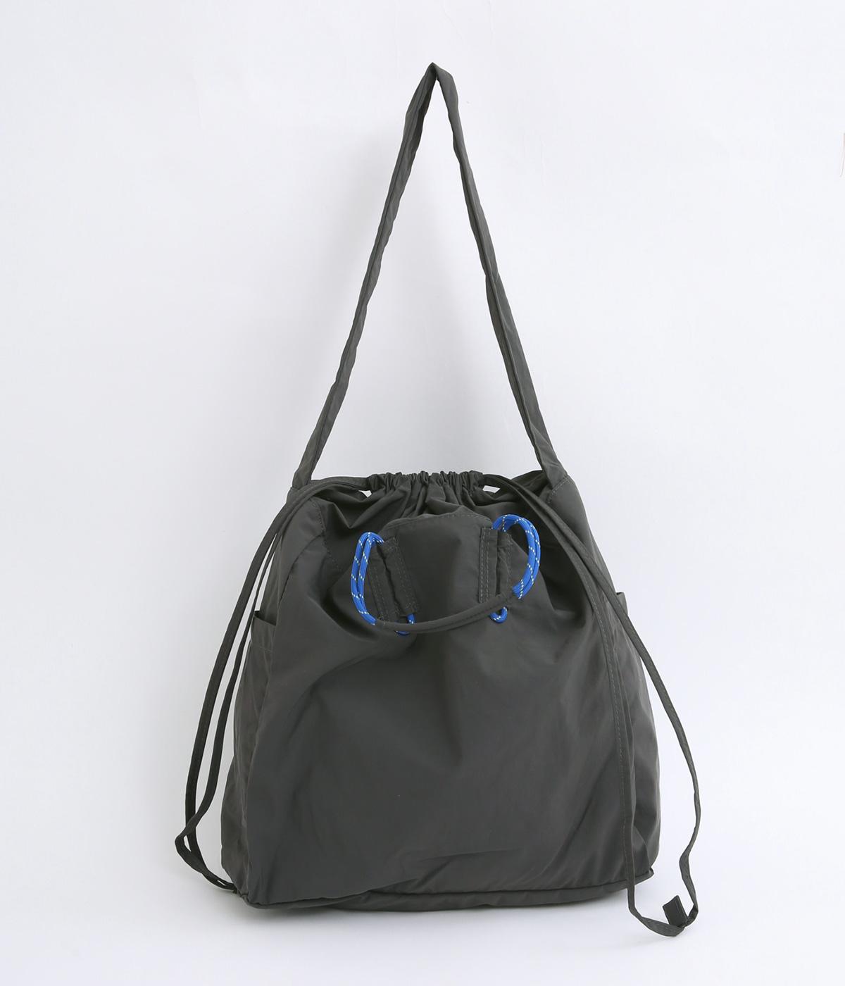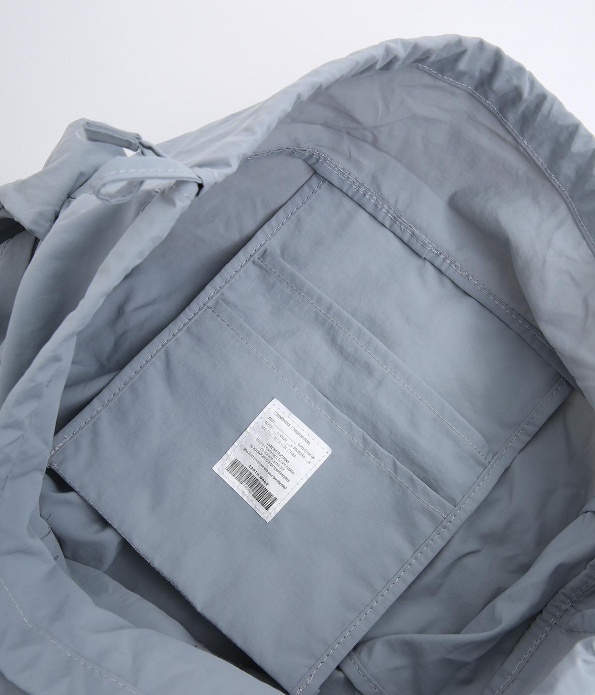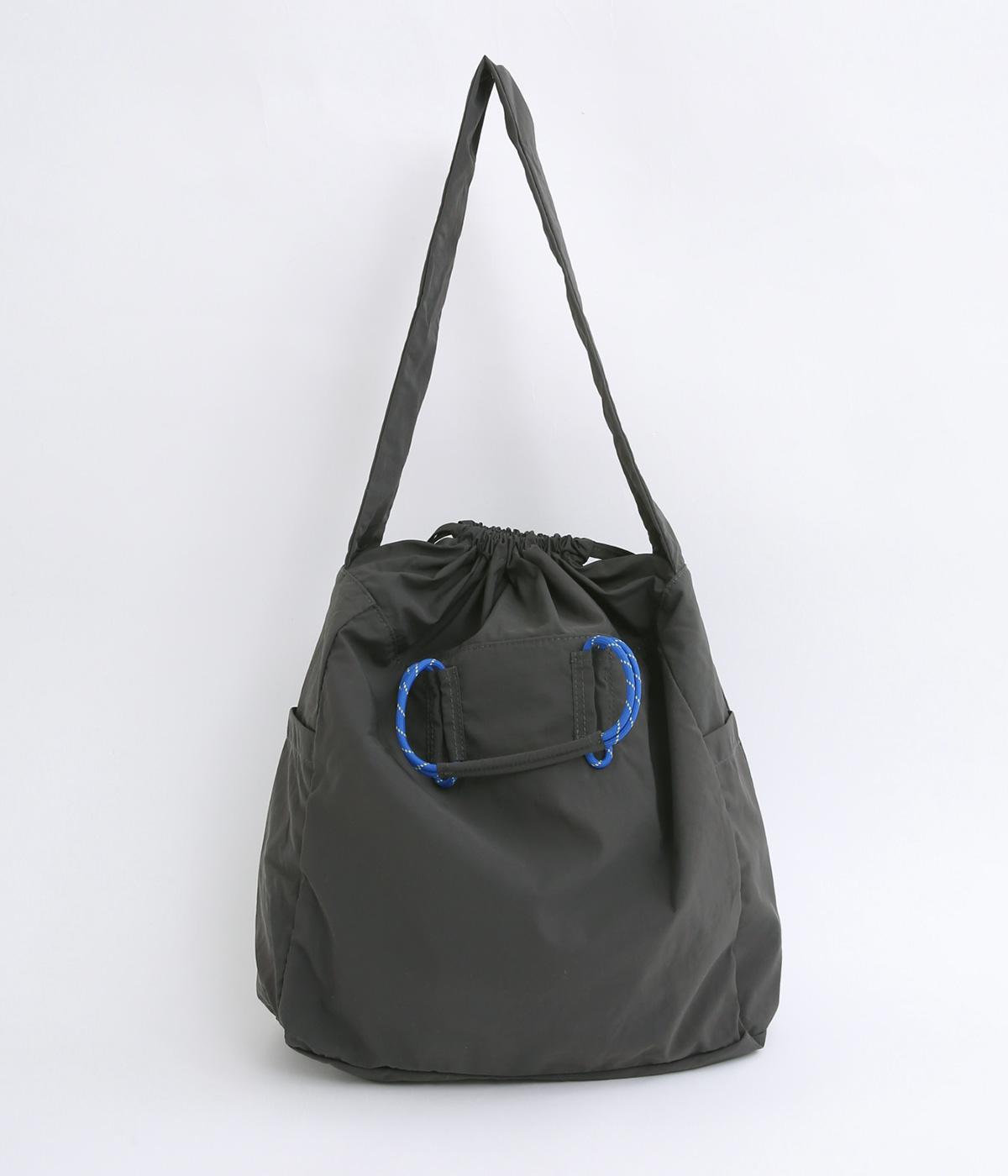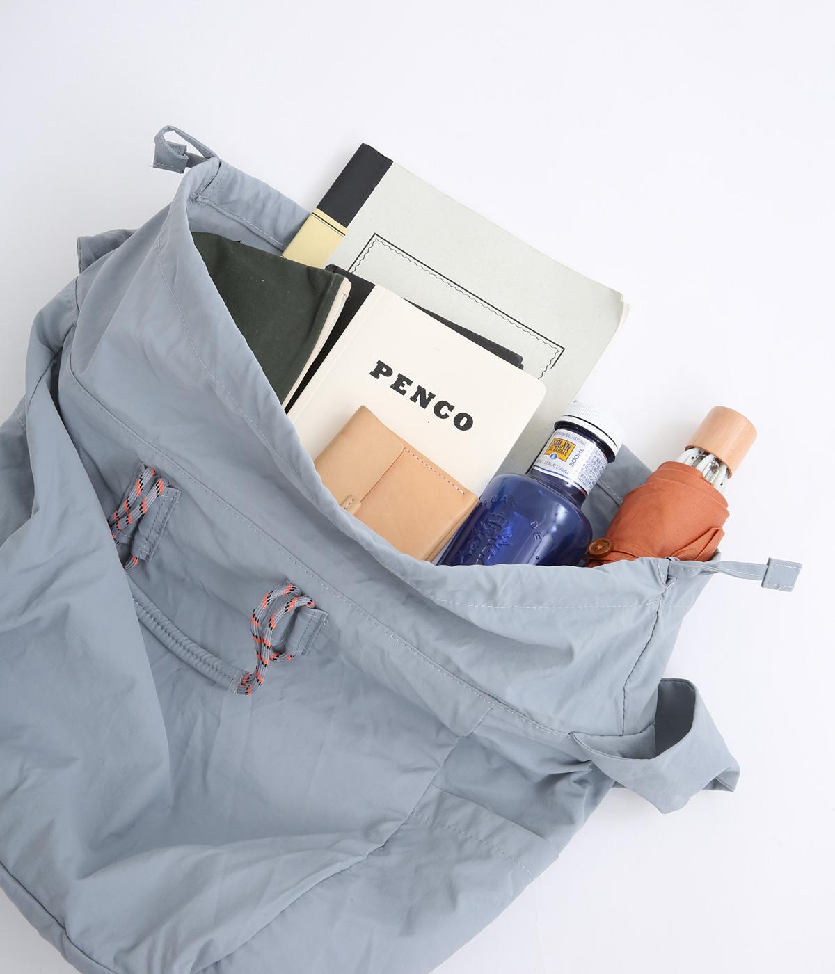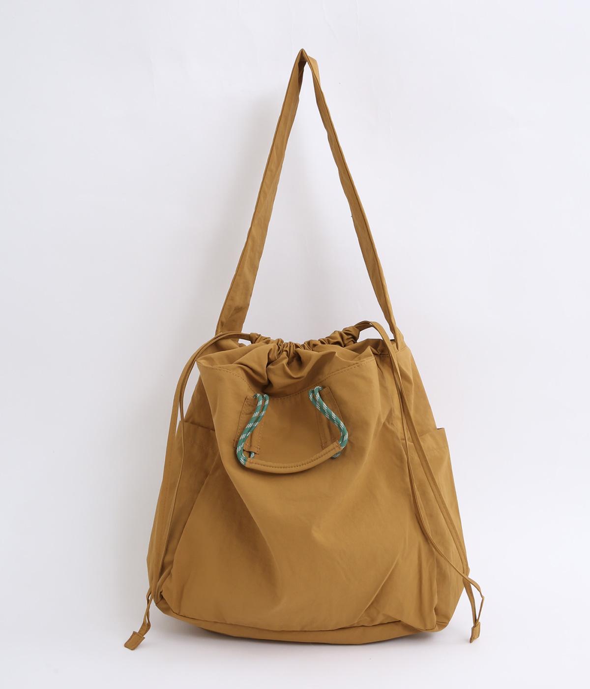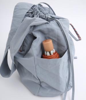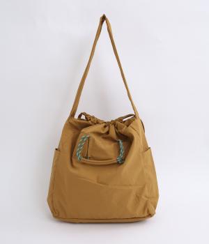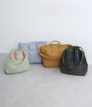 パラコードをハンドルにした手提げ、キュッと絞って巾着、太ショルダーでななめ掛け、と3役叶えてくれる大容量バッグです。内ポケットに収納可能なポケッタブル仕様で持ち歩きやすく、出先で荷物が増えた時にも重宝します。