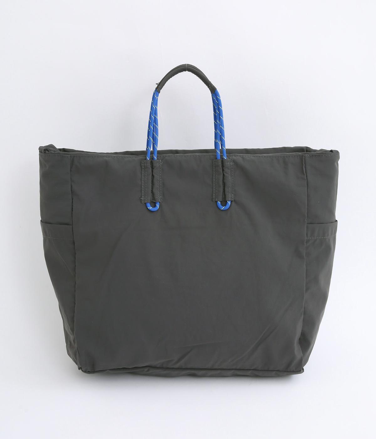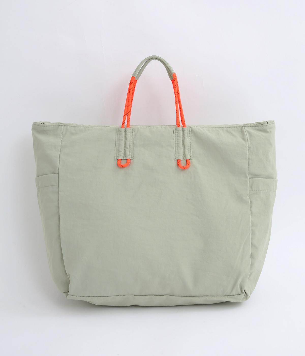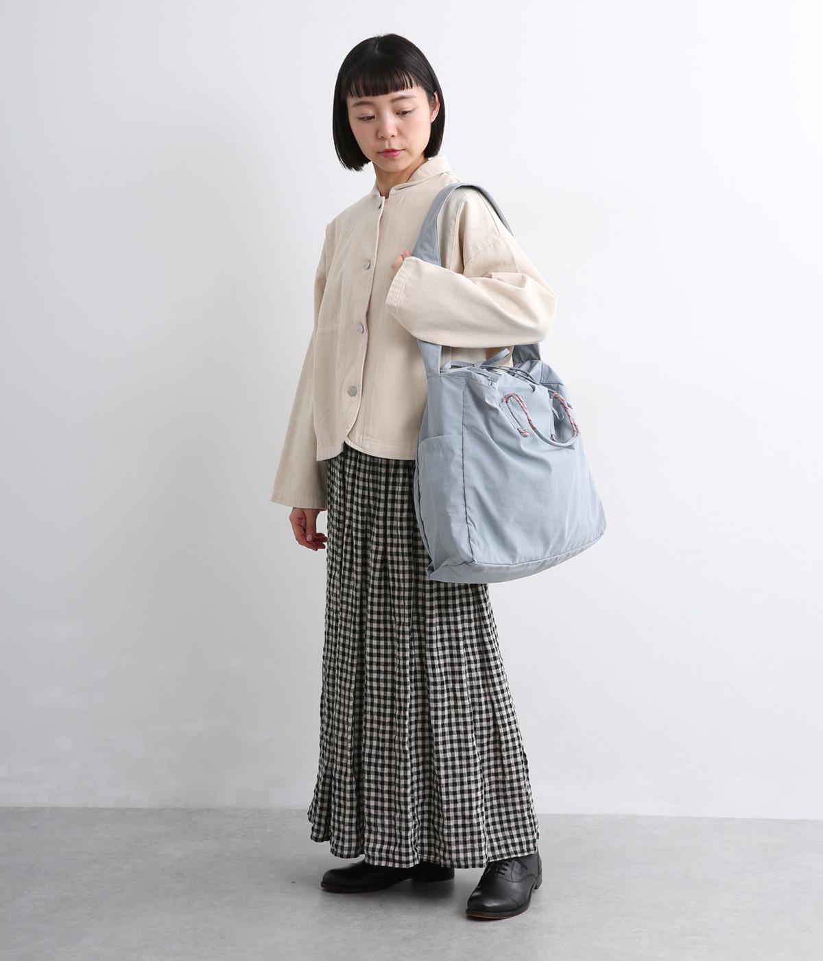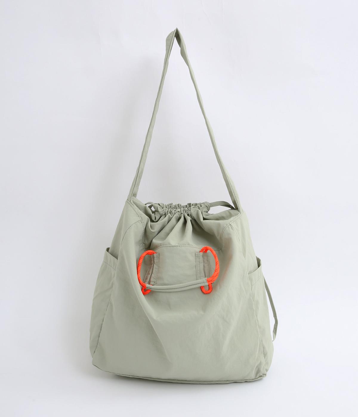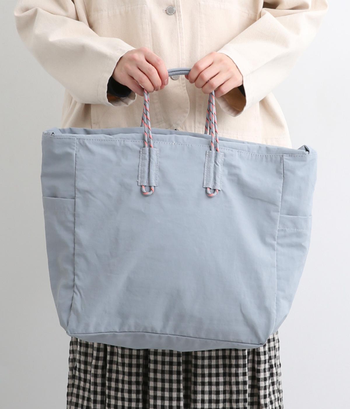 パラコードをハンドルにした手提げ、キュッと絞って巾着、太ショルダーでななめ掛け、と3役叶えてくれる大容量バッグです。内ポケットに収納可能なポケッタブル仕様で持ち歩きやすく、出先で荷物が増えた時にも重宝します。