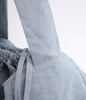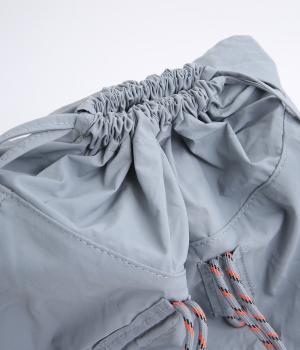 タフなシャリ感が特徴的なナイロン生地に撥水加工をほどこしてよりアクティブに活躍。ほどよいハリとマットな質感でシティ感のある洗練された表情に。