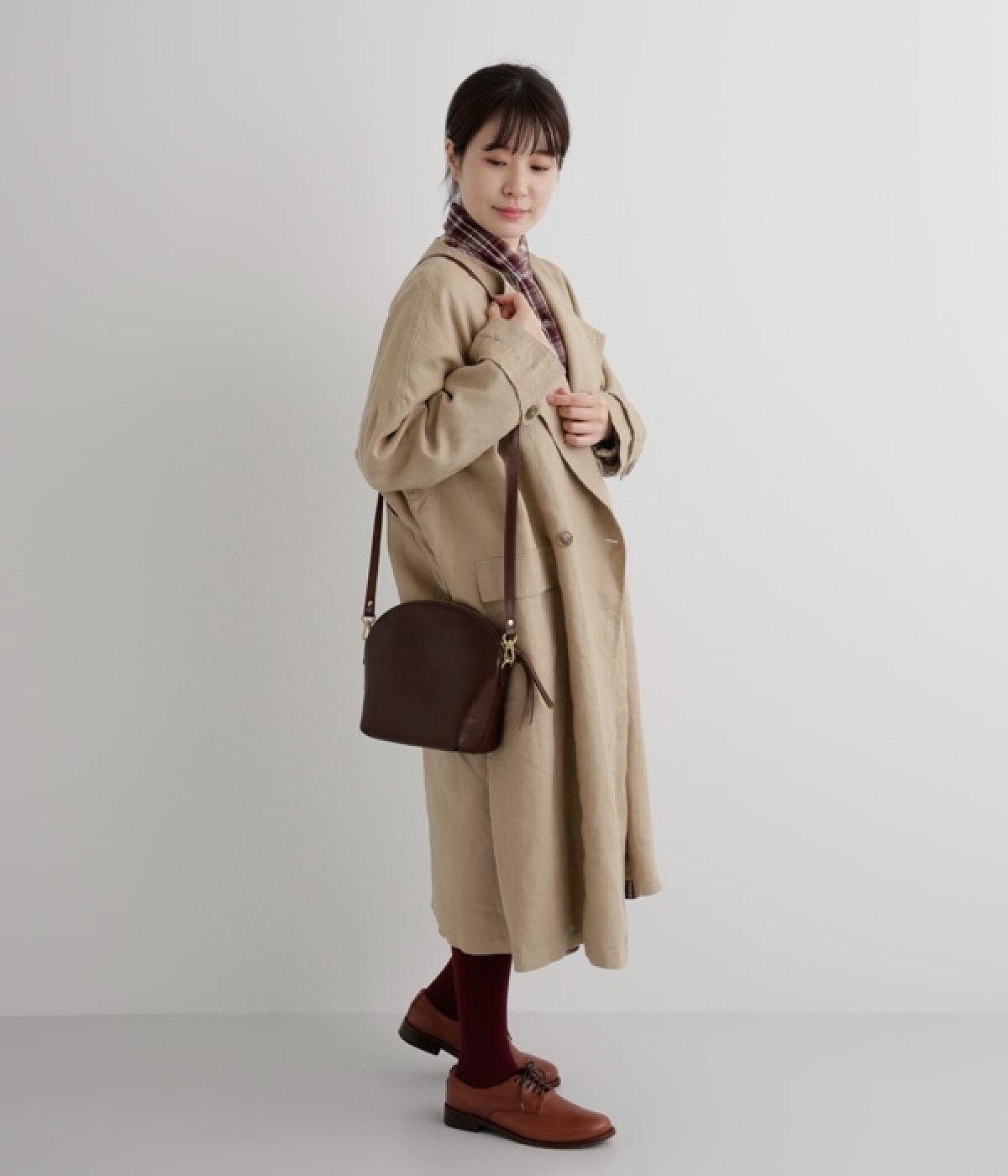 本革とは思えないほど軽いショルダーバッグです。ツヤのあるレザーの風合いが、コーディネートを上品に演出してくれます。すっきりとしたフォルムですが、マチがあるので見た目以上の収納力を確保。口はファスナー開閉で、中の荷物が見えず安心です。ちょっとしたお出かけやサブバッグしてなど、幅広いシーンで活躍します。