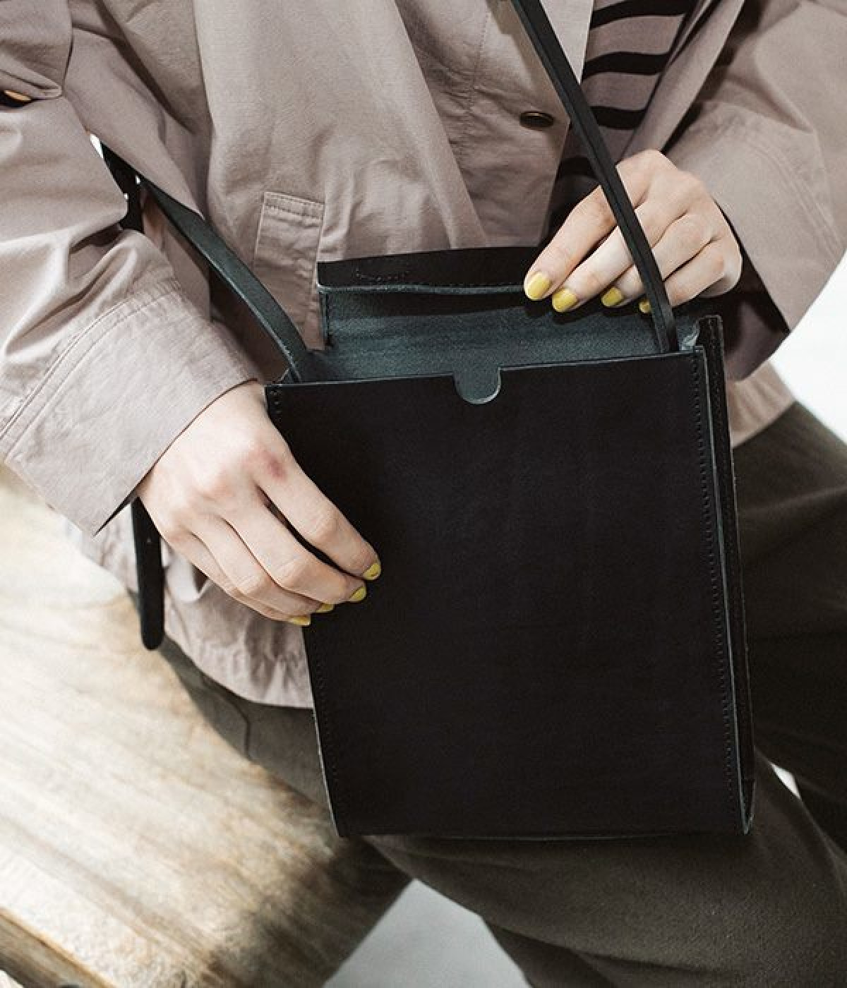 トランプの箱をイメージした口元のデザインがポイントのショルダーバッグです。サイド、底ともにマチがあるので小さめながらも主要荷物は収納でき、ちょっとしたお出かけや荷物が多い日のサブバッグとしても重宝します。マットでハリのあるのレザーの風合いが上品で、デイリー使いからフォーマルシーンまで幅広く対応できます。口元はマグネットボタン仕様。ショルダーベルトは7段階で調節ができます。