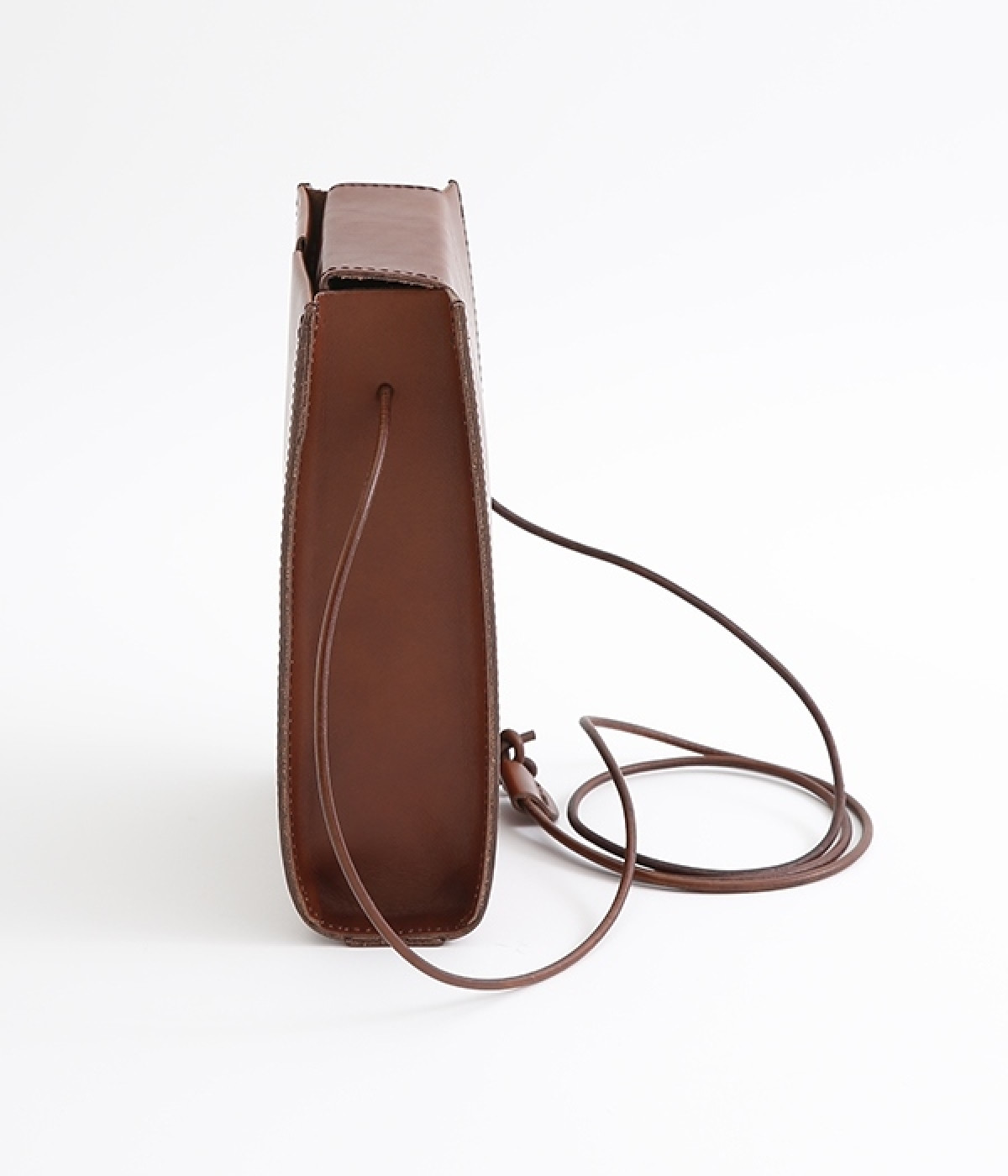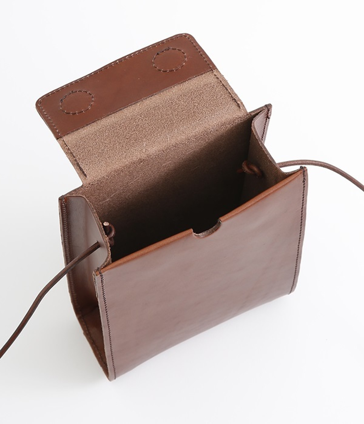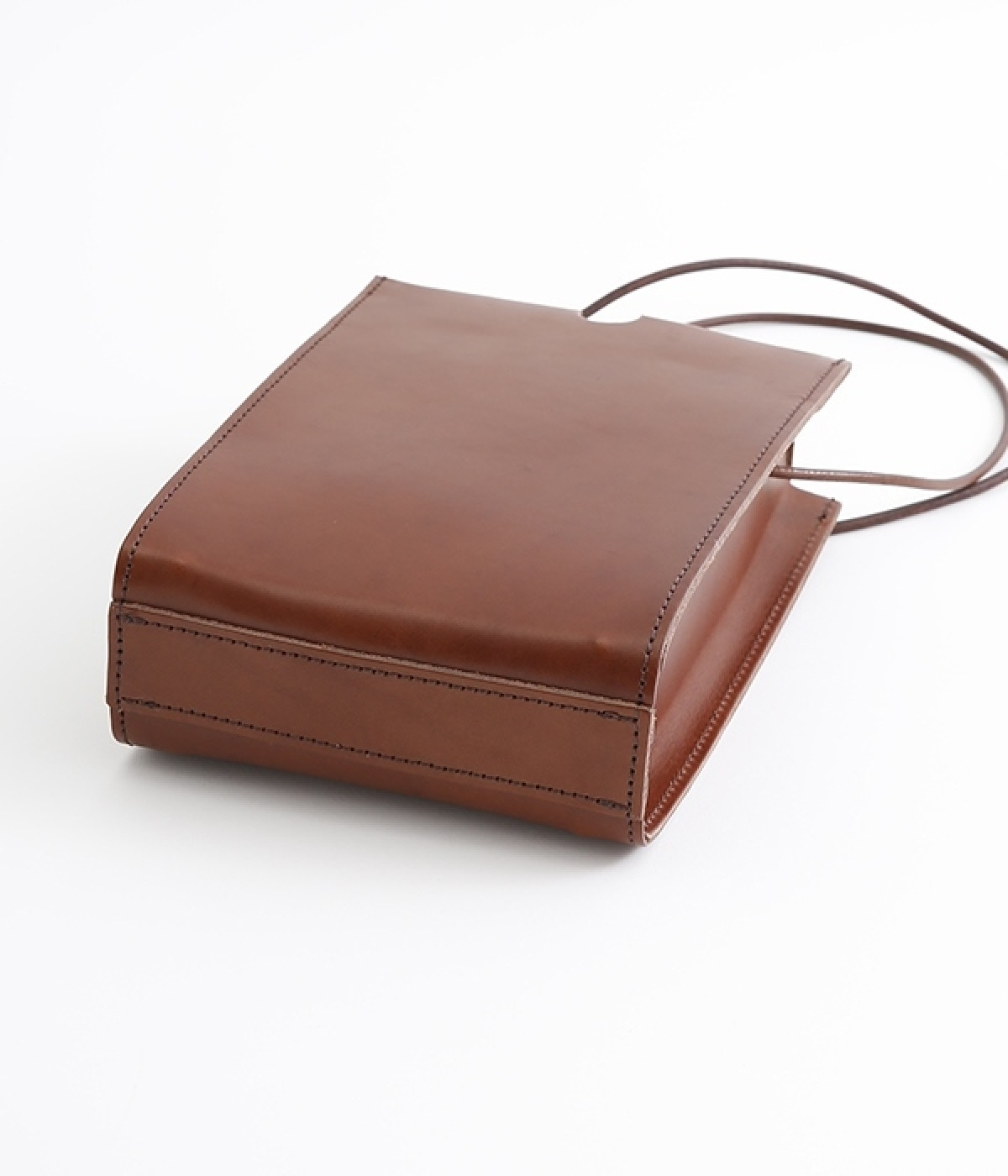 トランプケースをイメージした口元のデザインがポイントのショルダーバッグです。サイド、底ともにマチがあるので小さめながらも主要荷物は収納でき、ちょっとしたお出かけや荷物が多い日のサブバッグとしても重宝します。マットでハリのあるのレザーの風合いが上品で、デイリー使いからフォーマルシーンまで幅広く対応できます。口元は隠しマグネットボタン仕様で開閉もスムーズ。ショルダーベルトは紐を結んで調整できるので自分に合ったサイズにできるのもうれしいポイントです。