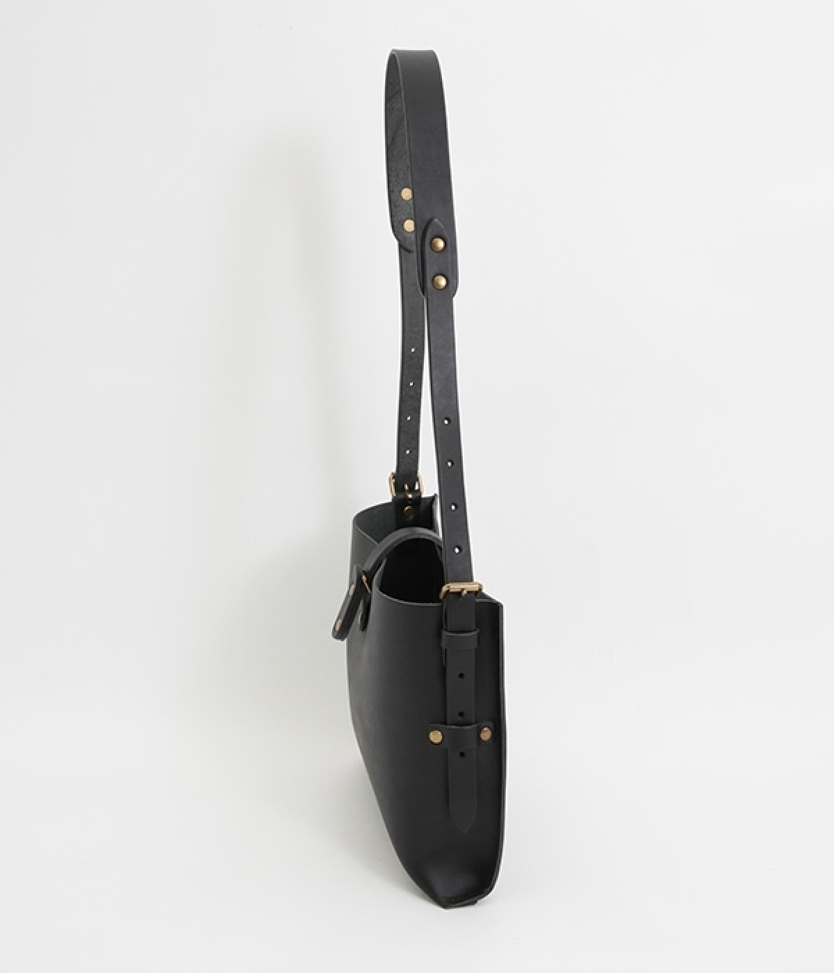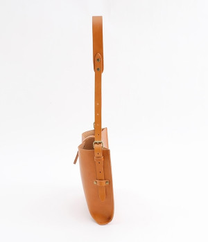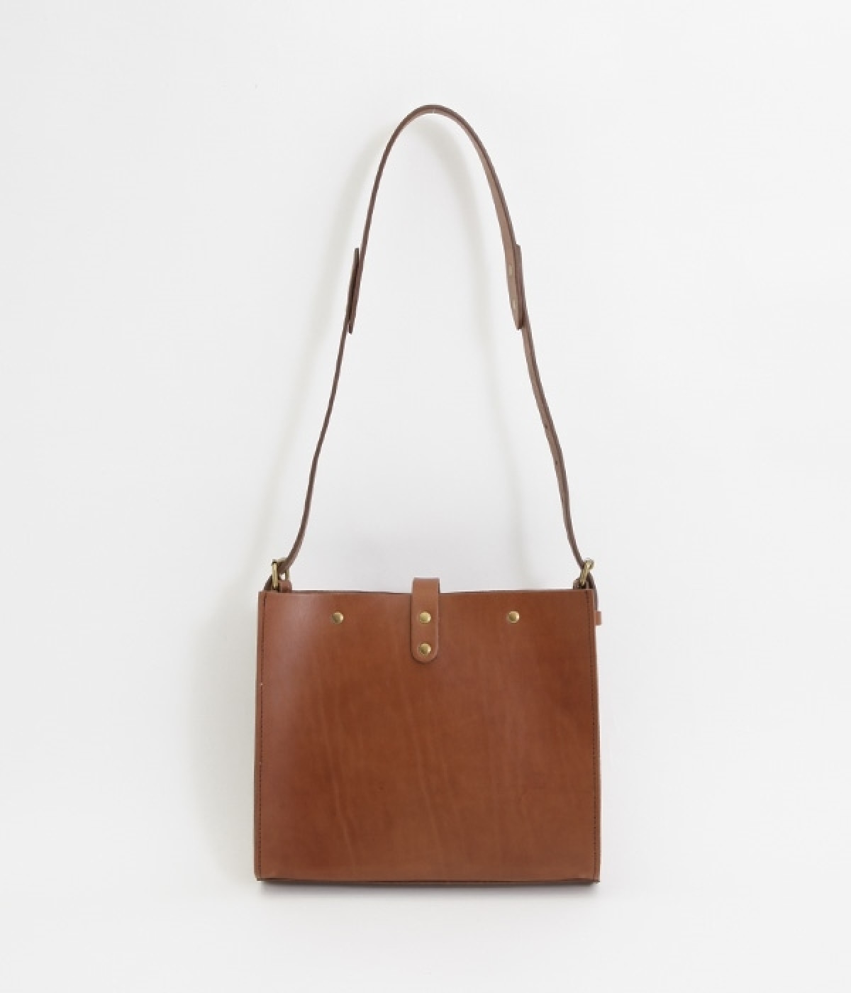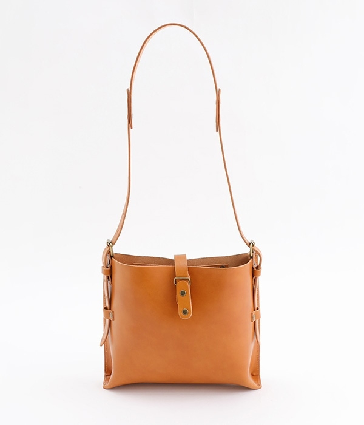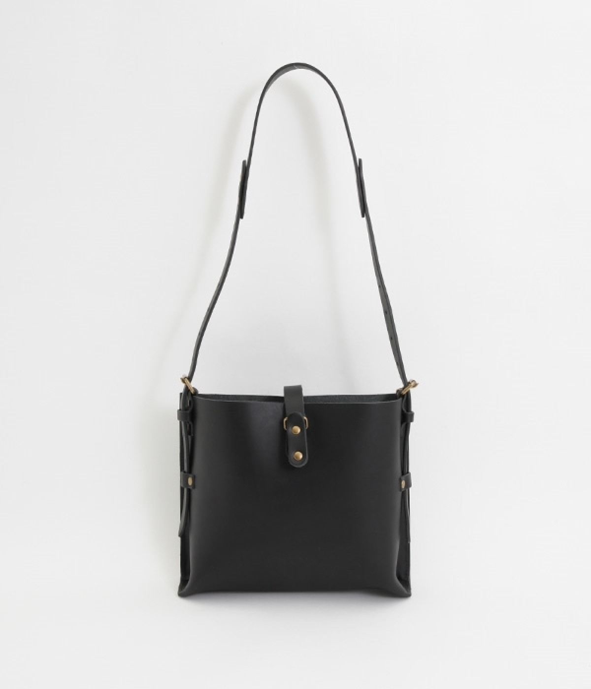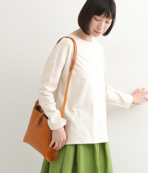 ハリのあるしっかりとしたレザーを使用したショルダーバッグです。しなやかで美しい素材の魅力を引き立てる、すっきりとしたシンプルなデザインが魅力的。開口部の留め具はベルトにレザーを通すタイプで、扱いやすさと洗練された見た目を兼ね備えました。サイドのベルトでショルダーの長さを調節できるのもうれしいポイント。カジュアルにも、きれいめな着こなしにも対応してくれます。