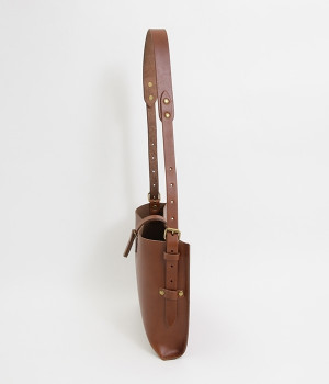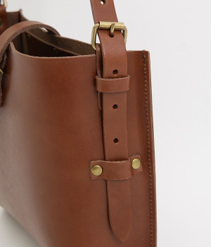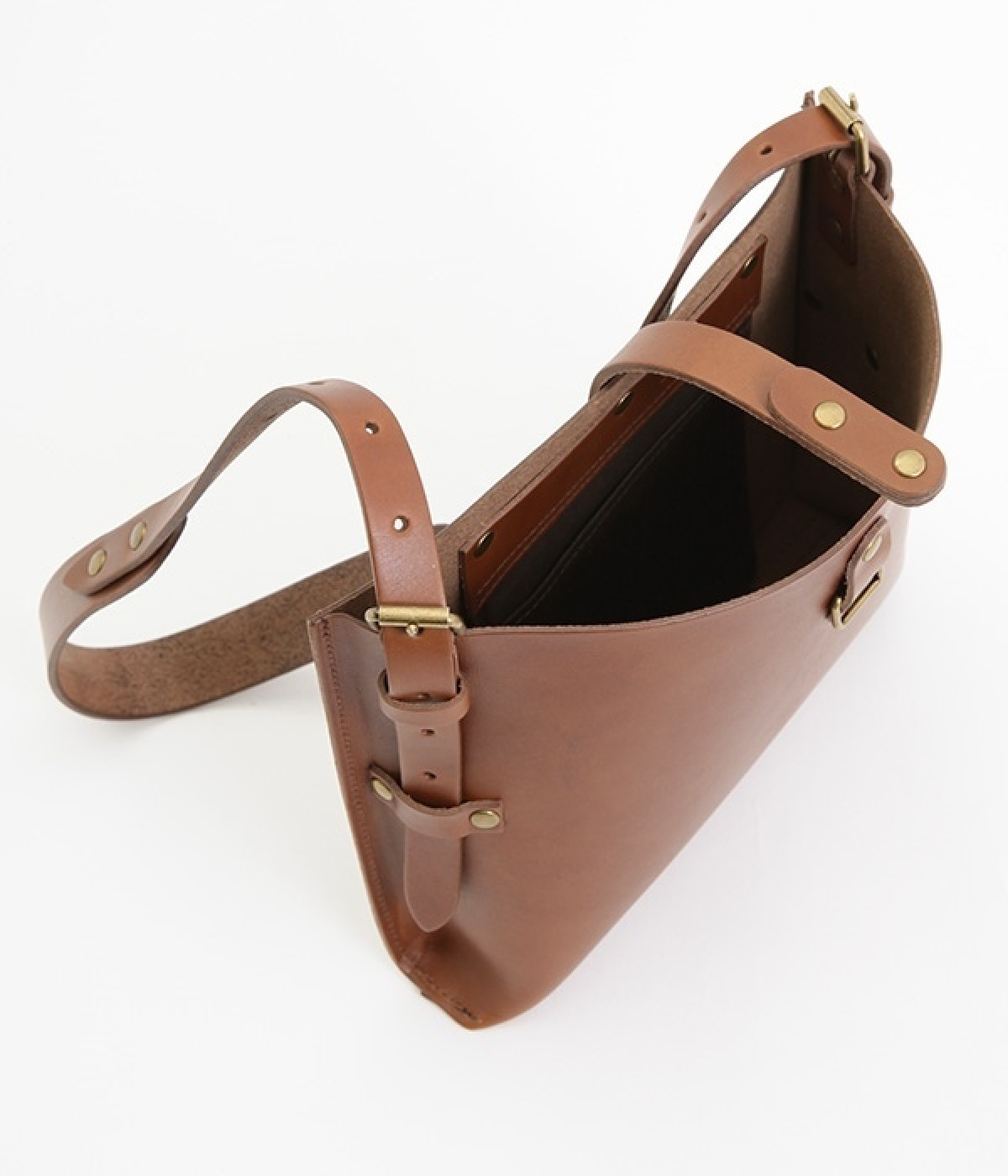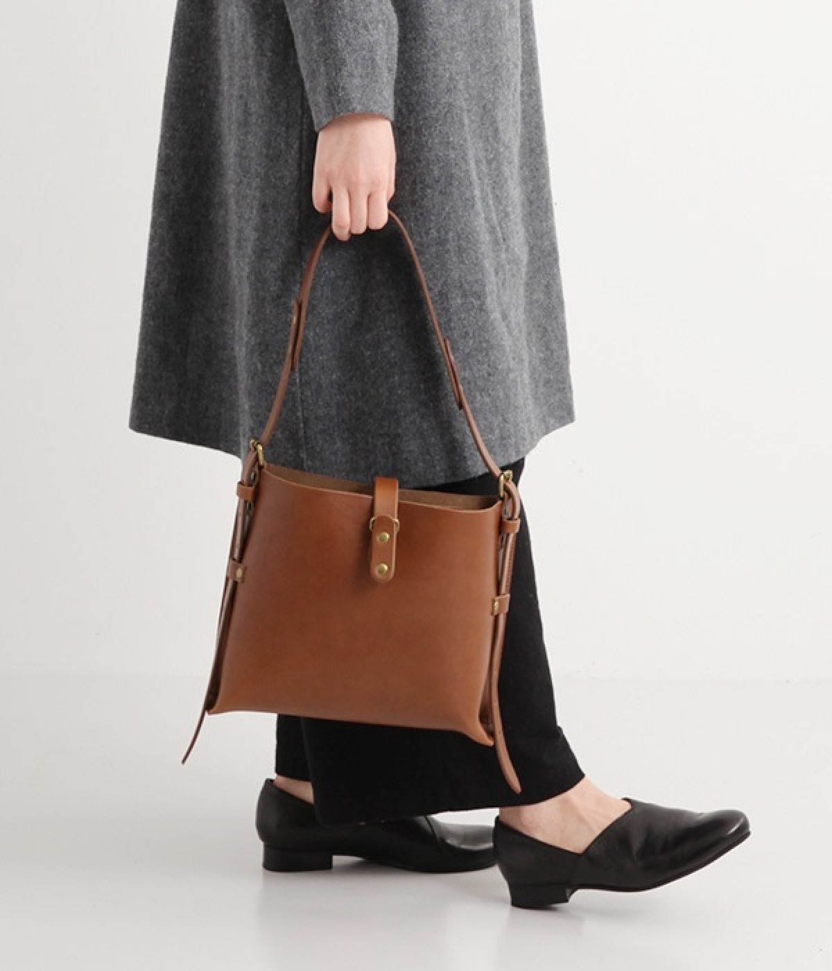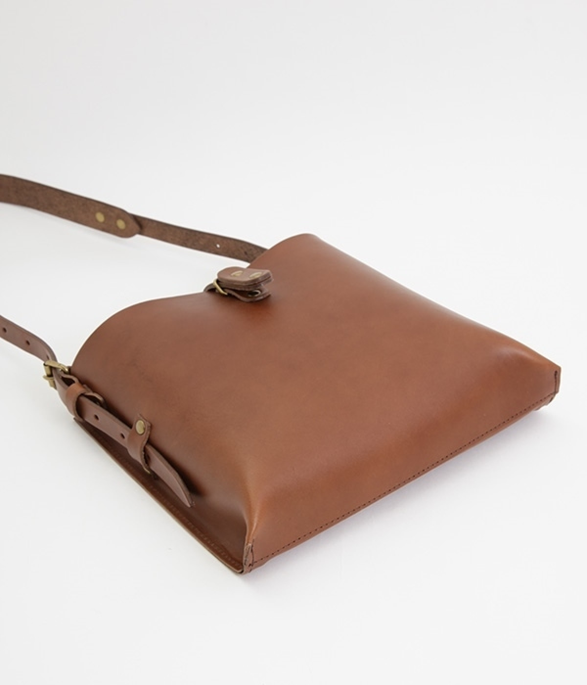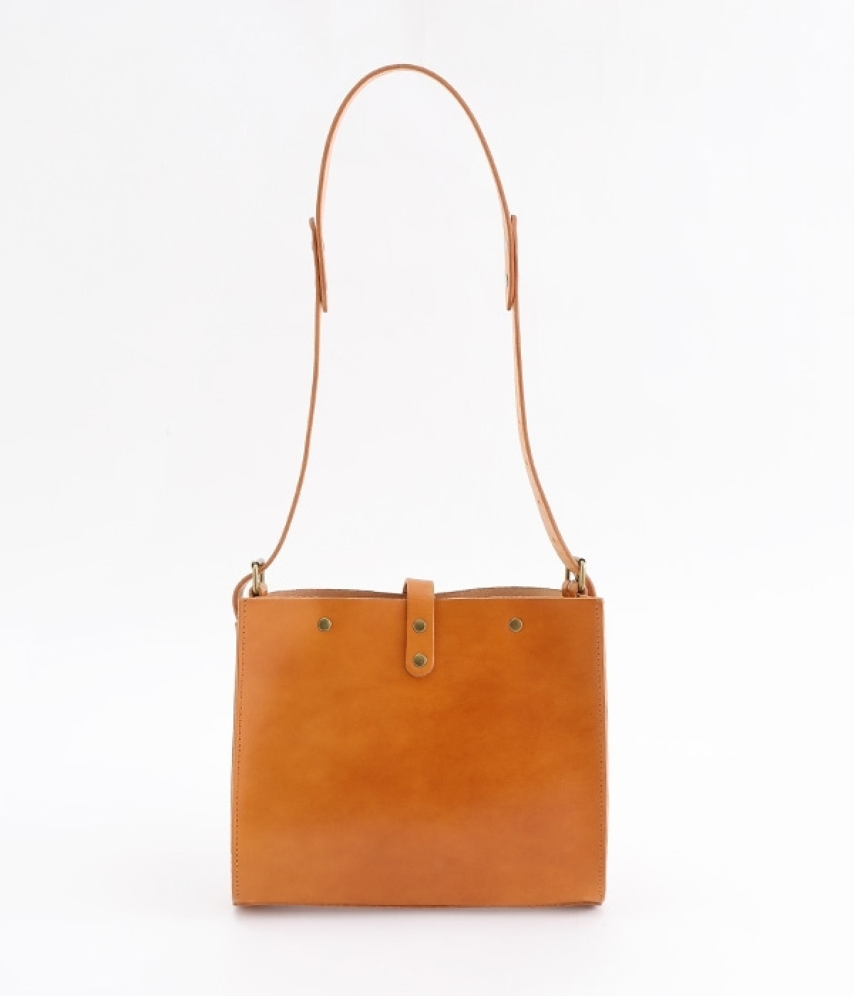 ハリのあるしっかりとしたレザーを使用したショルダーバッグです。しなやかで美しい素材の魅力を引き立てる、すっきりとしたシンプルなデザインが魅力的。開口部の留め具はベルトにレザーを通すタイプで、扱いやすさと洗練された見た目を兼ね備えました。サイドのベルトでショルダーの長さを調節できるのもうれしいポイント。カジュアルにも、きれいめな着こなしにも対応してくれます。