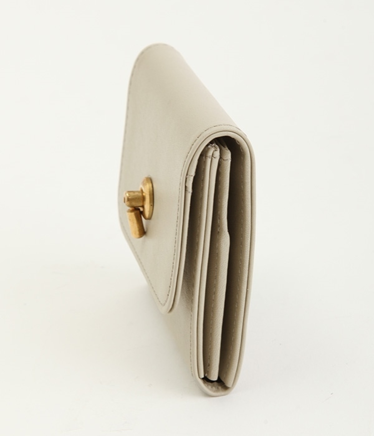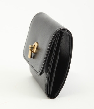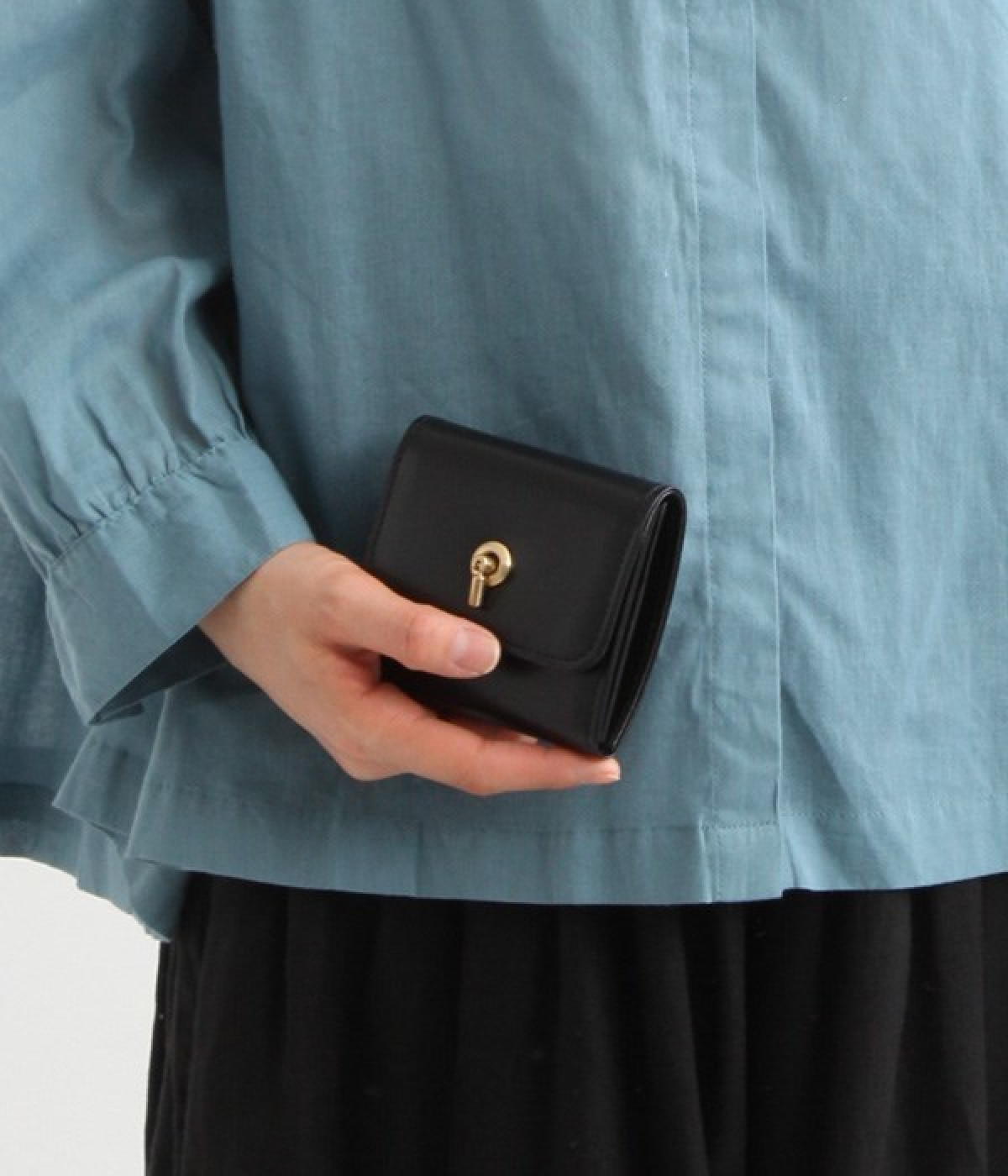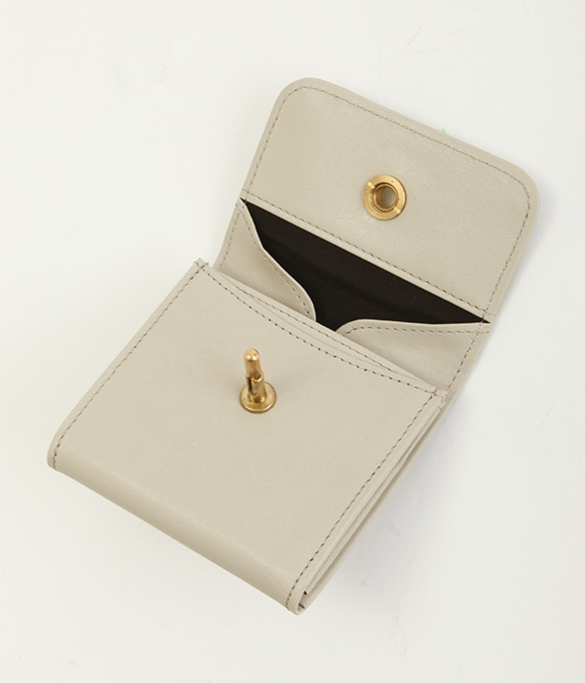 スイッチのような金具が特徴的な容量たっぷりのミニ財布です。スイッチを切り替えるようにパチンと起こして開閉させる金具がポイントで、小銭入れは広く取り出しやすい仕様に。内装のデザイン上、ポケットにカードやお札を入れて、膨らみを作ることでコインのボックススペースを固定する作りになっています。コイン用のボックススペースはコインのみを入れて使用すると雫れ落ちる可能性があるので、他のポケットにカード5枚以上入れて使用するのがおすすめです。