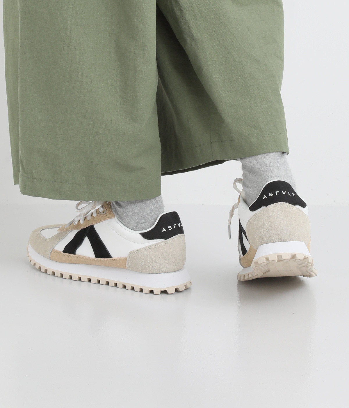 ギザギザとした特徴的なソールが地面からの衝撃を分散し、長時間歩行も疲れにくいスニーカーです。厚みのあるソールがすっきりと見せ、カジュアルすぎずきれいめな印象にまとめてくれます。クラシックなデザインにレトロ感漂うカラーリングも魅力です。
