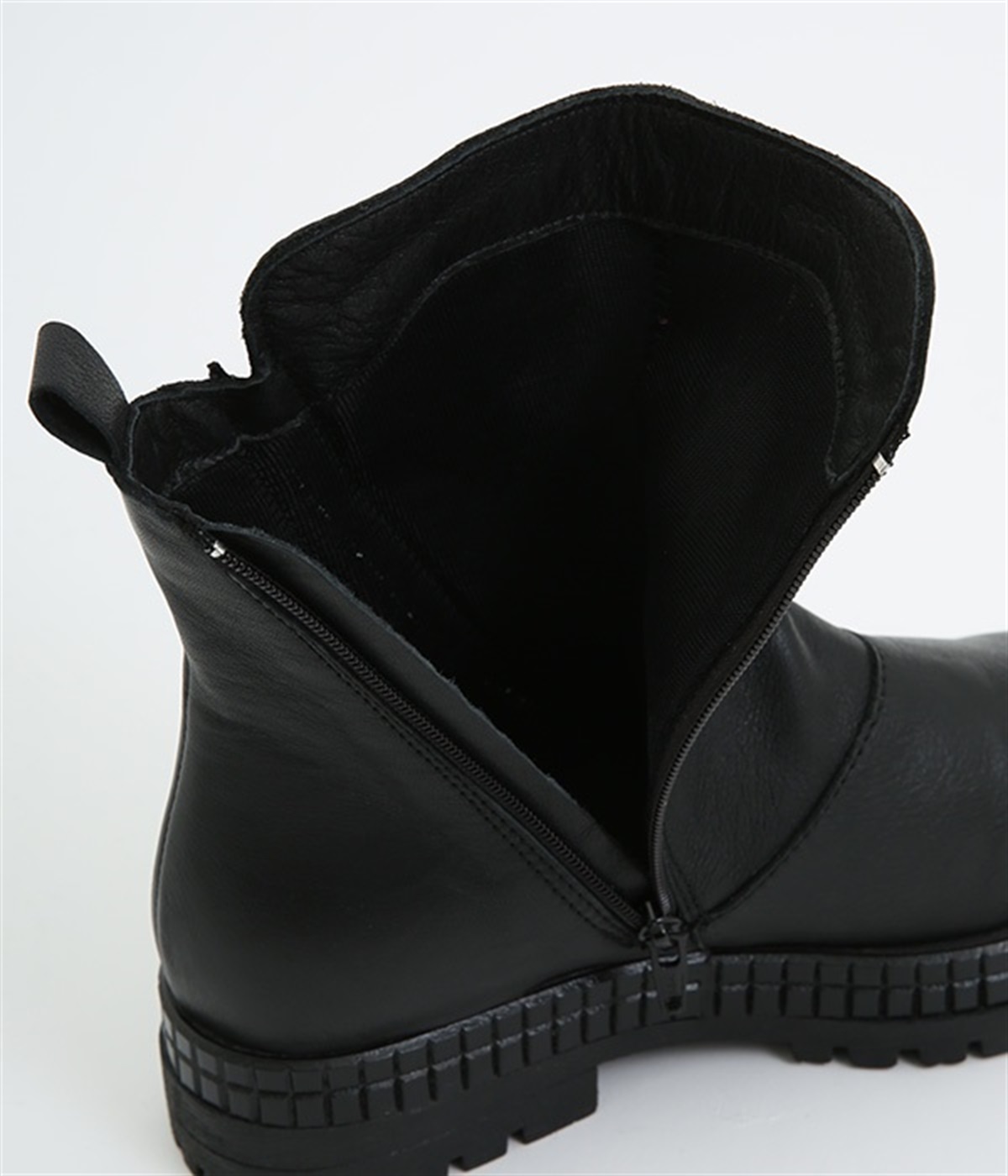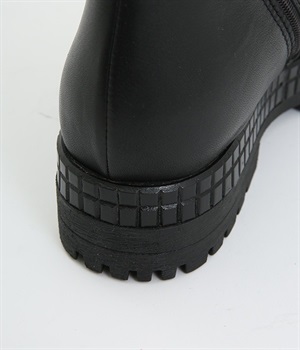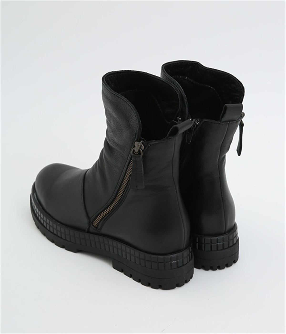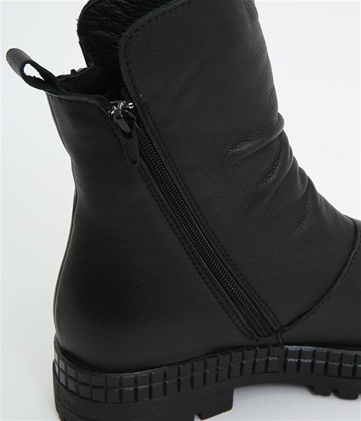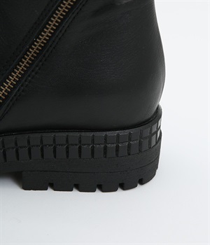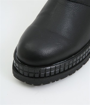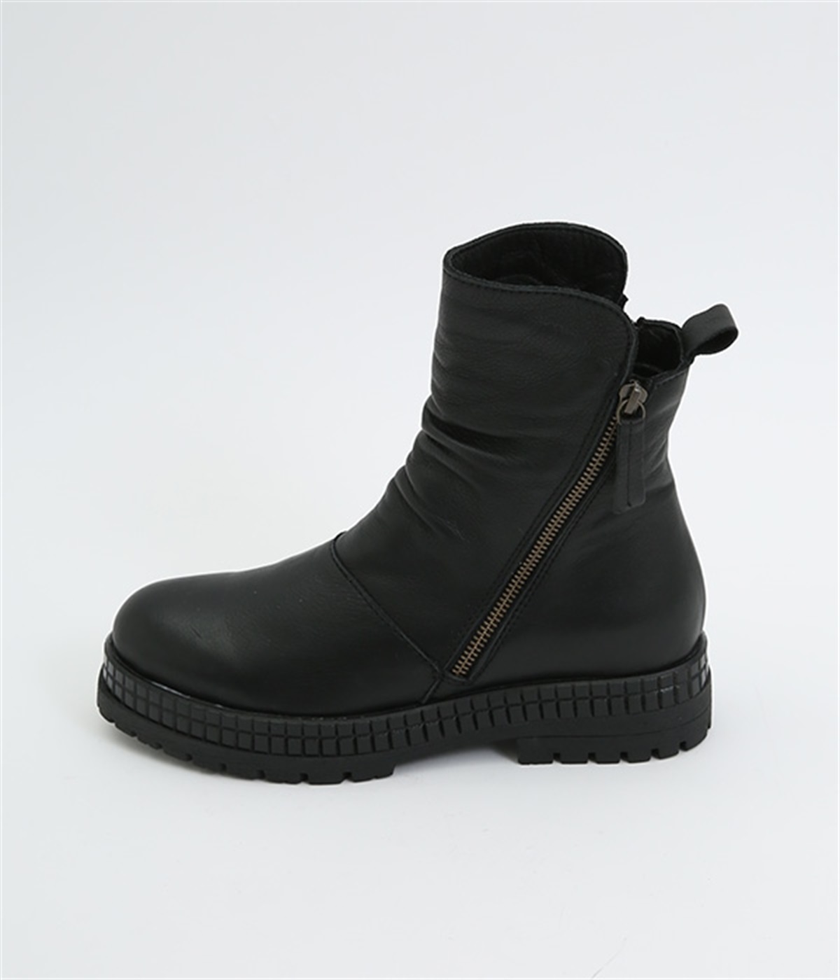 やわらかく品のいい、カウレザー仕立てのミドル丈ブーツです。シャフト部分に斜めに入った飾りジッパーはさりげないアクセント。甲部分から足首にかけてドレープをあしらい、モードな印象に仕上げました。内側ジップ開閉で脱ぎはきも快適。今年らしいやや厚底のゴムソール◎。カジュアルからきれいめまで合わせやすいアイテムです。