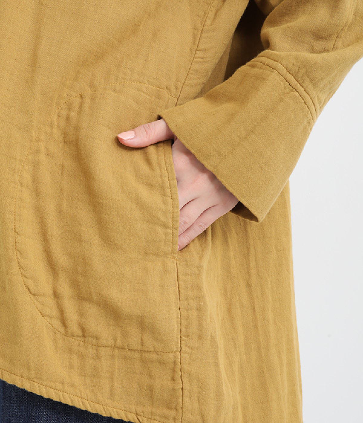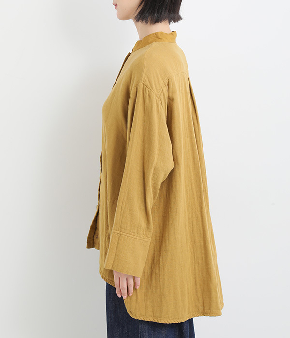 襟部分はブロード生地を使って異素材ミックスに