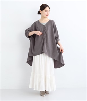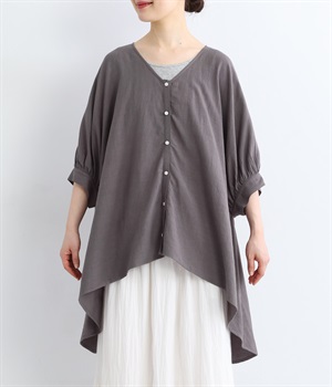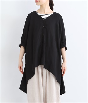 ドルマンスリーブVネック前後差ブラウス