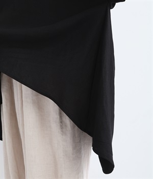 大きな前後差で、後ろ身頃にはたっぷりとフレアを施しました。裾のゆるやかなカーブが、上品な表情を添えてくれます。