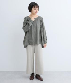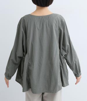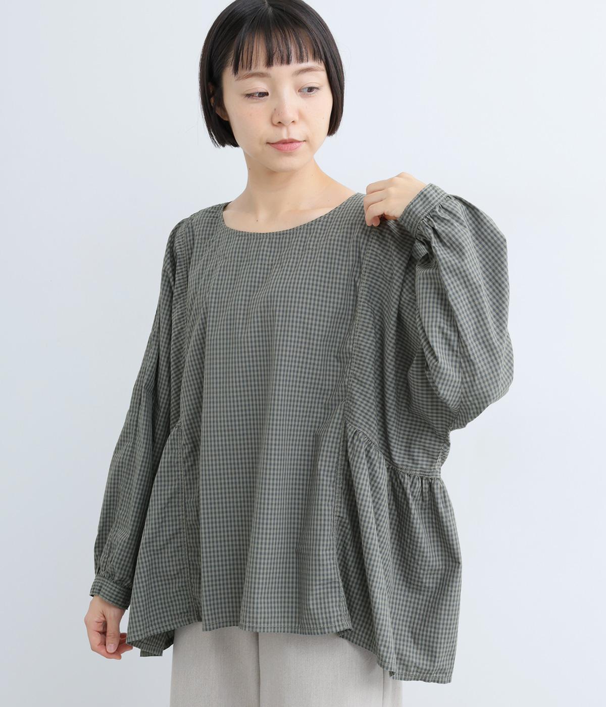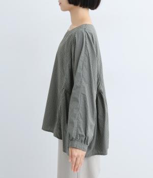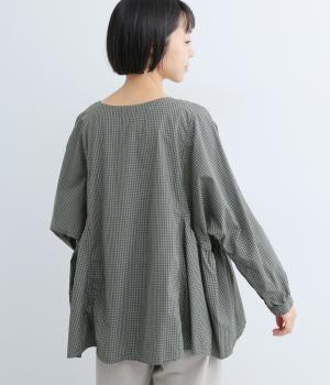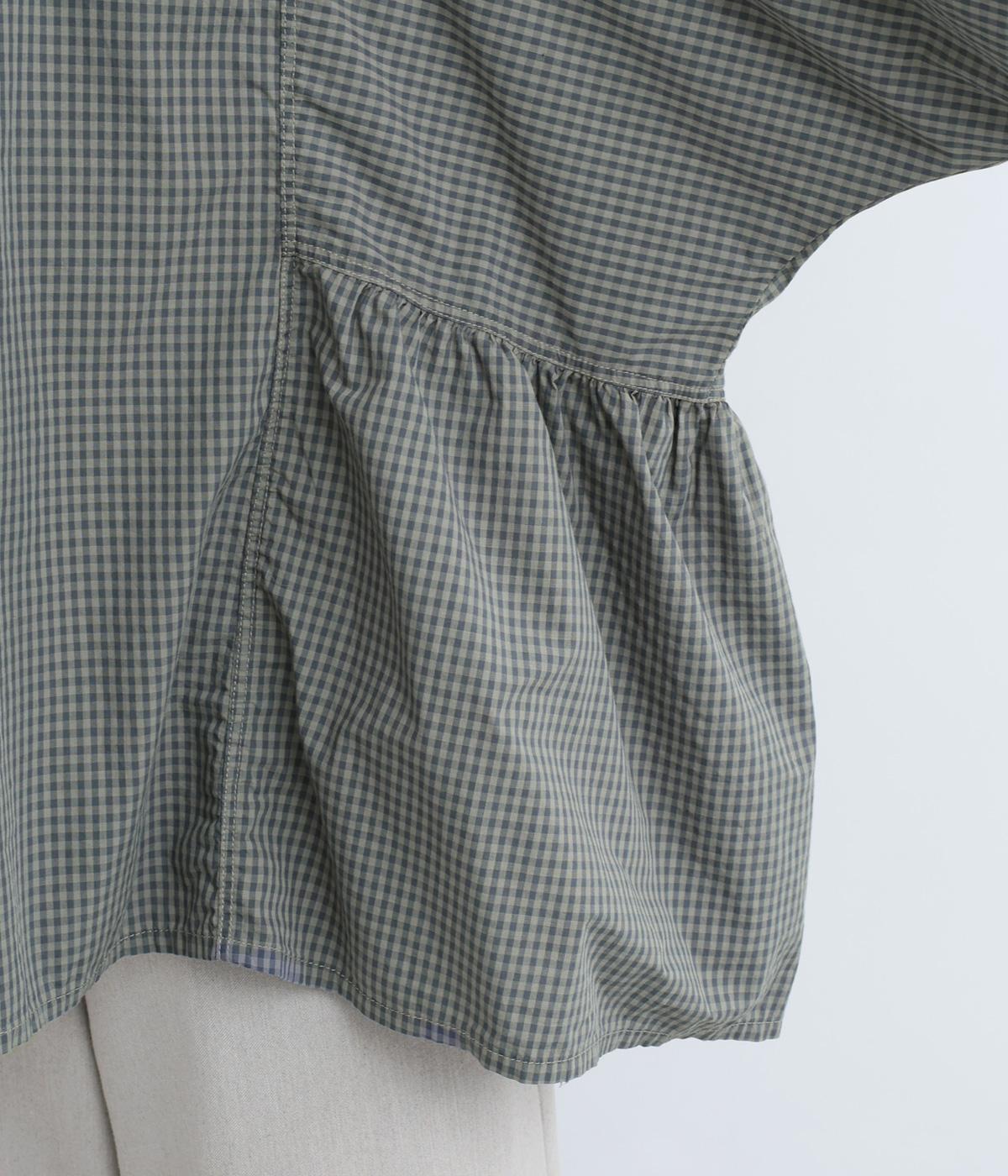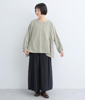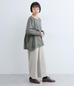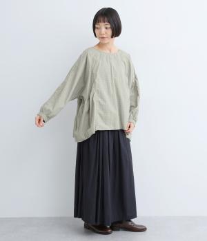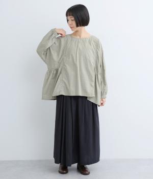 生地の切り替えが美しくリズミカル。裾の動きの軽快さが魅力的です。サイドのギャザーでゆとりのあるシルエットを表現し、体型を選ばず着用できます。サラリとした生地で重ね着もスムーズ。カジュアルにもきれいめにも着こなせる一枚です。