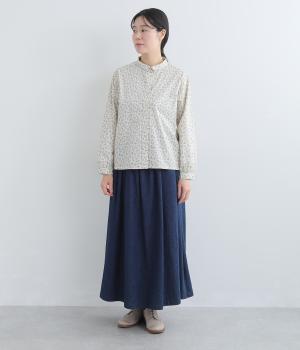 軽くて薄手のコットン生地を使用しています。ほどよいハリ感があり、形をきれいにキープしてくれます。さらりとした手ざわりで、軽やかに着こなせます。