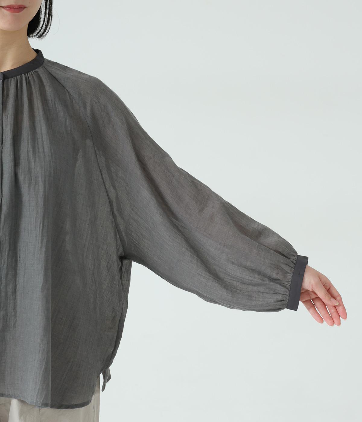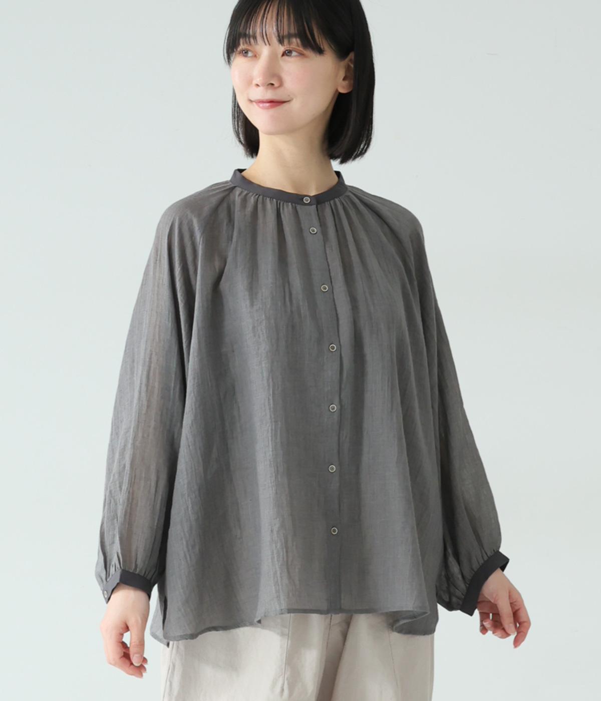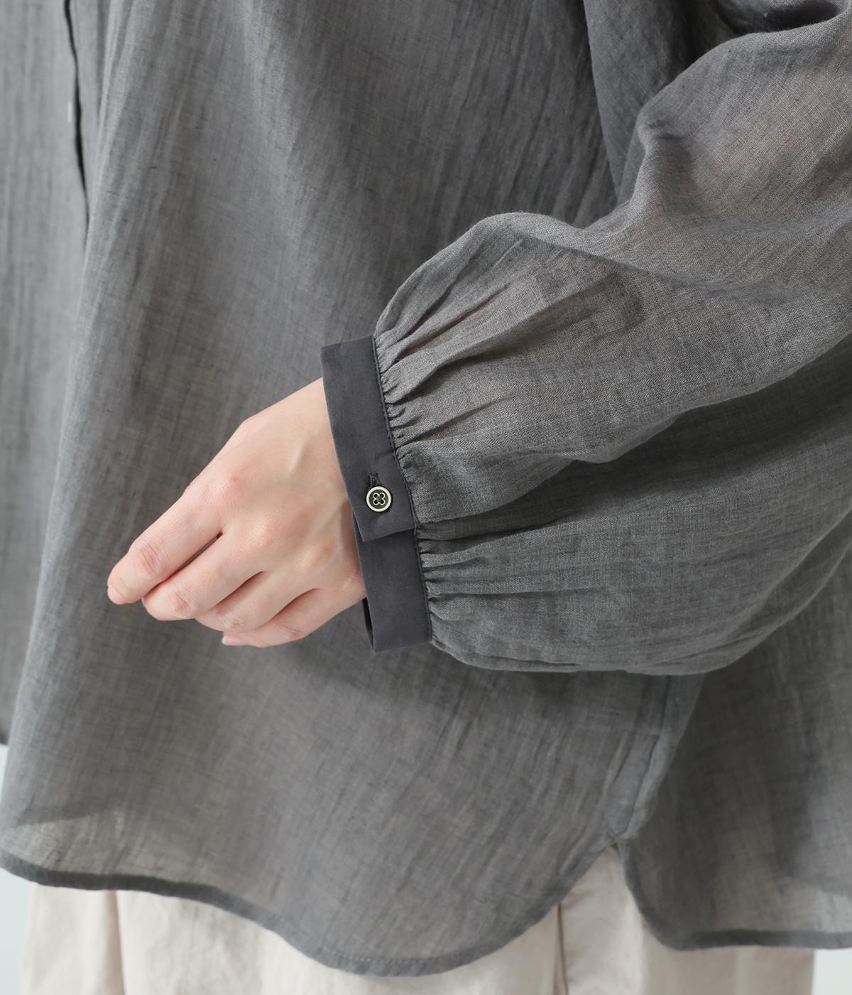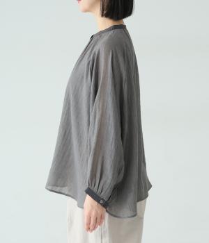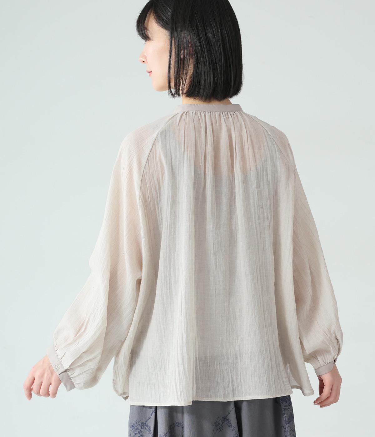 エアリーな着心地でスタイリングに軽やかな華やぎを添えるブラウスです。首元と袖口は同色の布帛を配して、メリハリをつけました。タイトなパンツにもボリュームのあるスカートにも、さまざまなボトムスと好相性です。