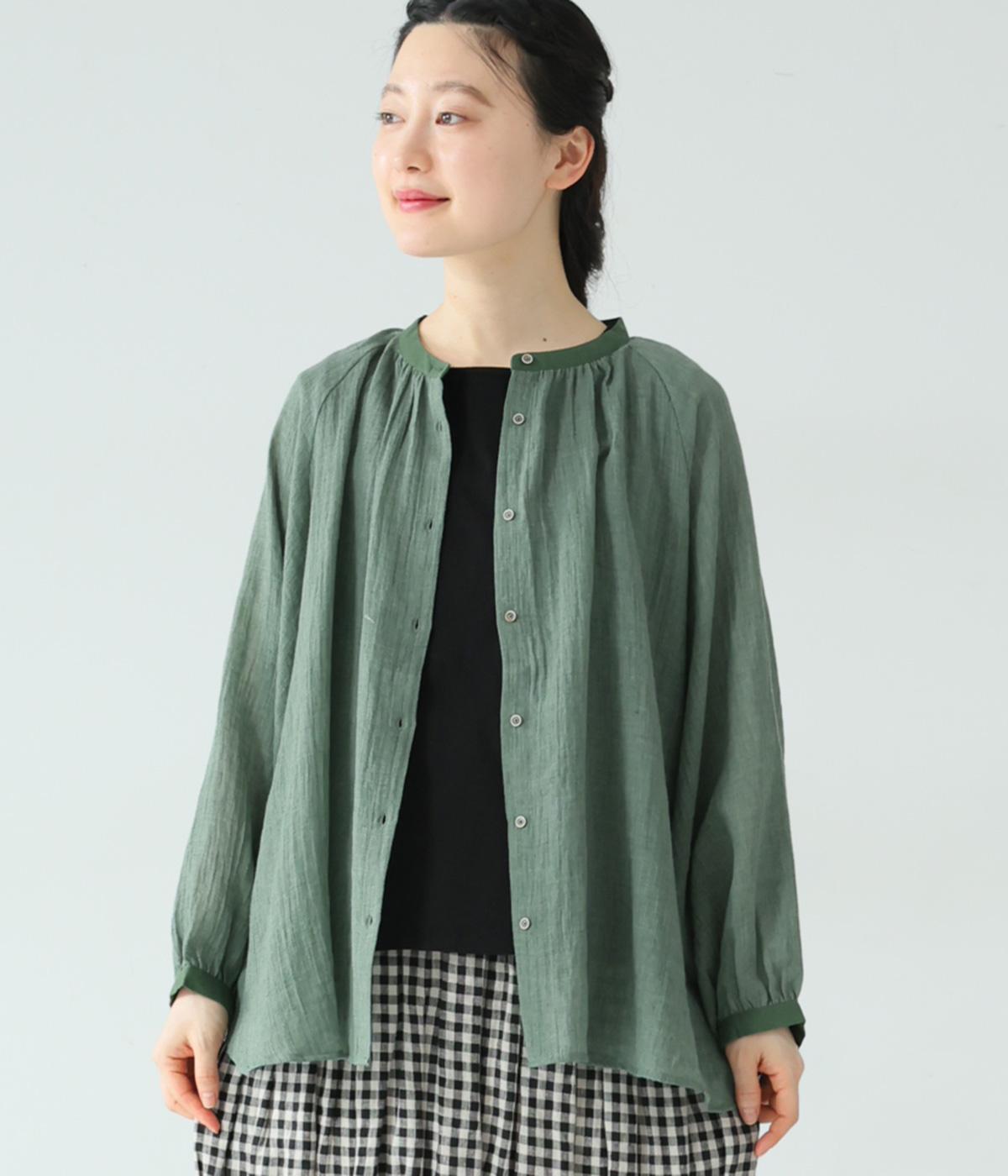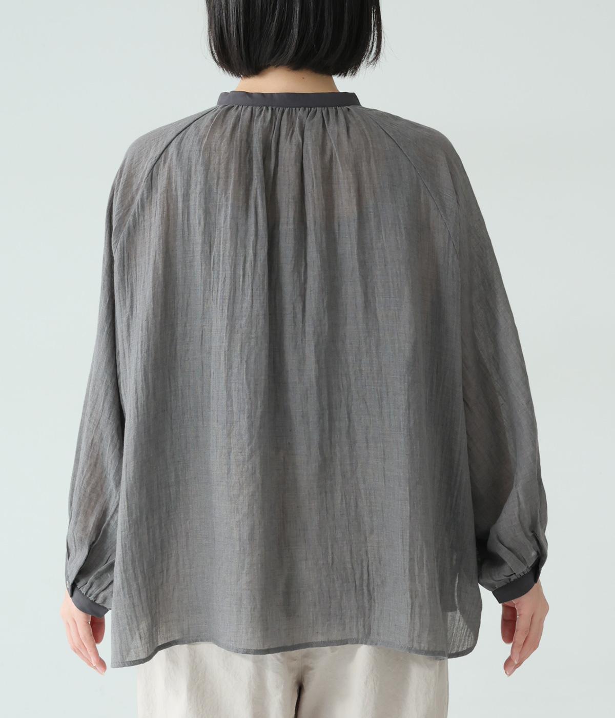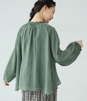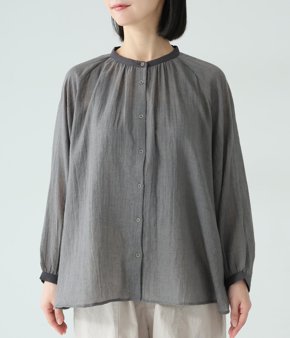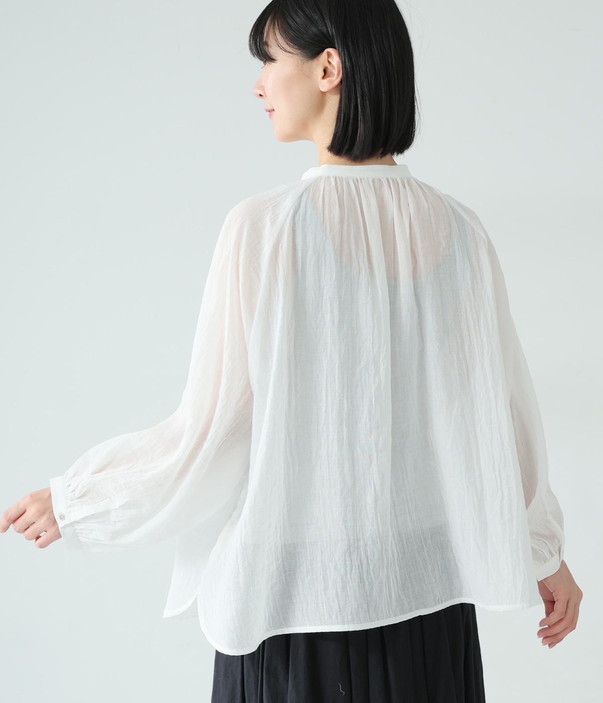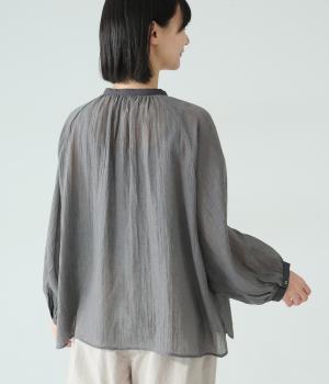 エアリーな着心地でスタイリングに軽やかな華やぎを添えるブラウスです。首元と袖口は同色の布帛を配して、メリハリをつけました。タイトなパンツにもボリュームのあるスカートにも、さまざまなボトムスと好相性です。