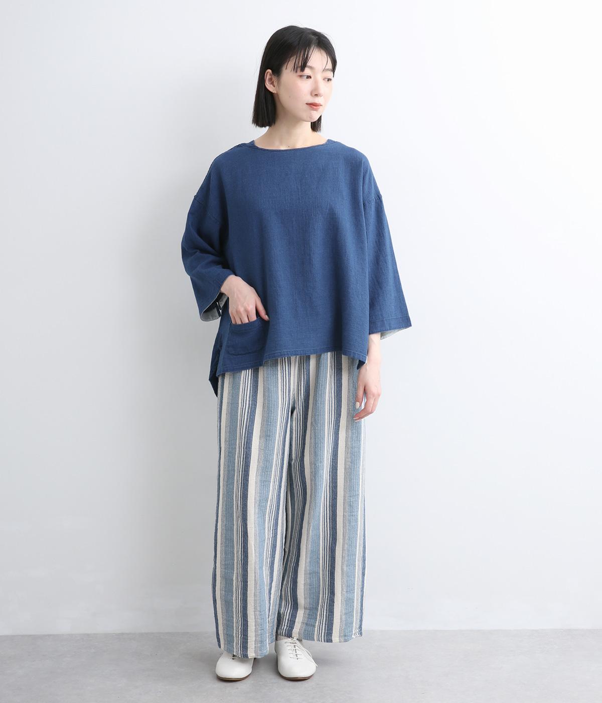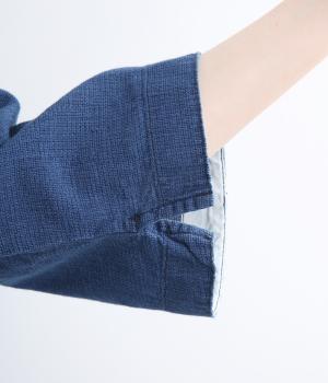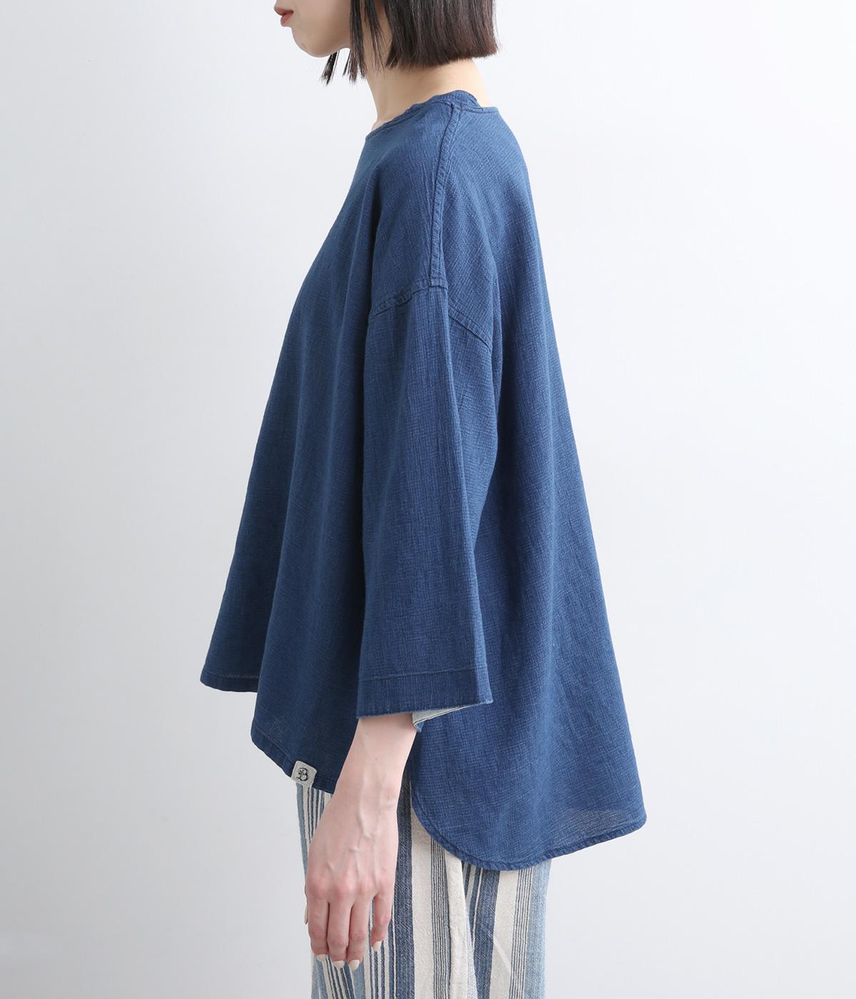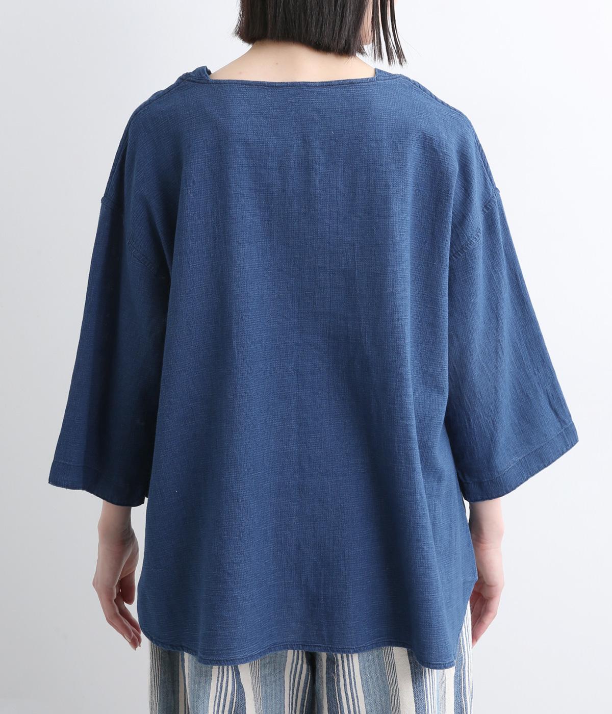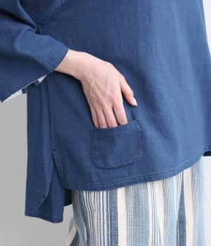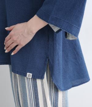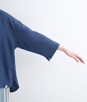 ゆったりとした着心地のよさとすっきり見えを両立させたバトーシャツ。インディゴ染め特有の雰囲気のいい風合いが魅力で、袖口は折り返して裏布をワンポイントに見せるのがおすすめ。後ろ着丈を長くしているのでラフなボトム合わせもサマになります。