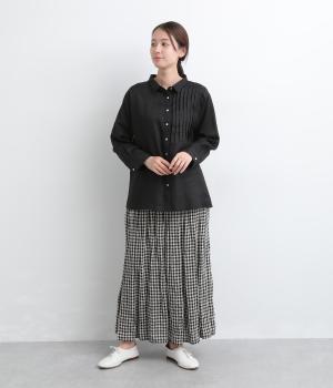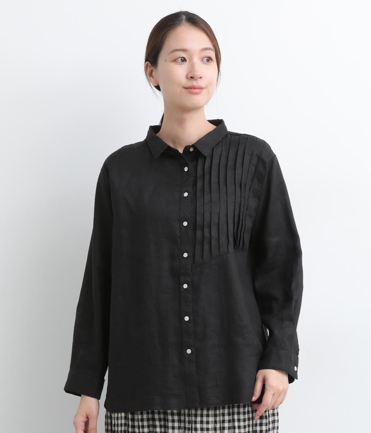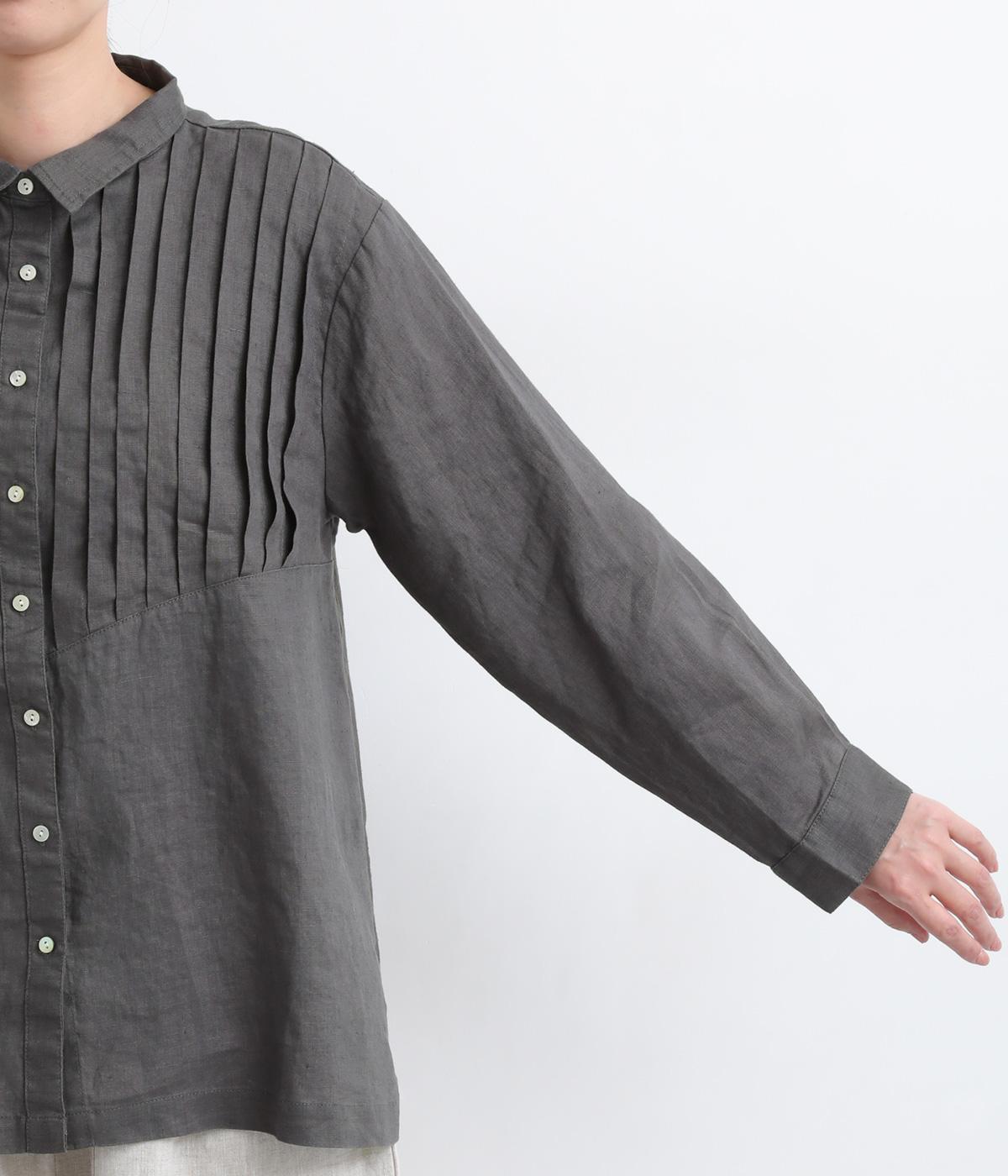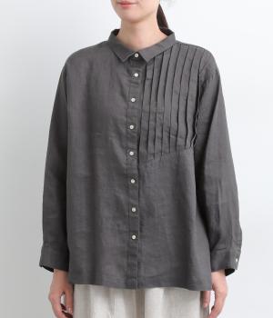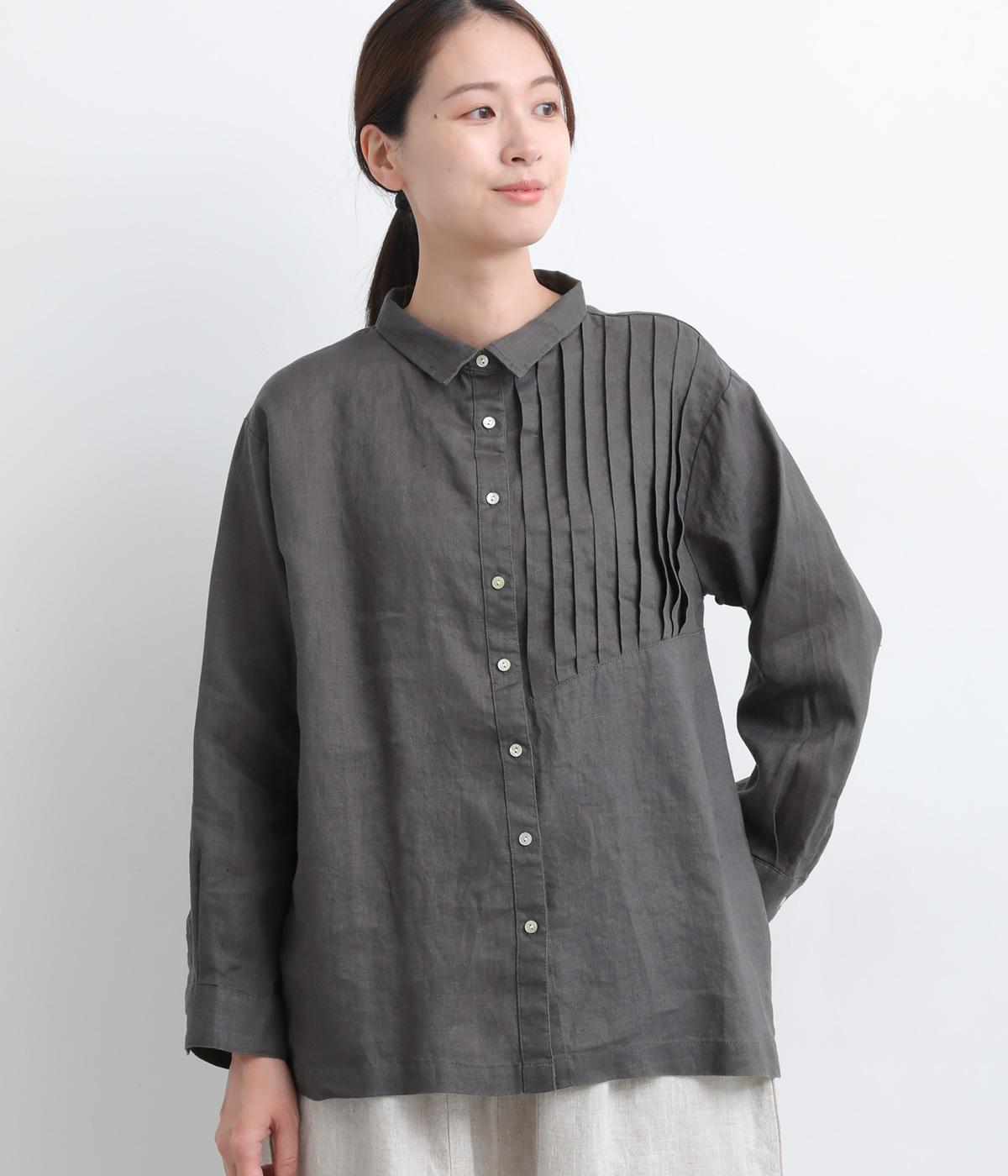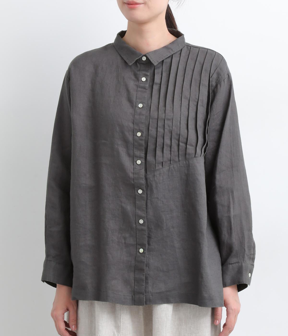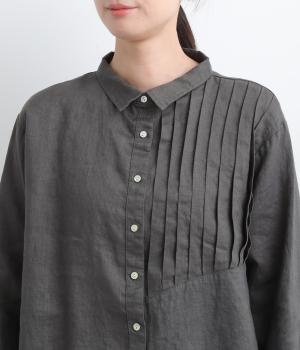 片側に切り替えやタックを入れたアシンメトリーなデザインが目を惹く一枚。ややゆとりのあるベーシックなシルエットに個性を加え、ひと味ちがった大人のシャツスタイルを叶えます。襟やカフスのきちんと感も◎。