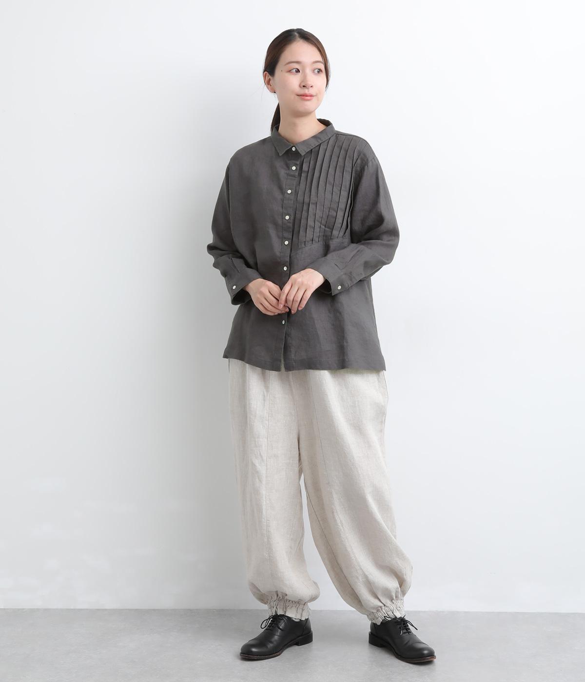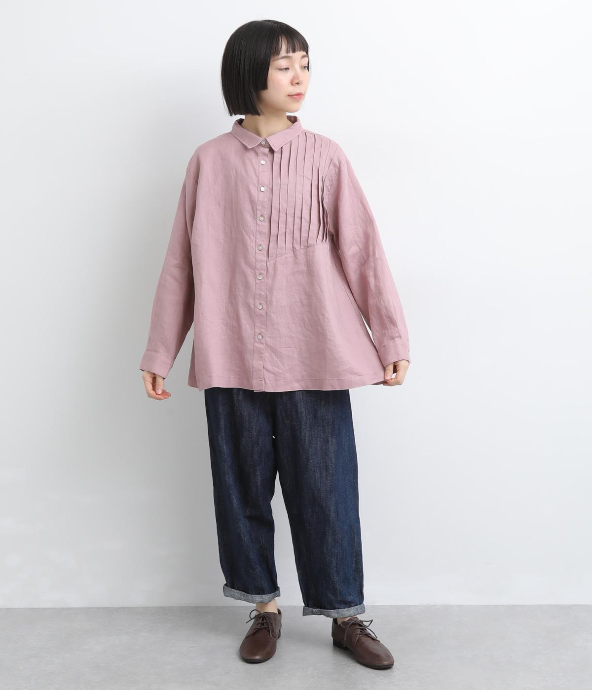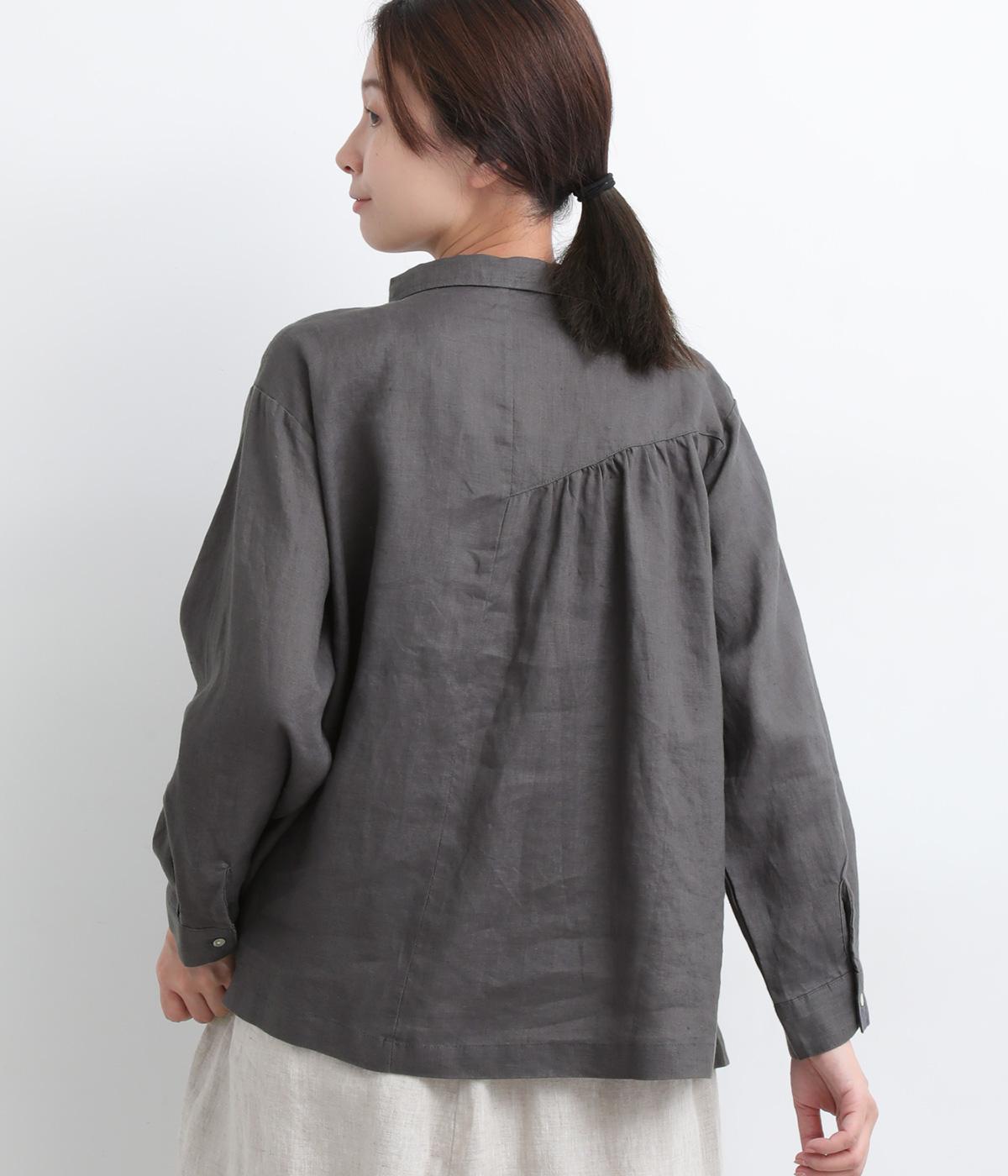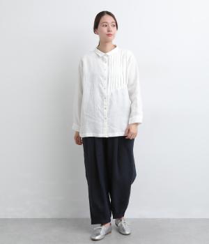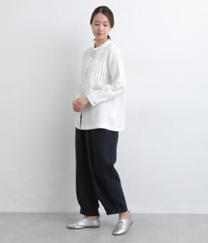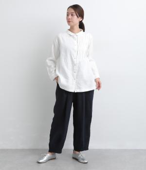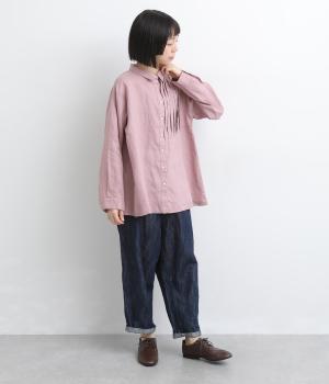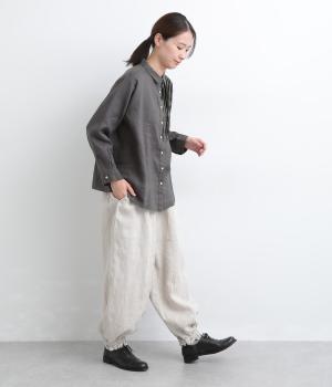 薄手でやわらかくもリネン特有のざっくりとした風合いや適度なコシが感じられ、着心地の良さを運びます。シワも表情の一部となった、アイロン要らずな素材です。