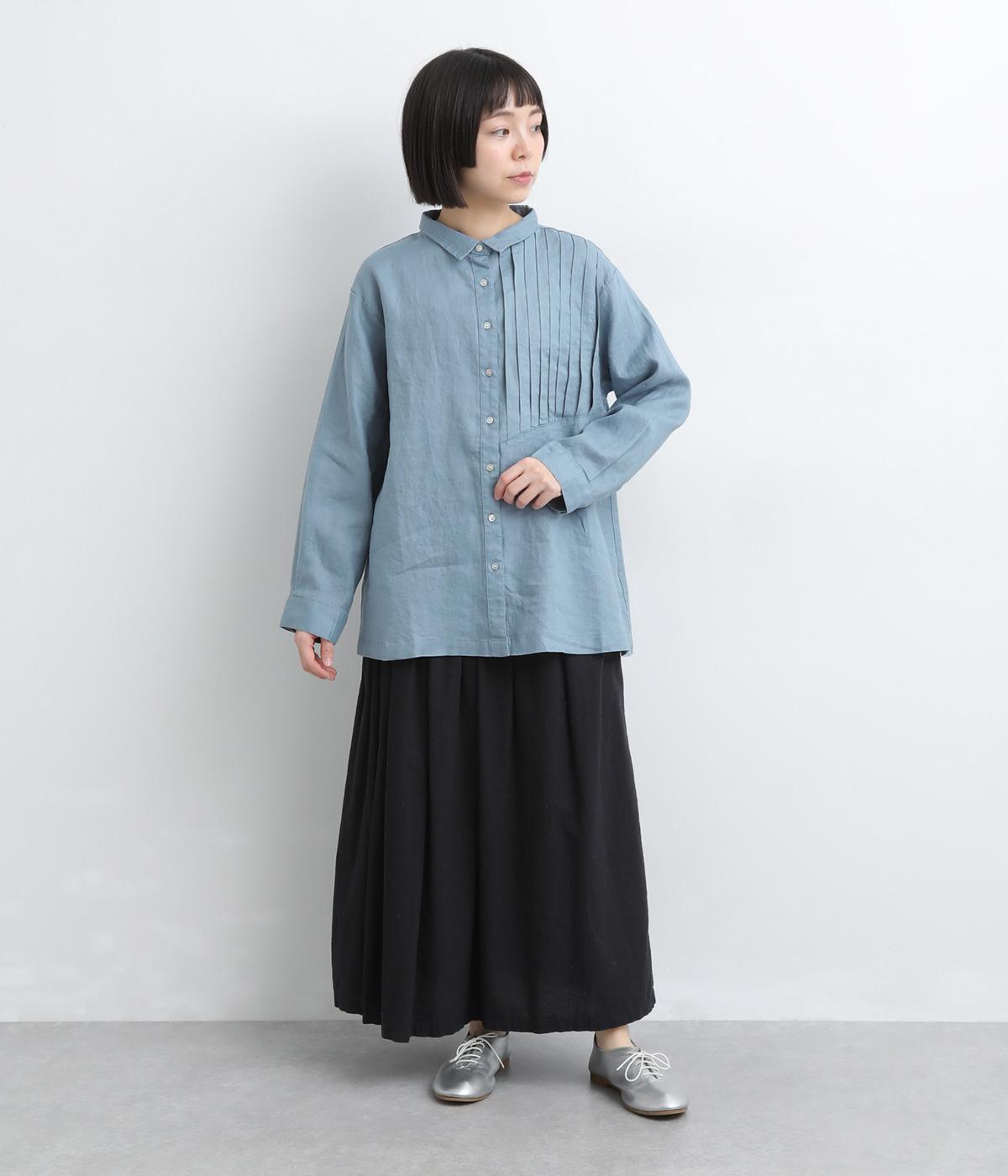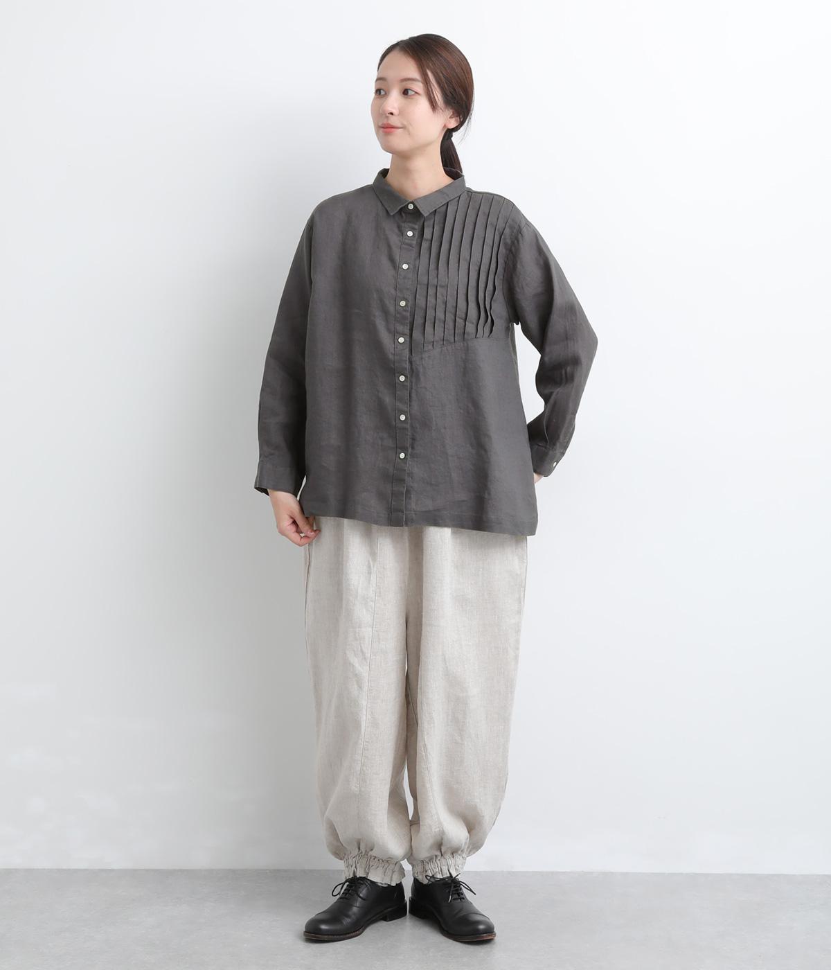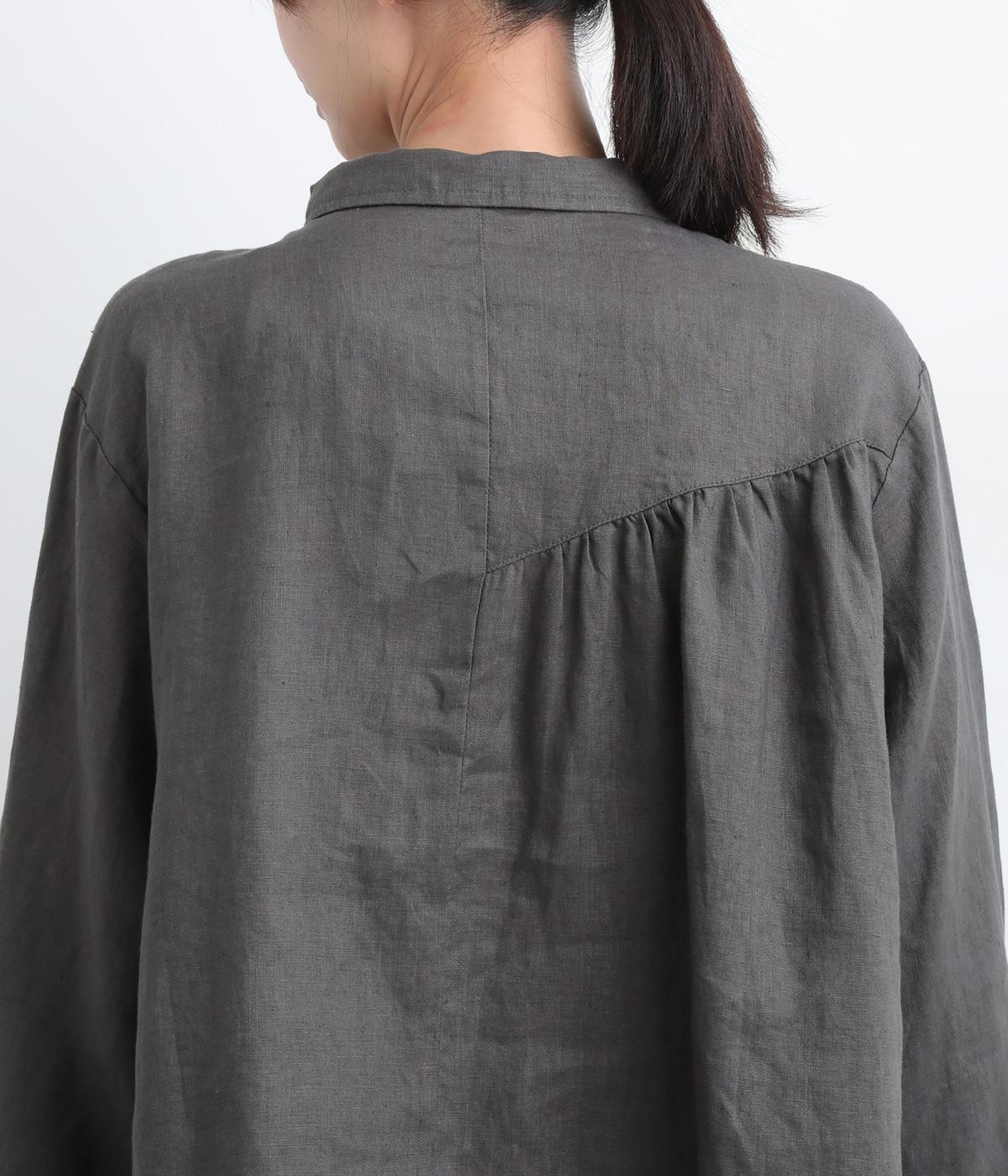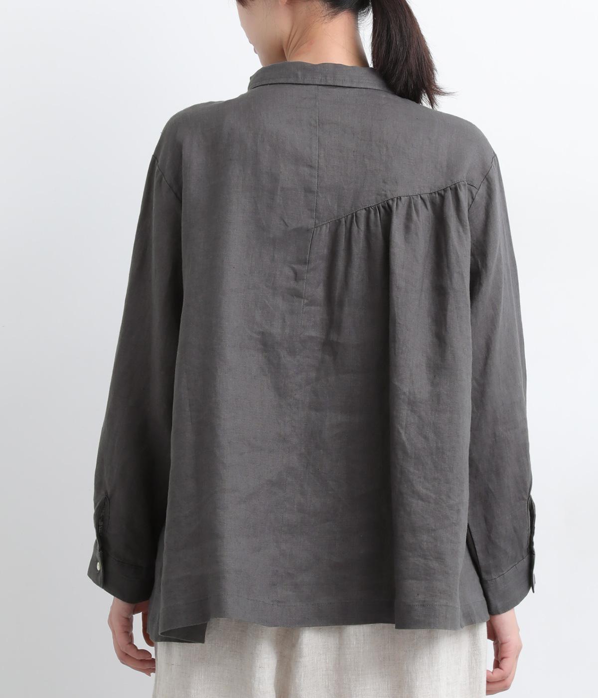 薄手でやわらかくもリネン特有のざっくりとした風合いや適度なコシが感じられ、着心地の良さを運びます。シワも表情の一部となった、アイロン要らずな素材です。