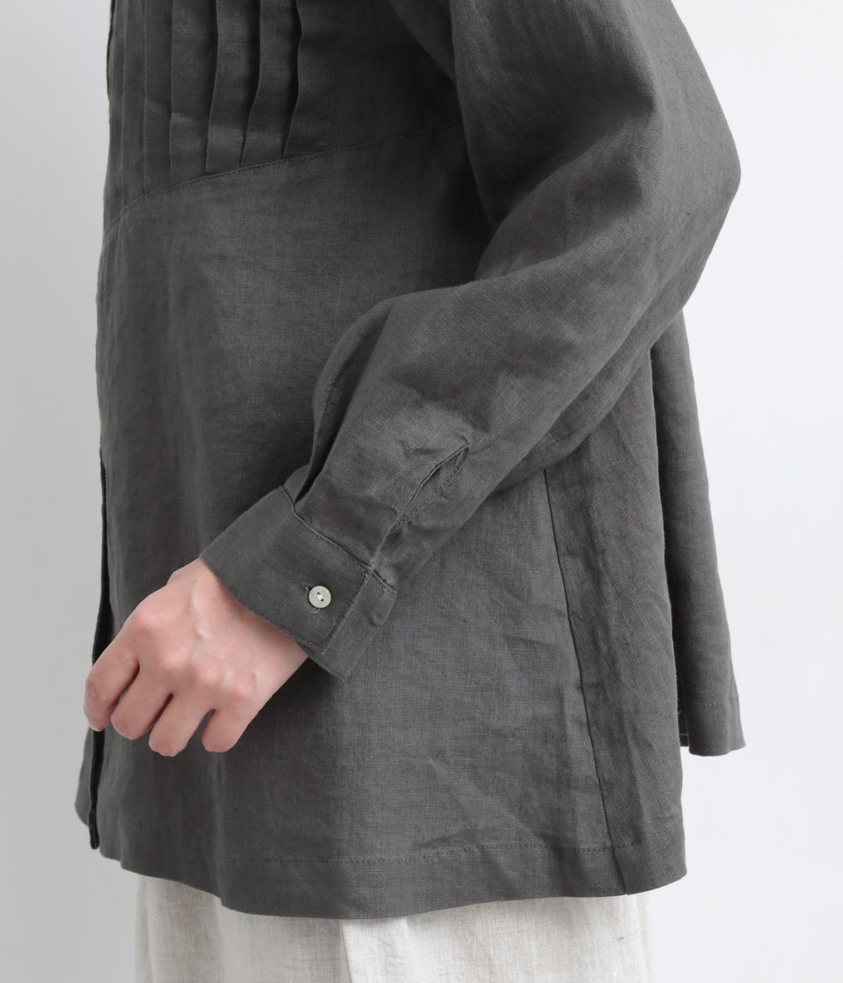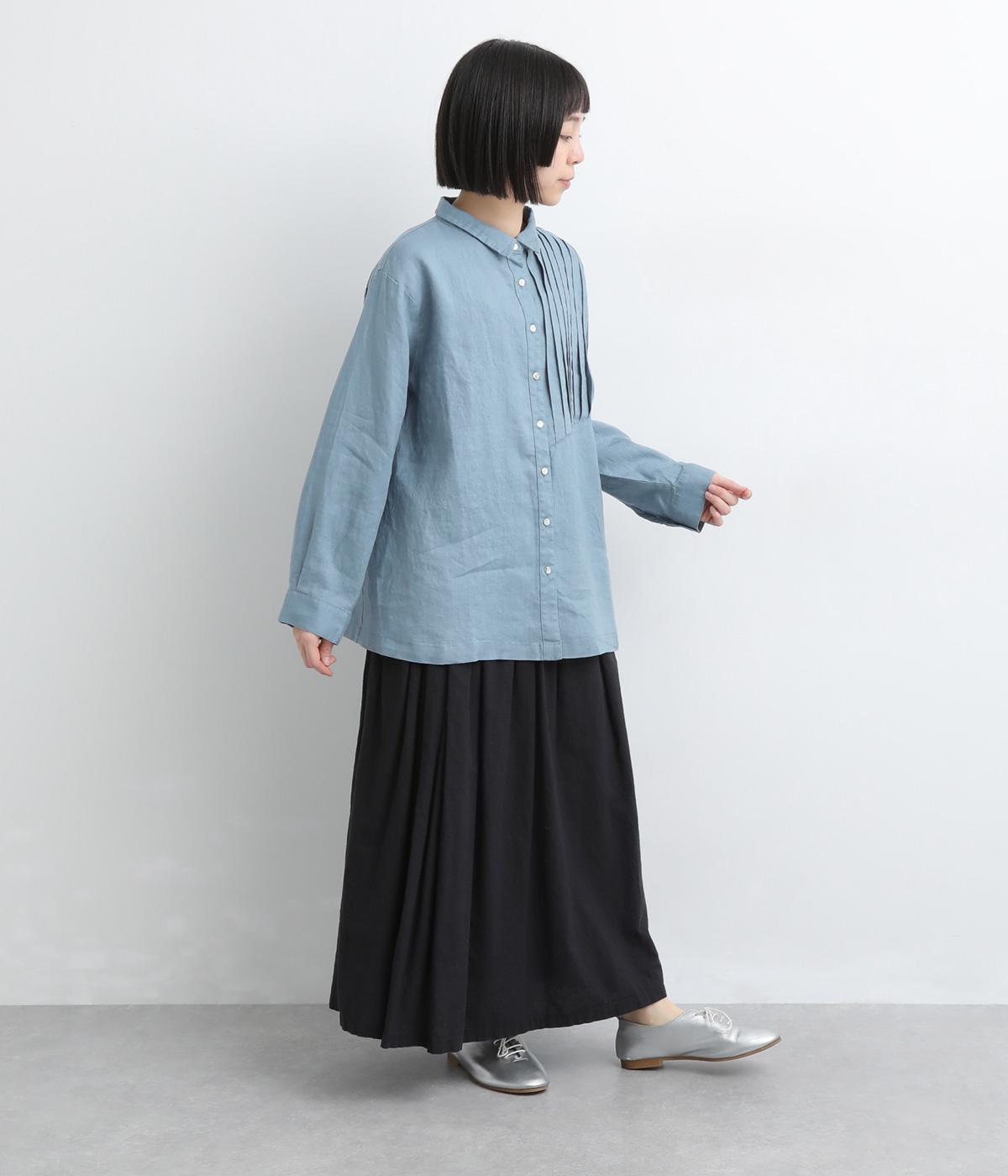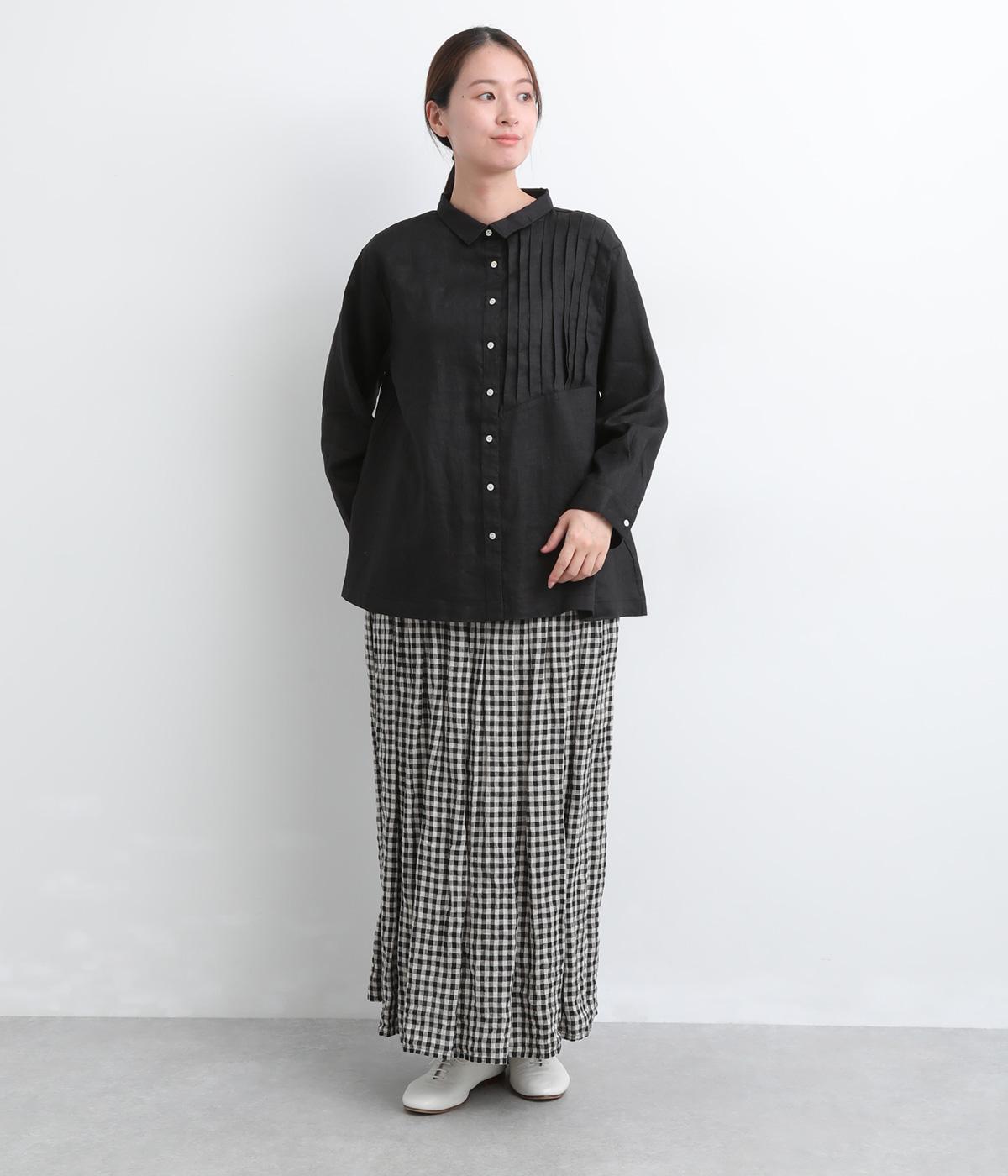 薄手でやわらかくもリネン特有のざっくりとした風合いや適度なコシが感じられ、着心地の良さを運びます。シワも表情の一部となった、アイロン要らずな素材です。