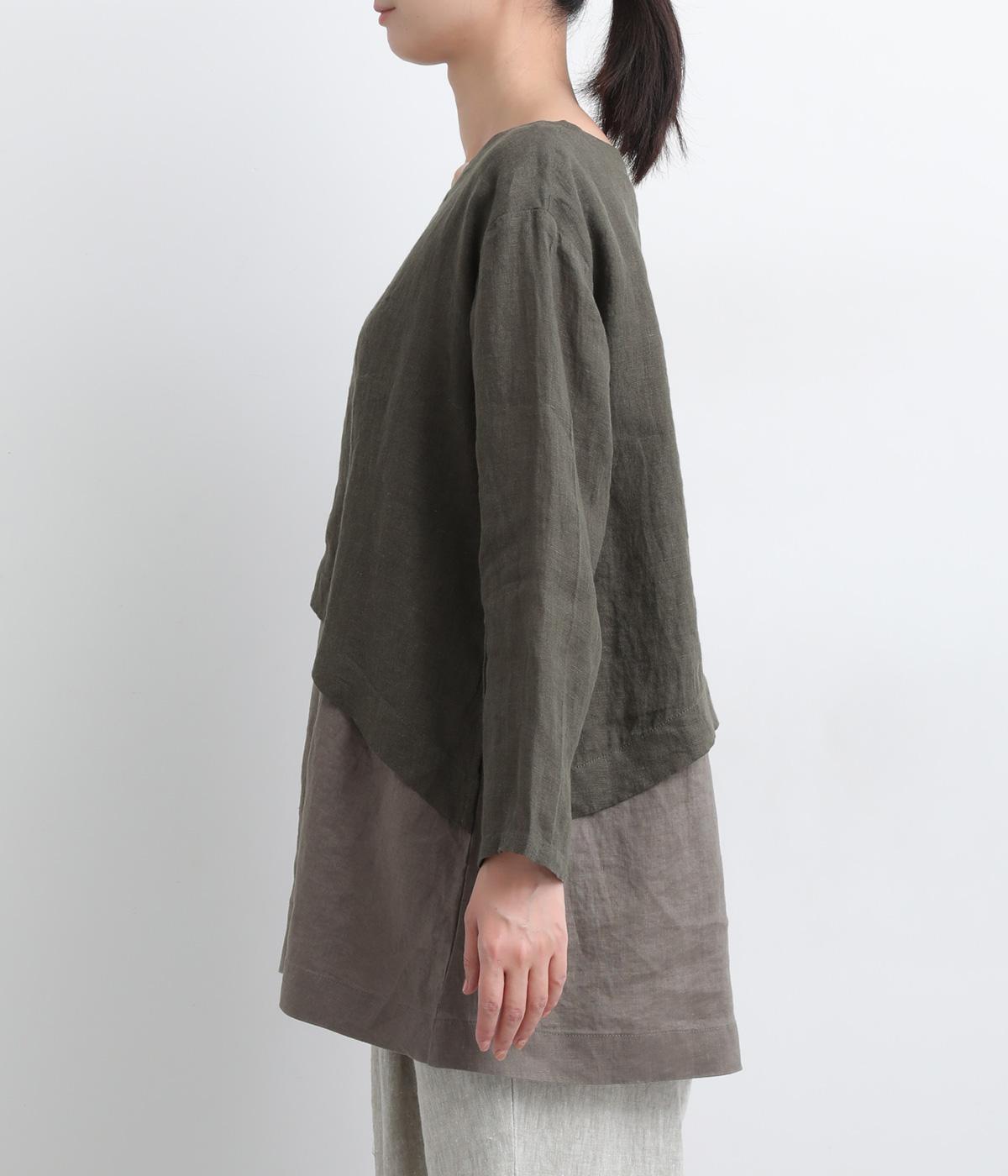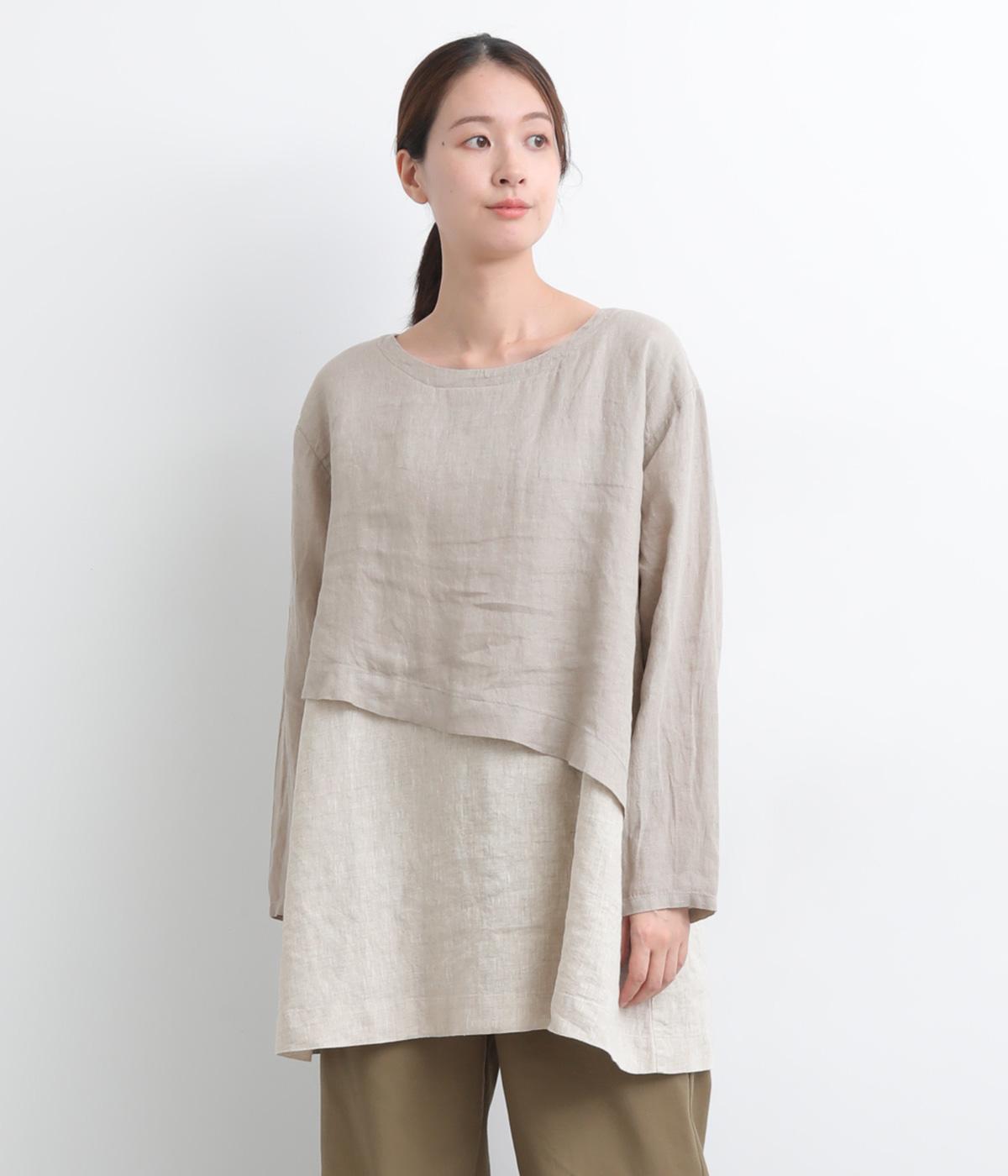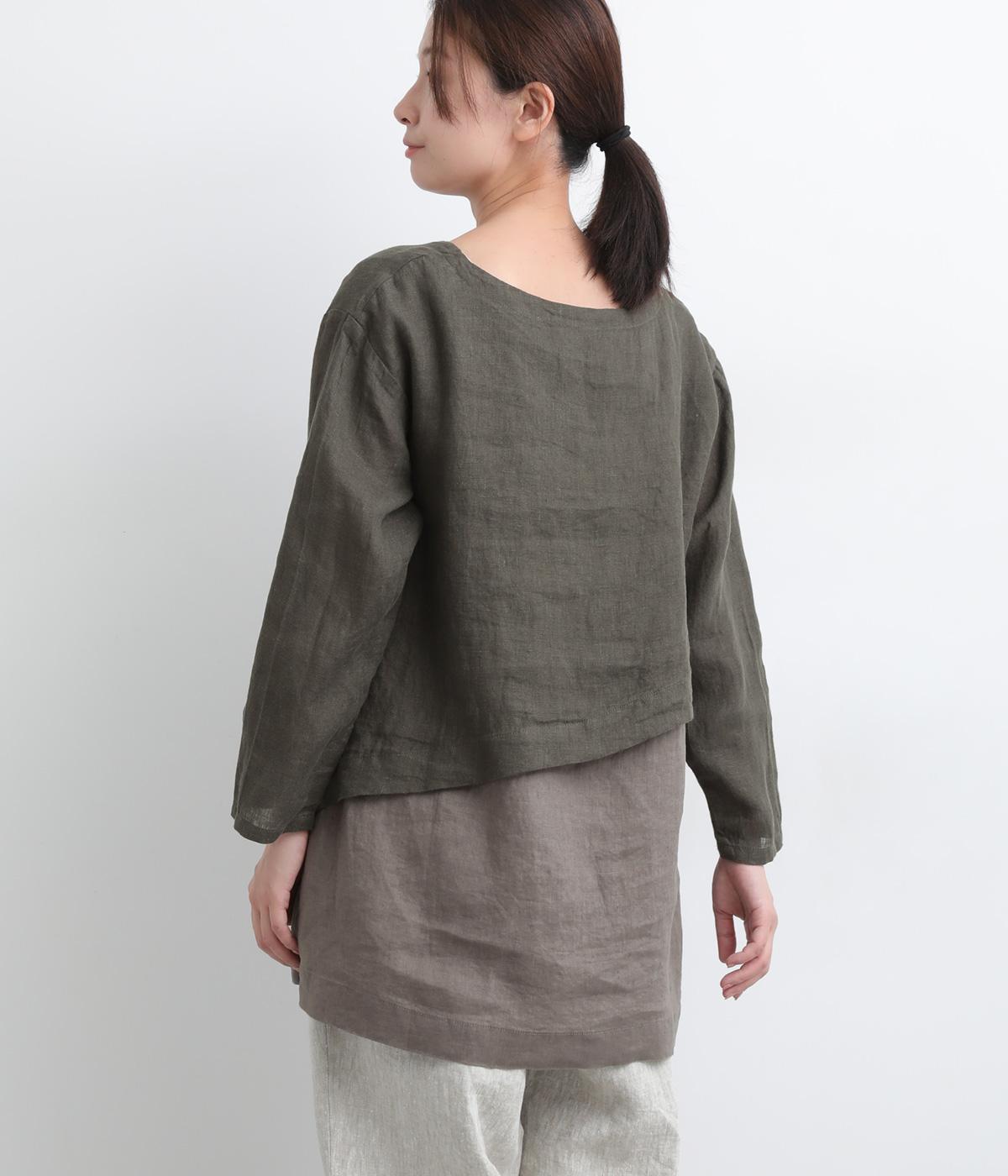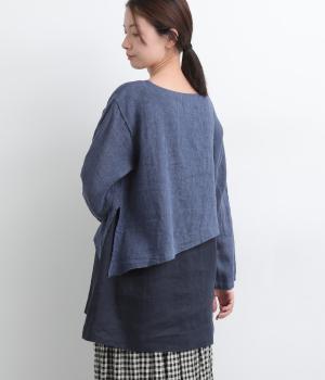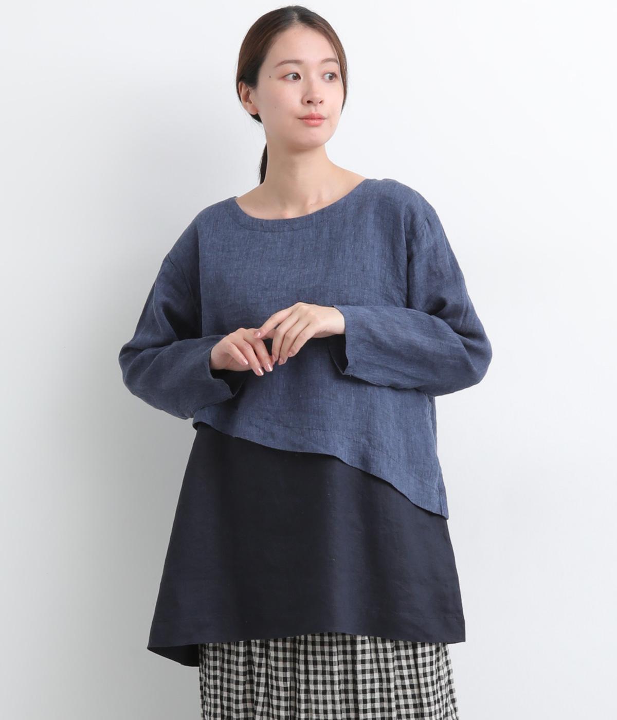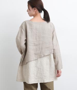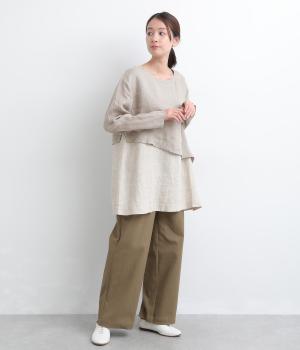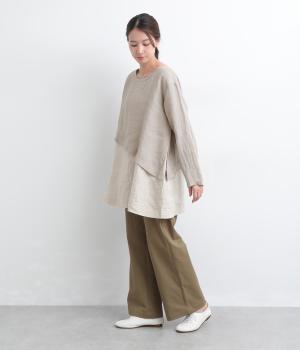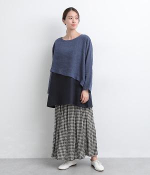 一枚でレイヤードスタイルが叶う、テクニック要らずなプルオーバー。ななめカットによってシルエットに自然と動きが生まれ、シンプルなボトム合わせもお洒落にきまります。すっきり抜け感をつくった首元や袖口も好バランス。