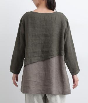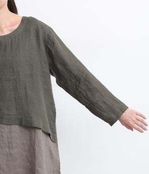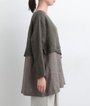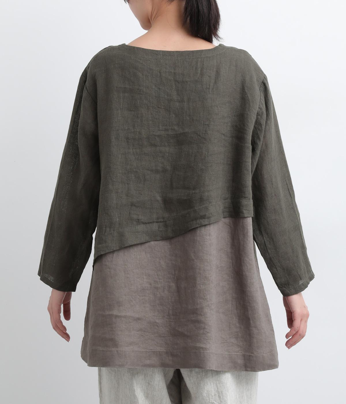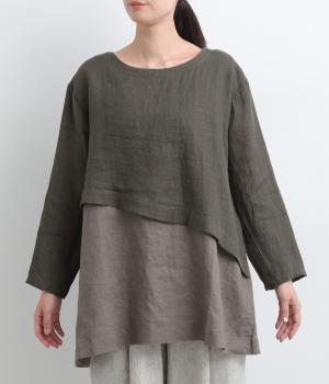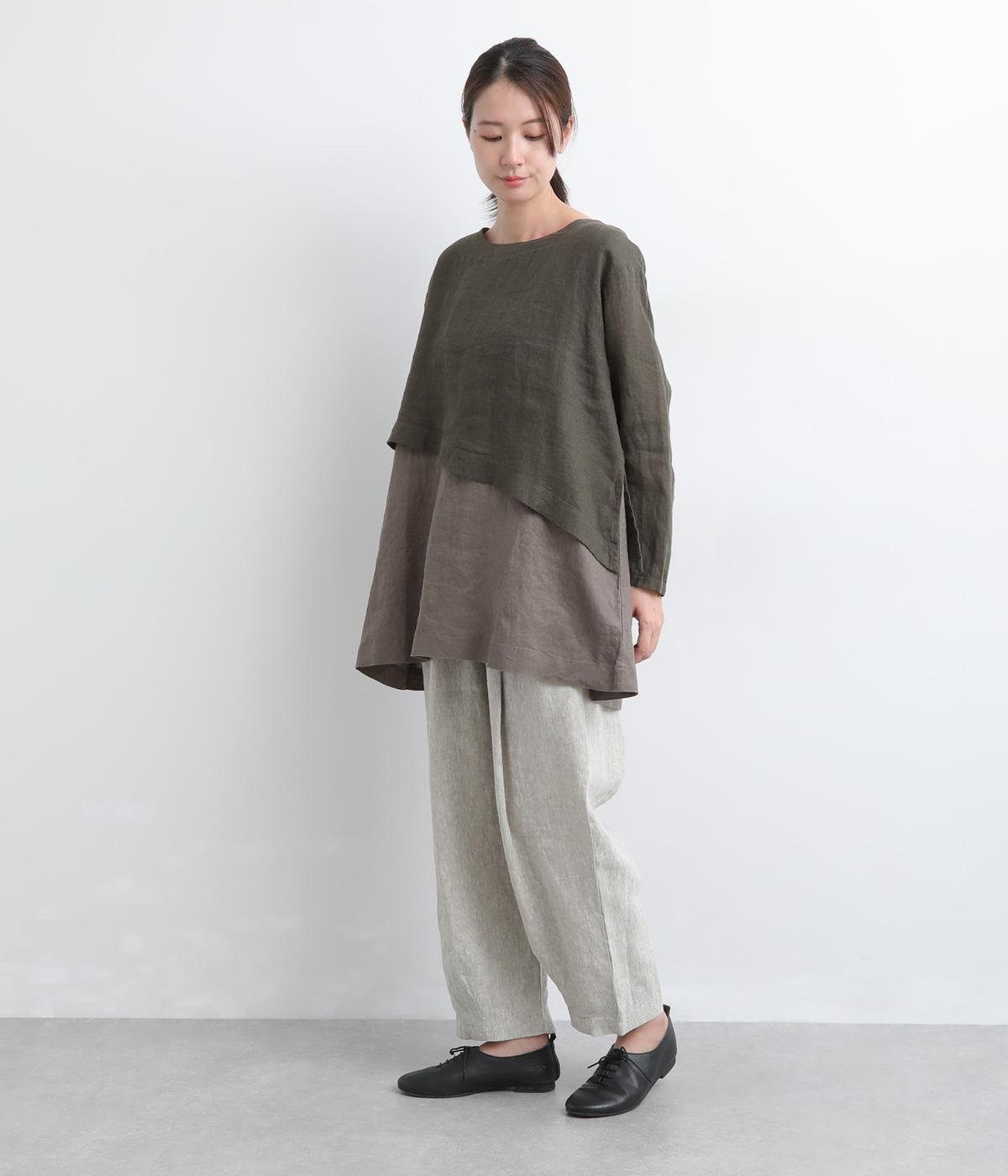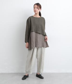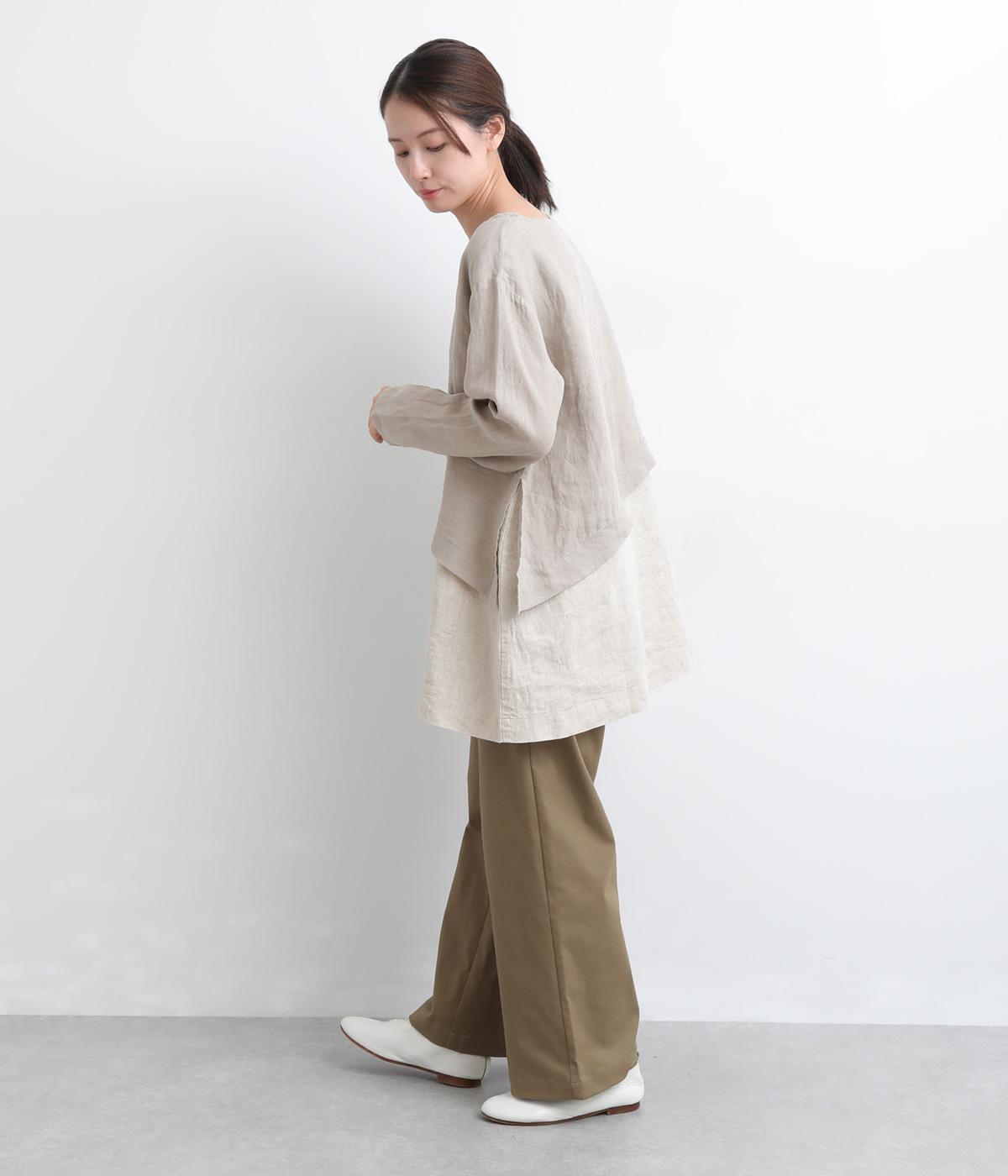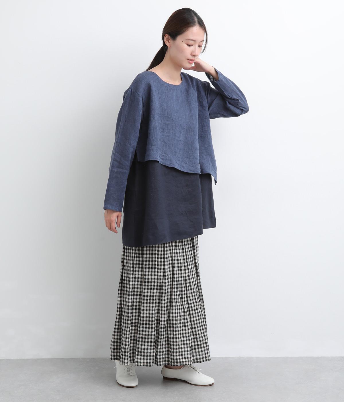 一枚でレイヤードスタイルが叶う、テクニック要らずなプルオーバー。ななめカットによってシルエットに自然と動きが生まれ、シンプルなボトム合わせもお洒落にきまります。すっきり抜け感をつくった首元や袖口も好バランス。