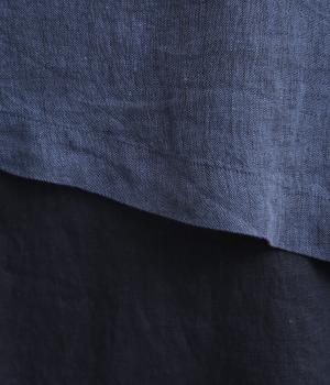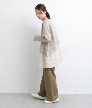 丈夫で耐久性がありながらも繊細さを感じさせるシャンブレーと、薄手でやわらかな14番手リネンを組み合わせました。どちらも通気性のいいナチュラル素材で、快適な着心地を運びます。