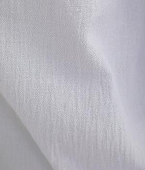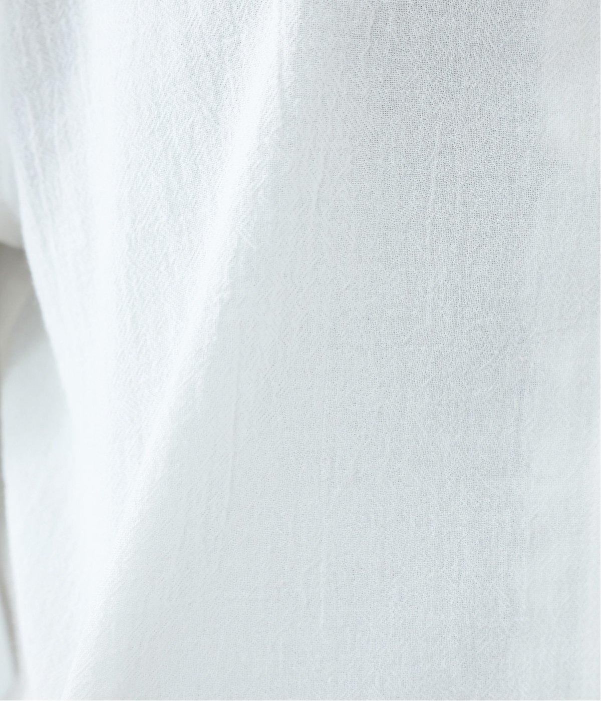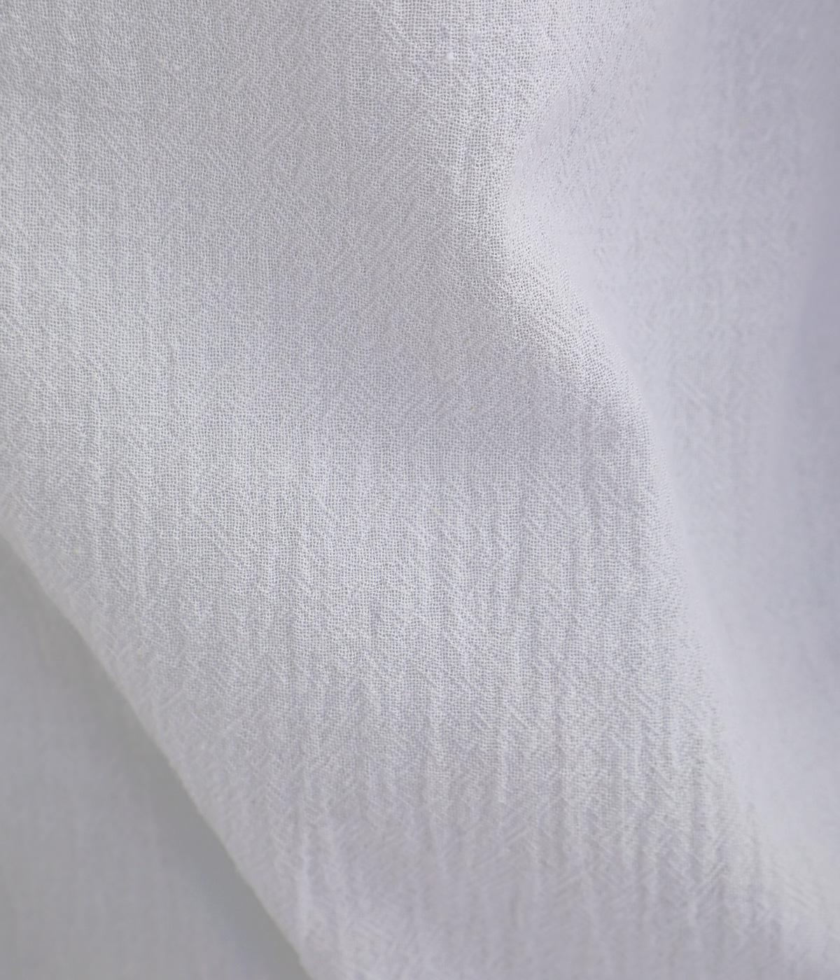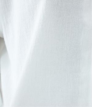 表面に細かなシボのある独特な表情をもつコットン素材。肌にまとわりつかないさらりとした風合いが快適な着用感を叶えます。薄手で軽く、ほんのりとした透け感も魅力です。