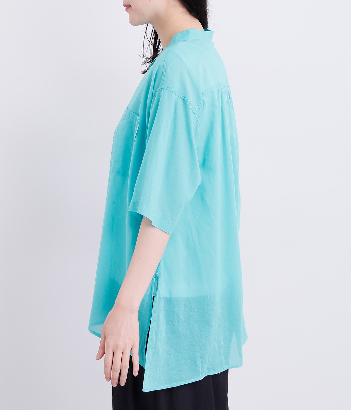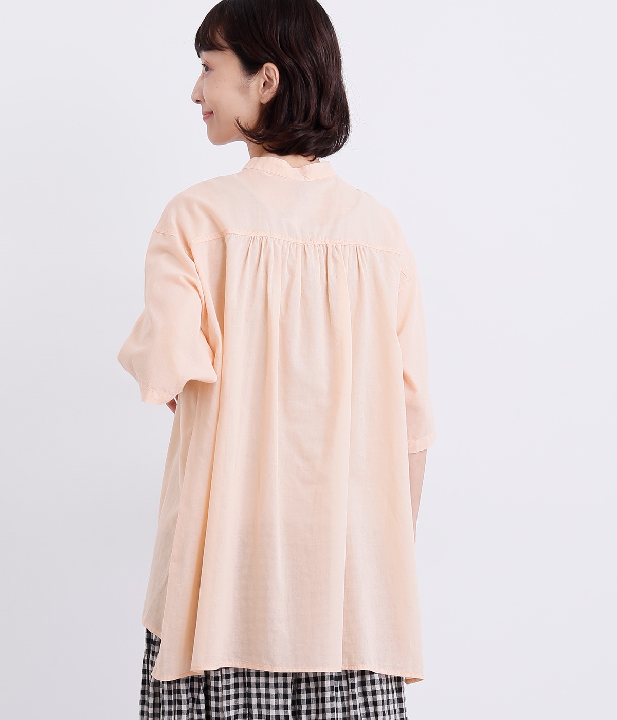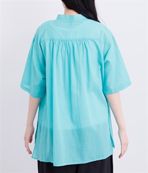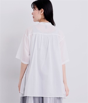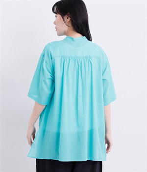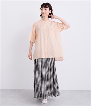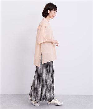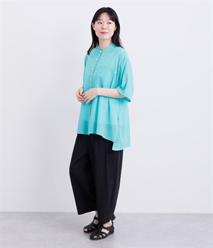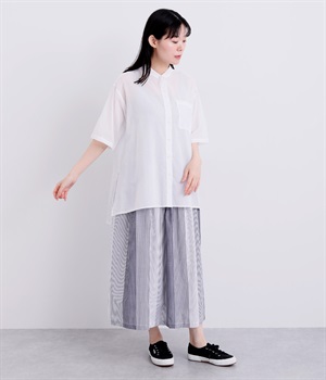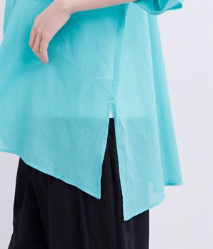 ゆるやかに広がるAラインシルエットが見た目も着心地も涼しげなチュニックシャツです。深めのスリットが入っているのでボリュームアイテムにもラフに羽織りやすく、汗ばむ季節の冷房対策としても重宝します。