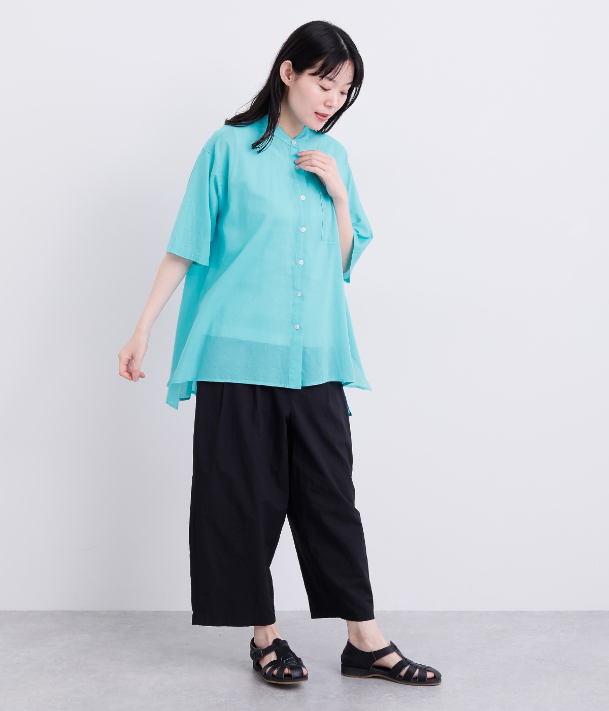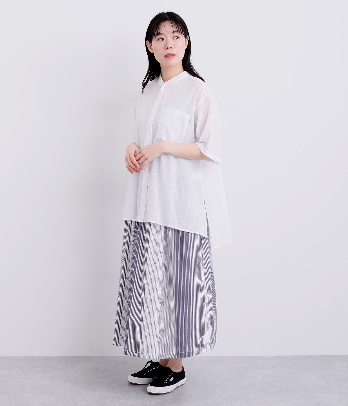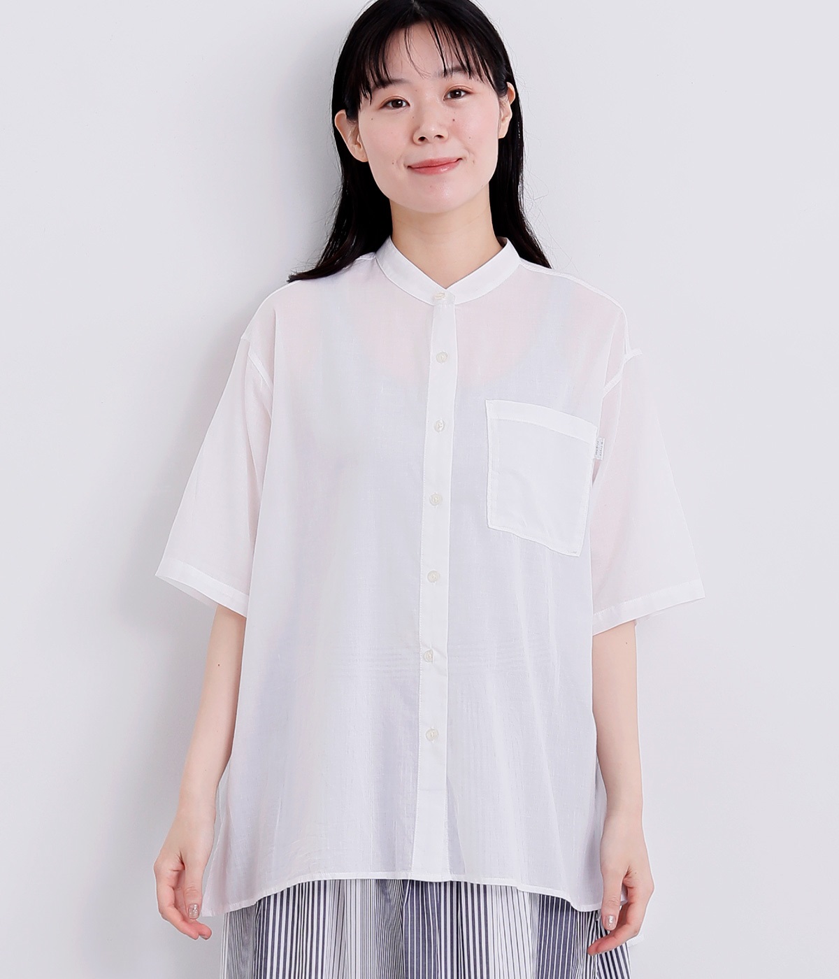 ゆるやかに広がるAラインシルエットが見た目も着心地も涼しげなチュニックシャツです。深めのスリットが入っているのでボリュームアイテムにもラフに羽織りやすく、汗ばむ季節の冷房対策としても重宝します。