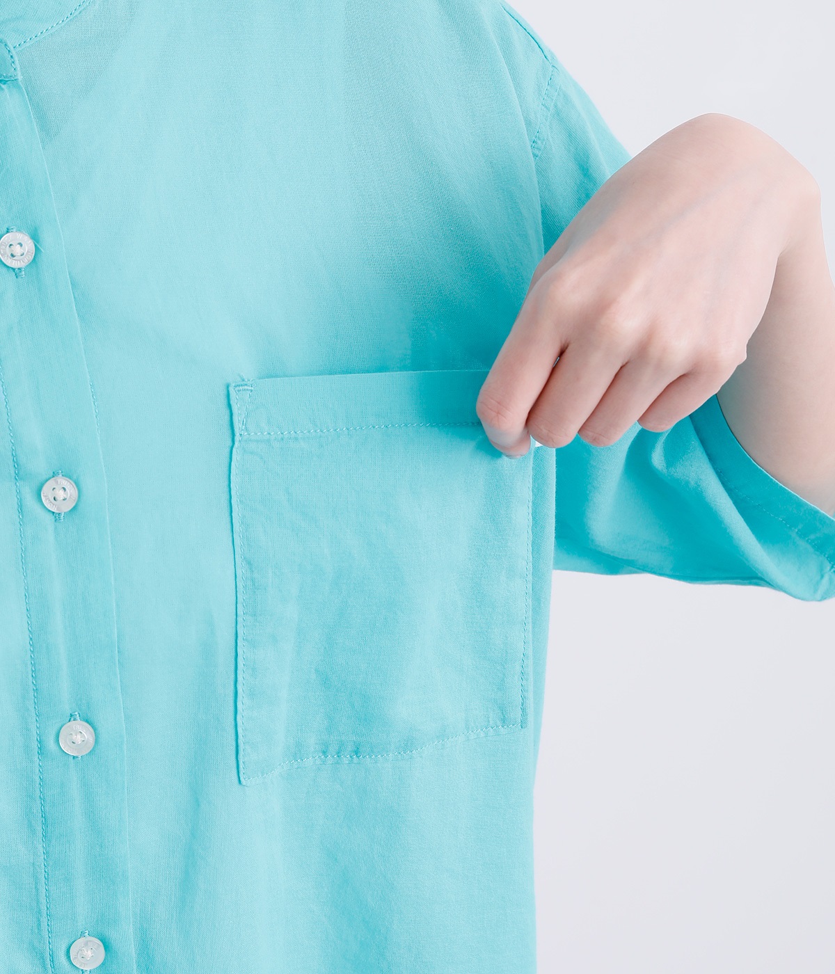 ほのかな透け感と通気性の良さが特徴的なコットンローンを使用しています。糸に撚りを強めにかけてざっくりと織り上げたボイル生地で、ナチュラル感と適度なふくらみが◎。
