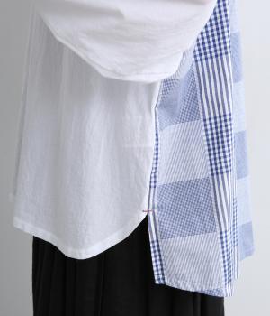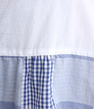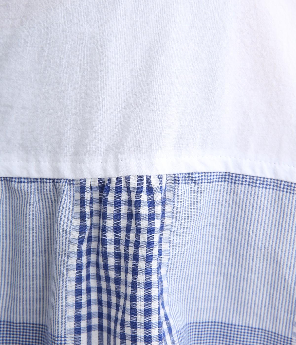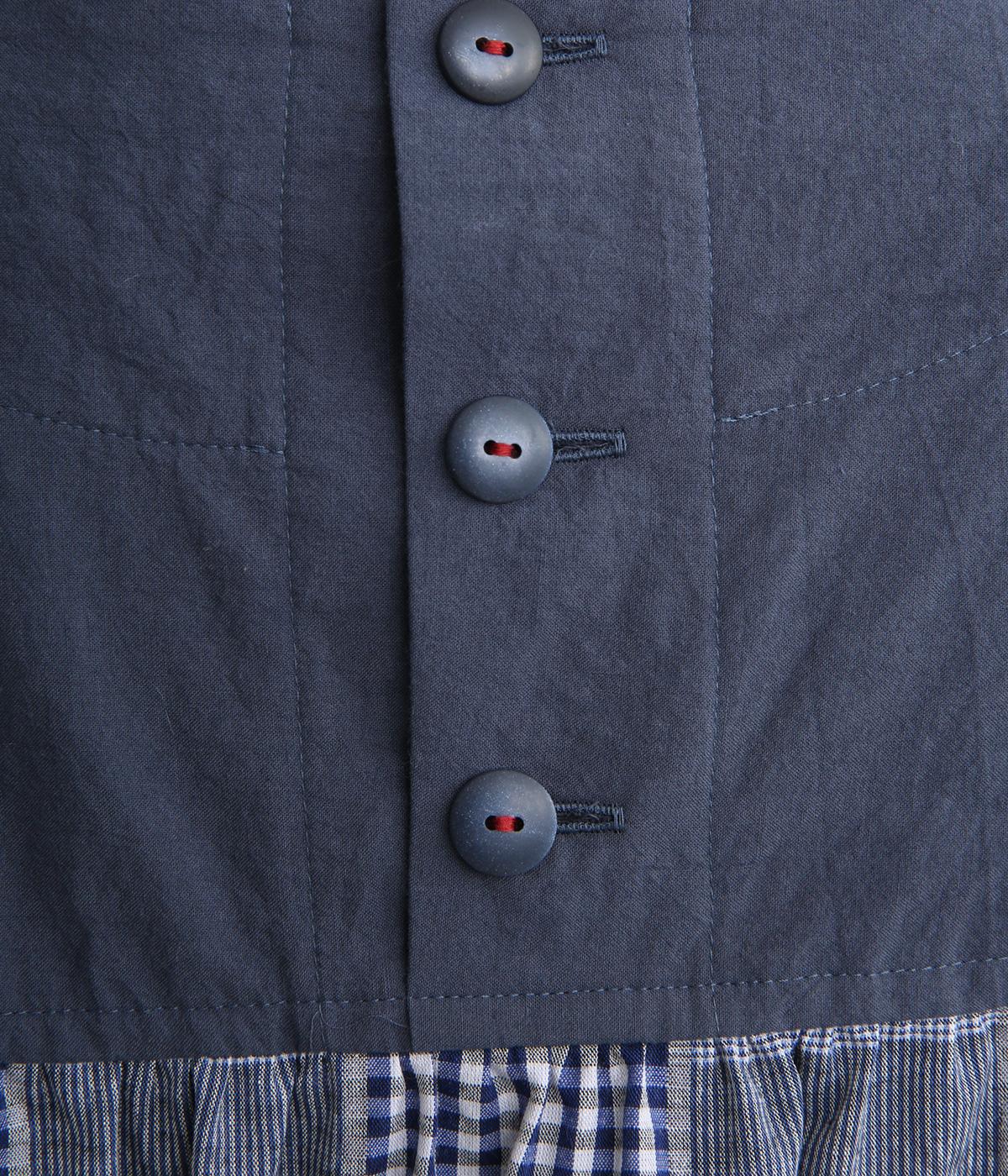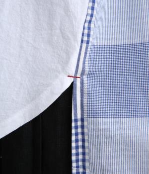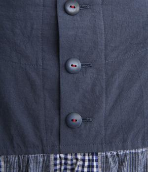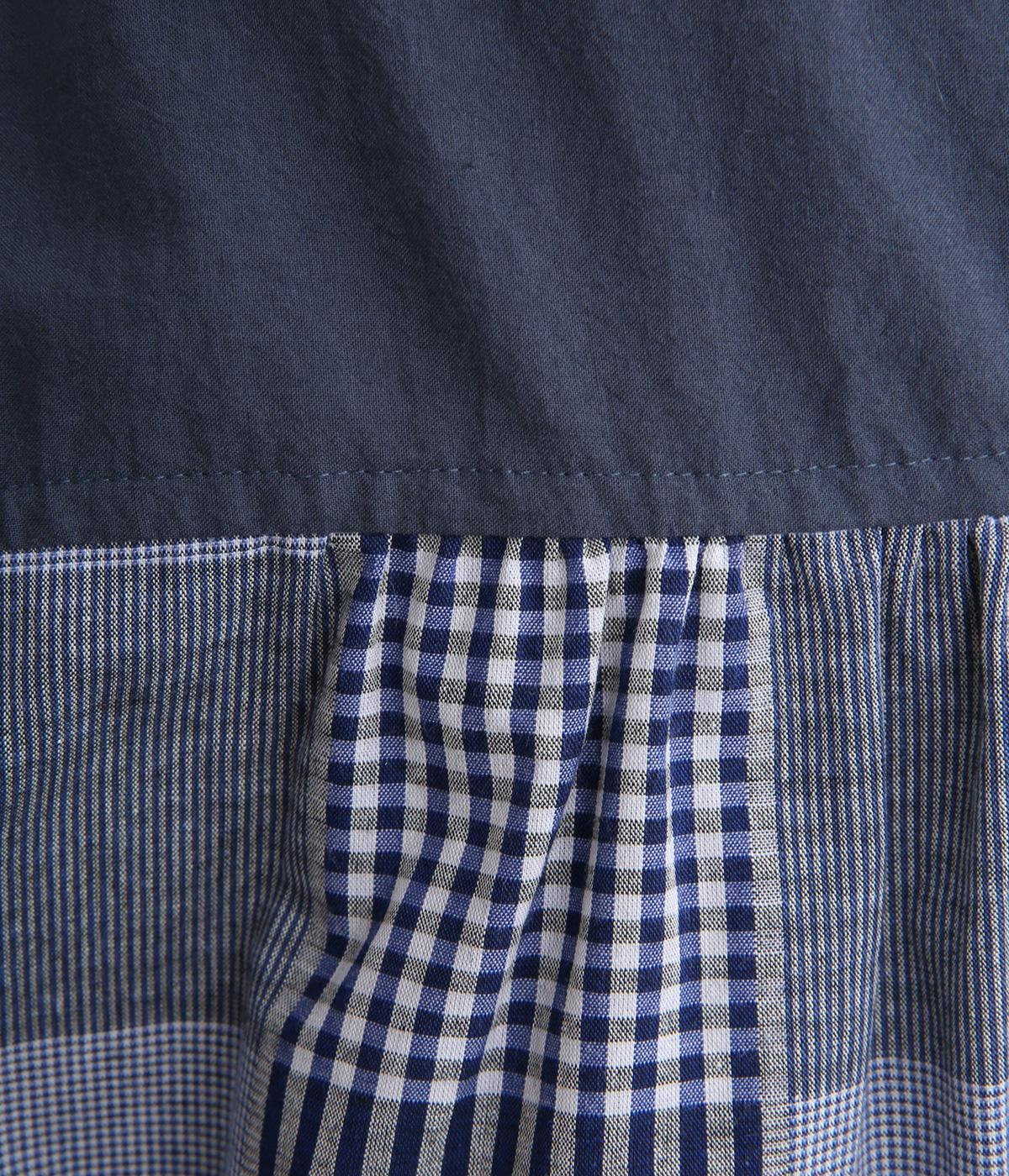 風合いのいい無地とチェック生地を組み合わせました。どちらも軽やかでやわらかいコットン生地を用い、縫製後の製品洗い加工によってナチュラルさが増しています。