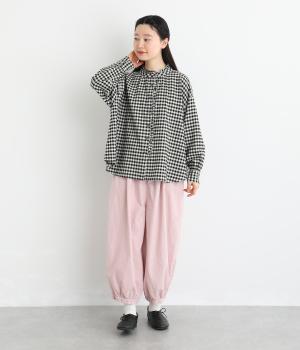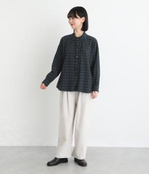 くたっとやわらかな風合いのなかに、ほのかなシャリ感をあわせ持つコットンリネン生地を採用。肌に心地よくなじみながらも、さらりとしたタッチで、ロングシーズン快適に着用できます。ヘリンボーン織りならではの凹凸とした表情が魅力です。
