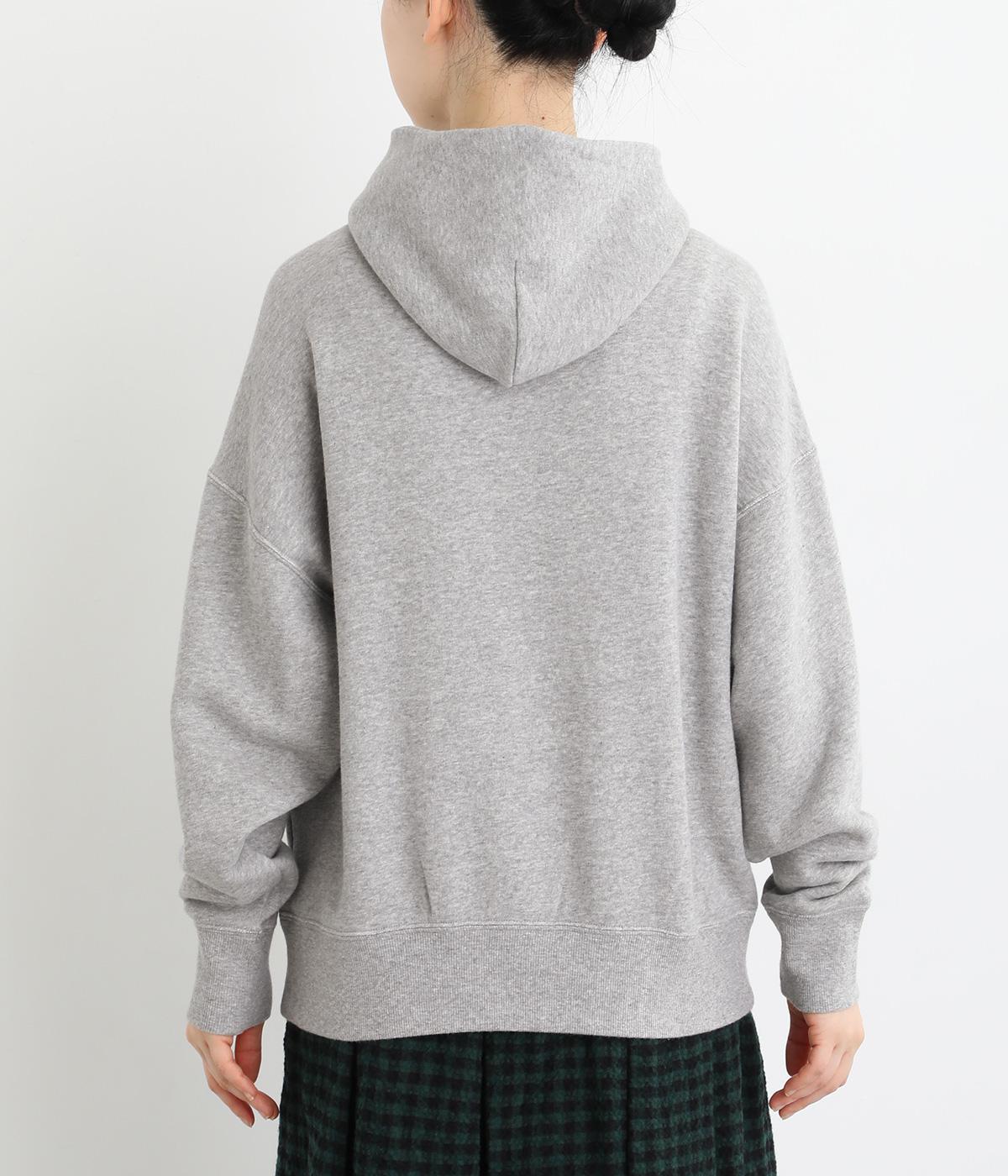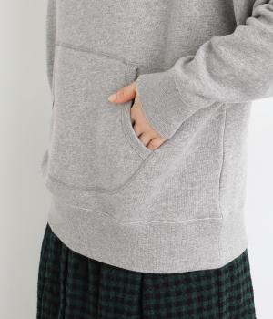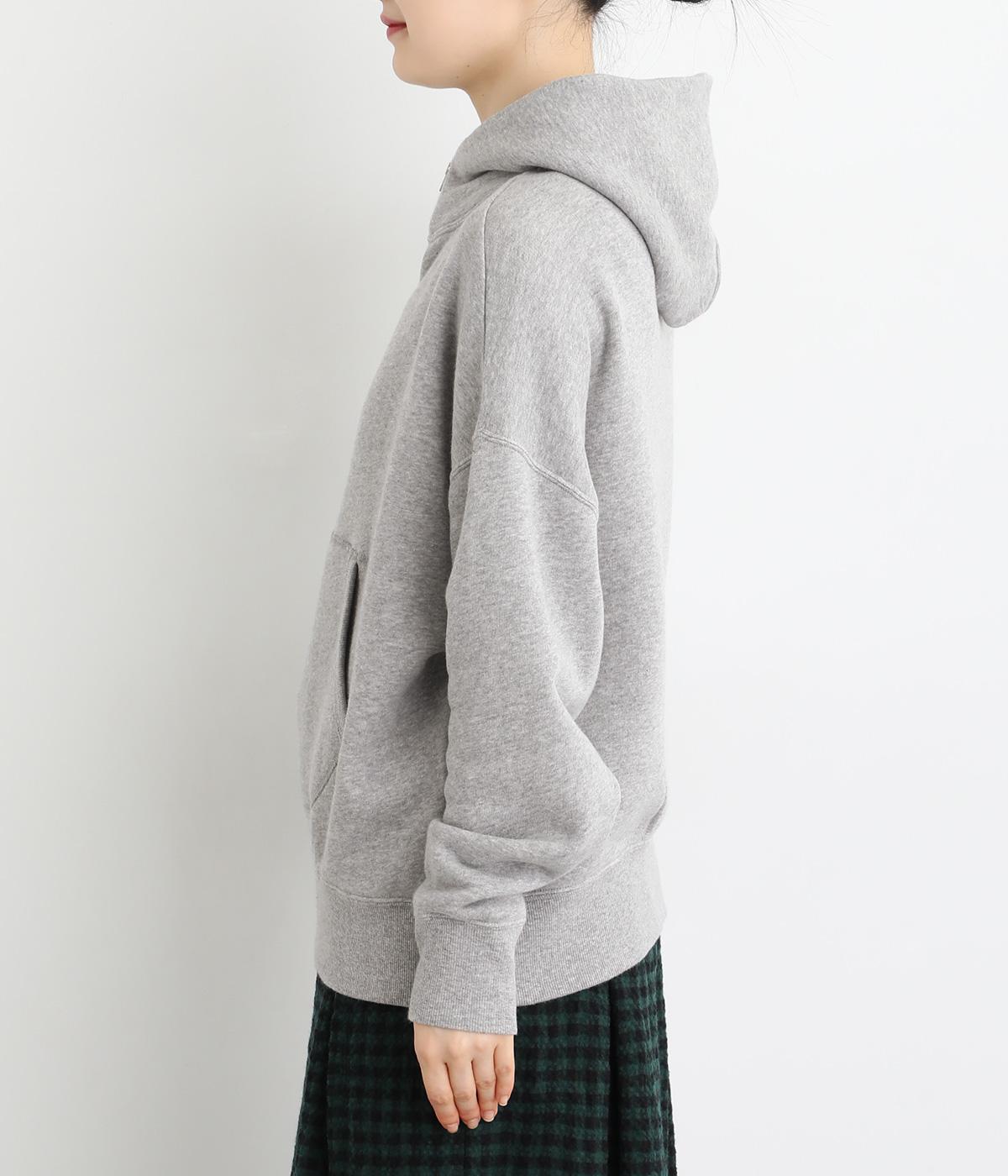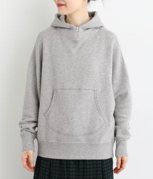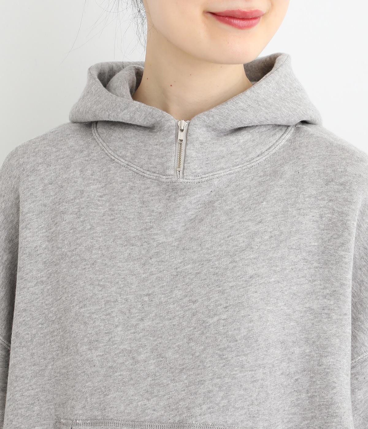 首元のさりげないジップがおしゃれな杢調パーカー。ジップの開閉具合いを着こなしに合わせて調節できるのも◎。デザイン性の高いポケットは大きさも十分で機能的。外出時にさらっと収納できます。コーディネートしやすい色みなので、一枚あると便利です。