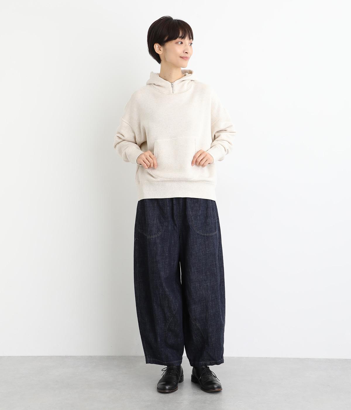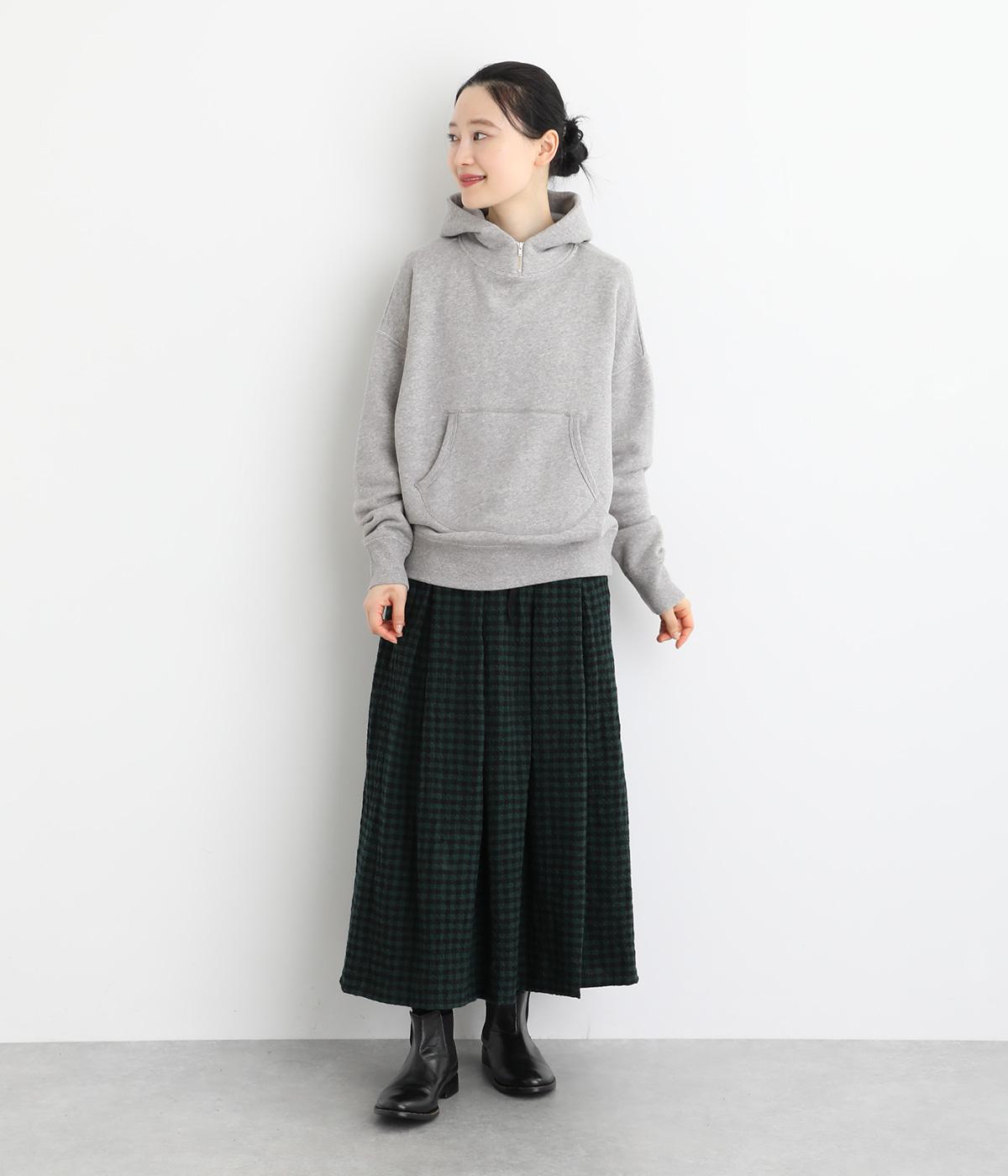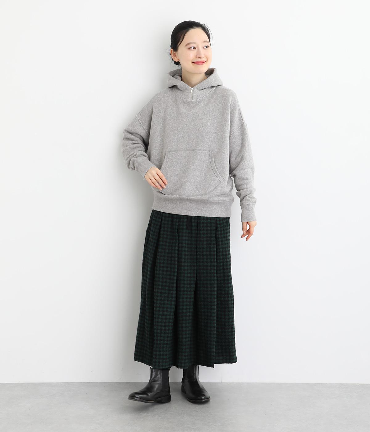 首元のさりげないジップがおしゃれな杢調パーカー。ジップの開閉具合いを着こなしに合わせて調節できるのも◎。デザイン性の高いポケットは大きさも十分で機能的。外出時にさらっと収納できます。コーディネートしやすい色みなので、一枚あると便利です。